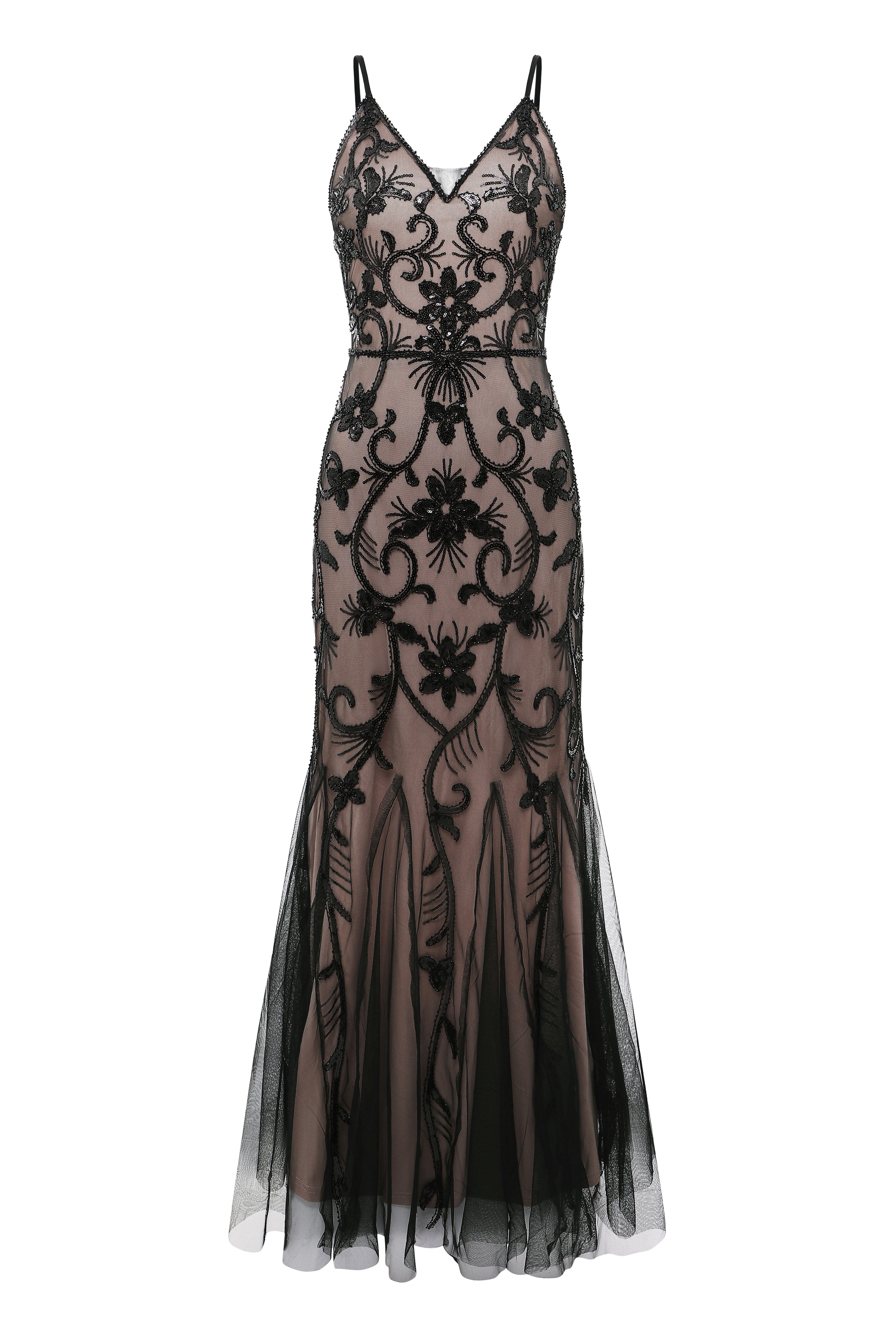 Glittering Sheer-Sleeve Sequined Evening Gown