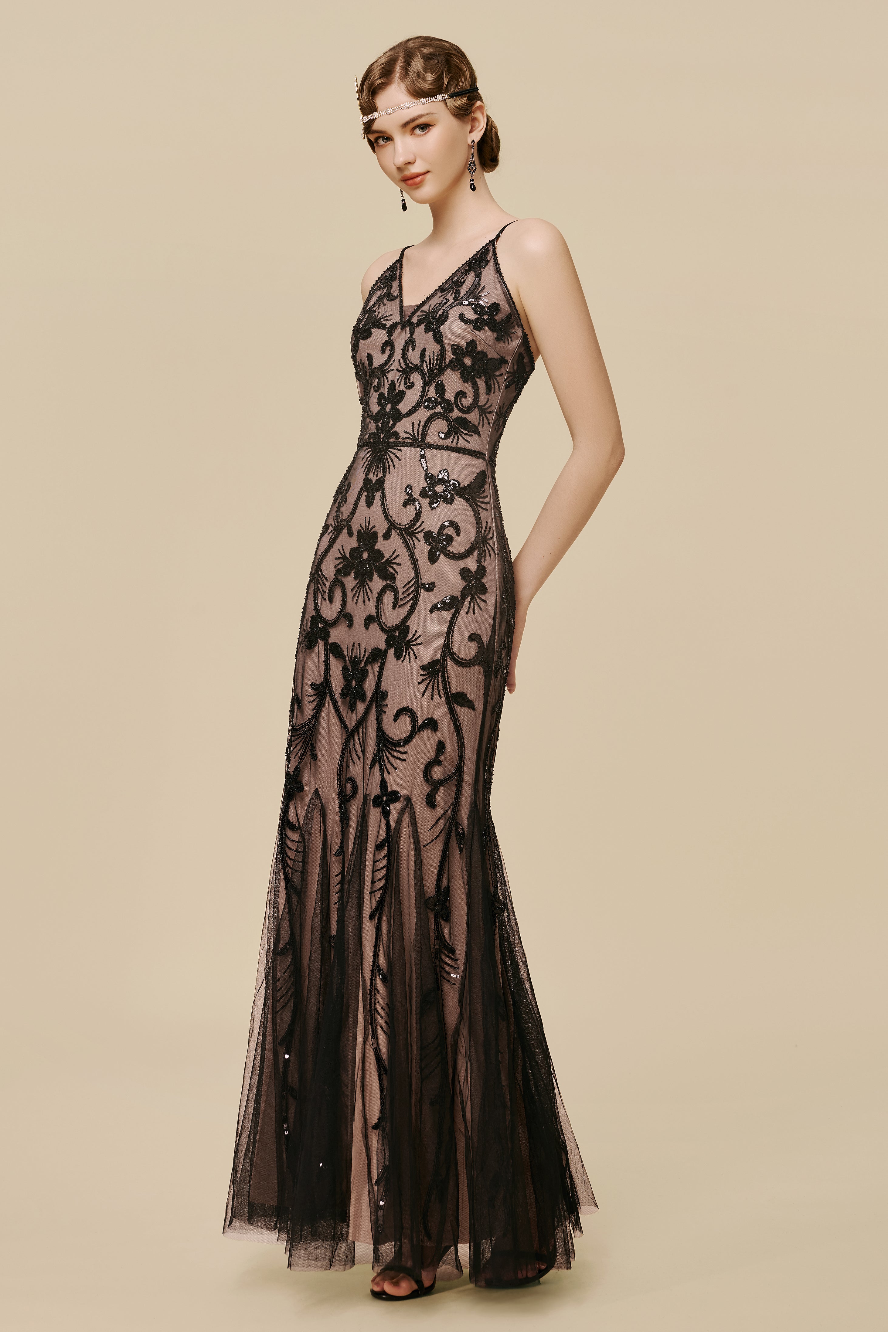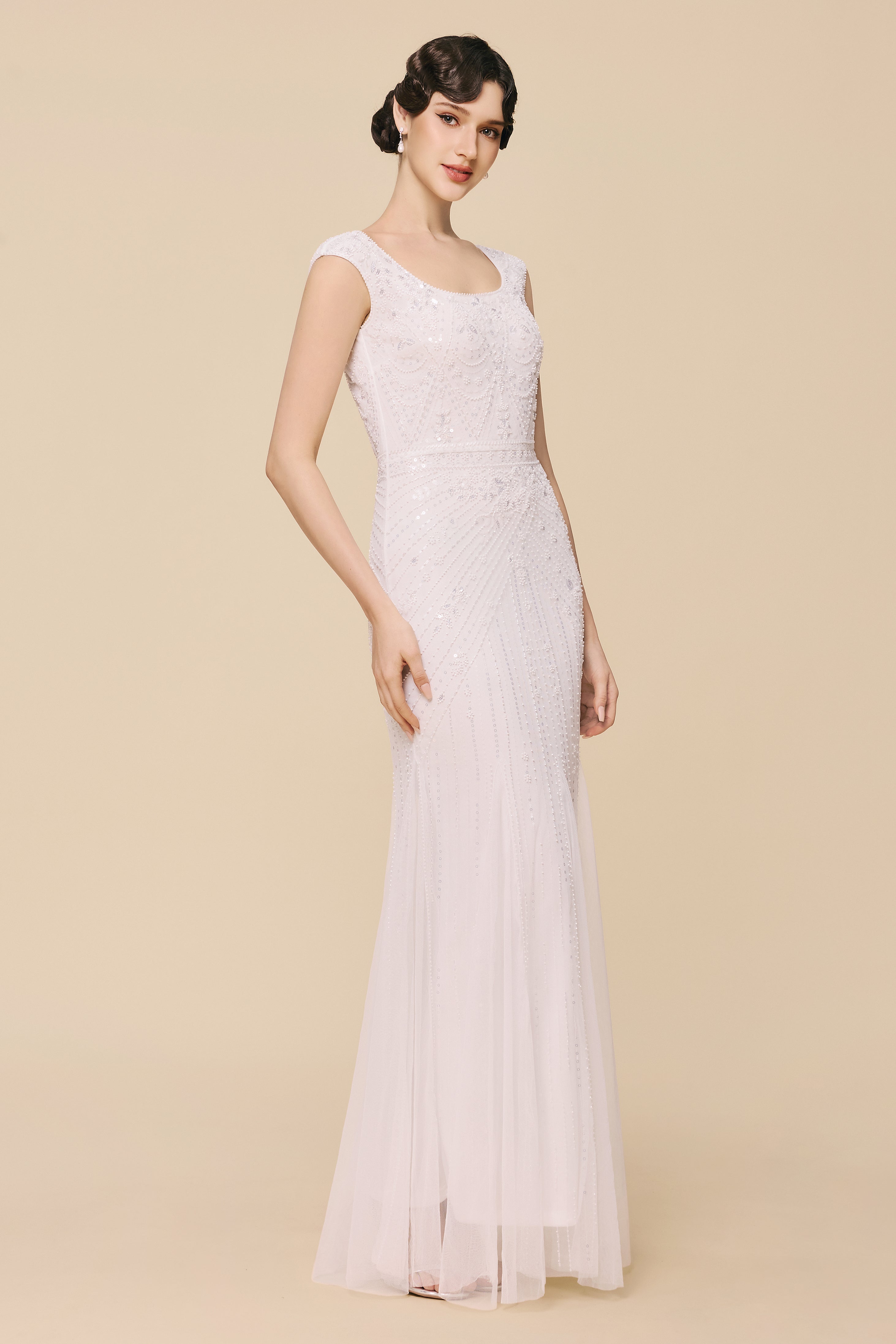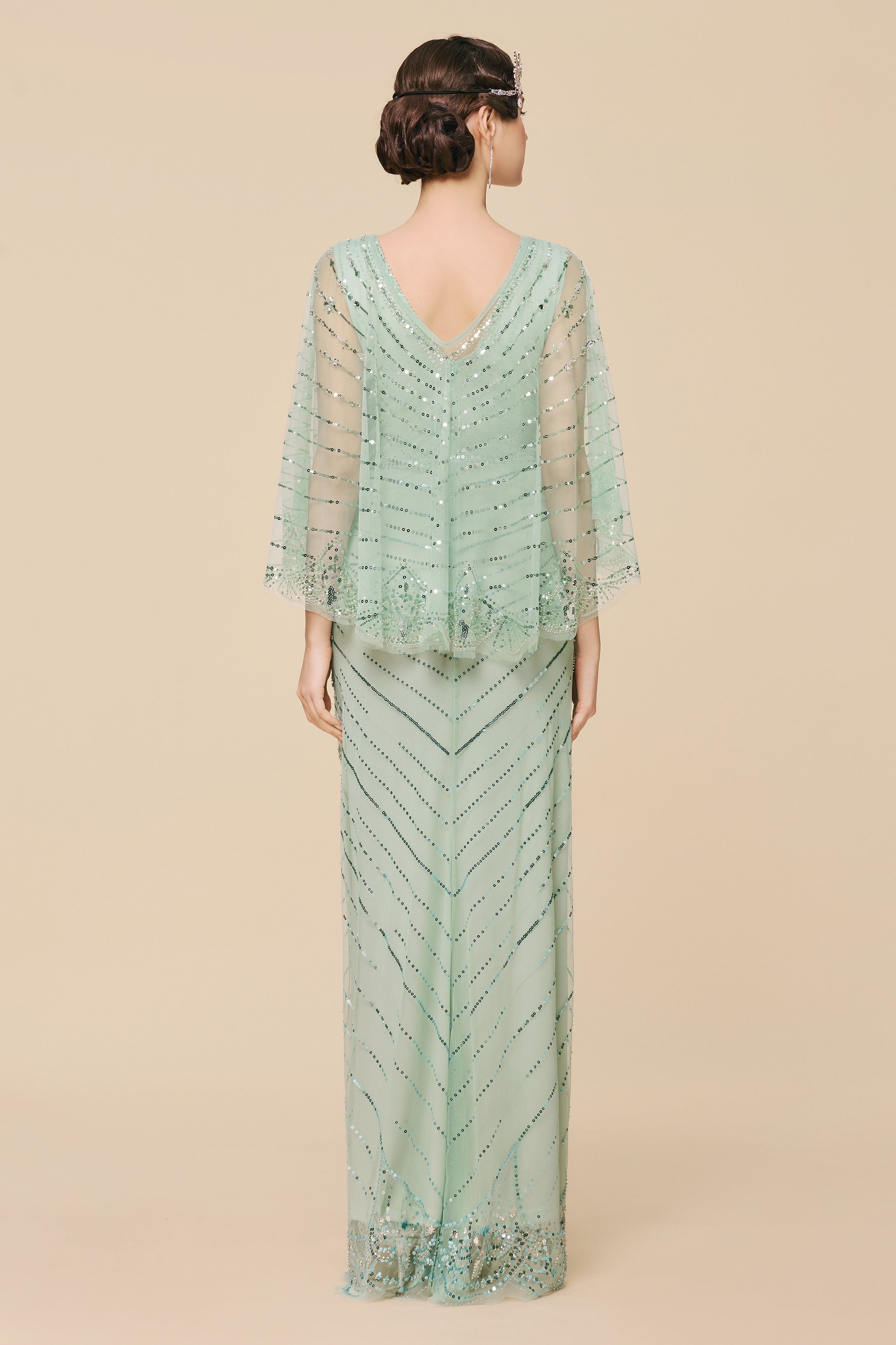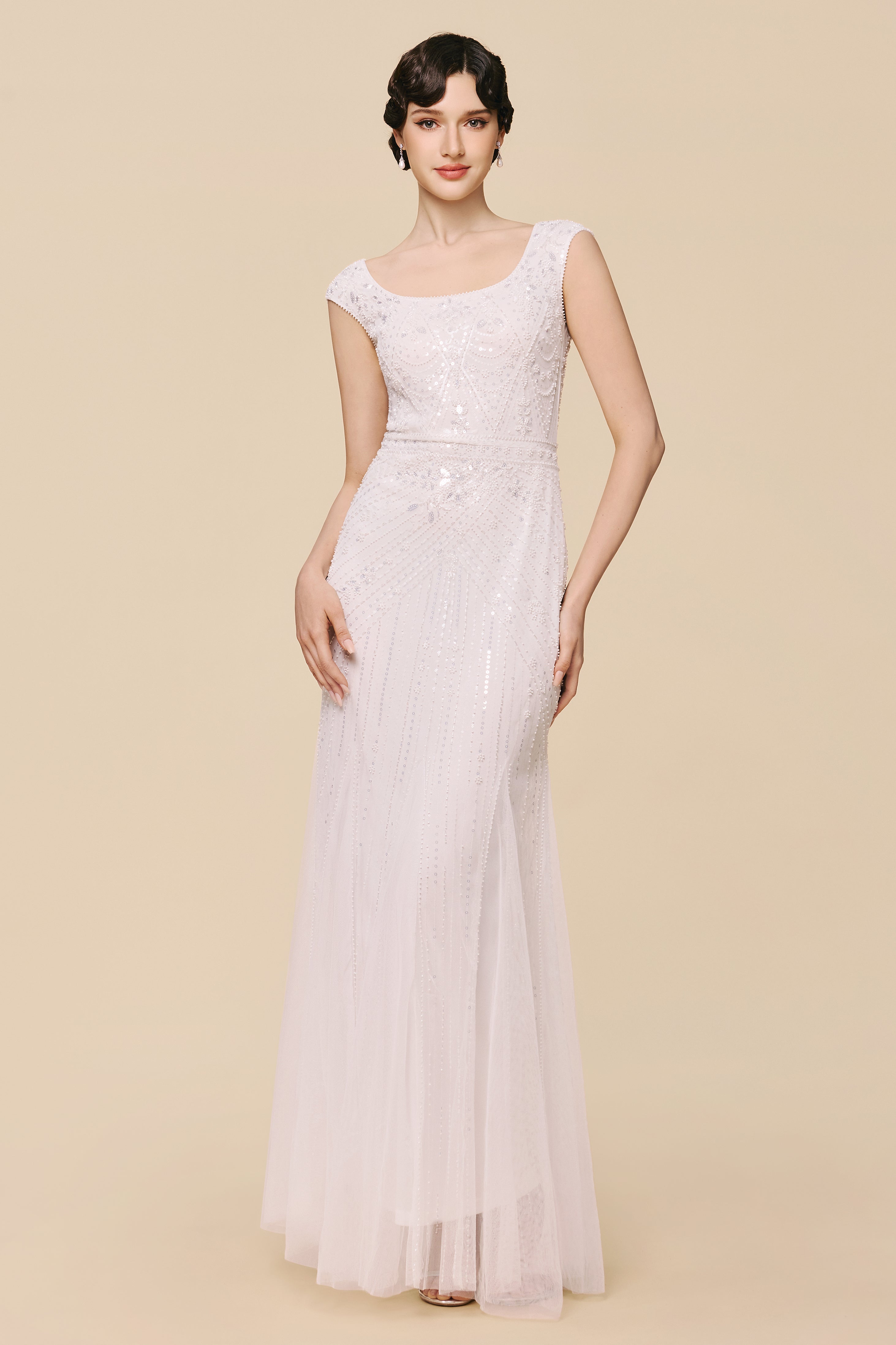 Glittering Sheer-Sleeve Sequined Evening Gown