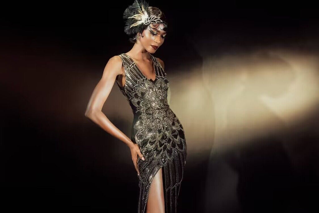 Embrace the glitz and glam of a Gatsby-esque party as you slip into our Zouzou-inspired creations. Let the sequins catch the light, enchanting those around you, just like Josephine Baker did on the silver screen. The gemstones add an opulent touch, making a bold statement that echoes the spirit of a remarkable era.
