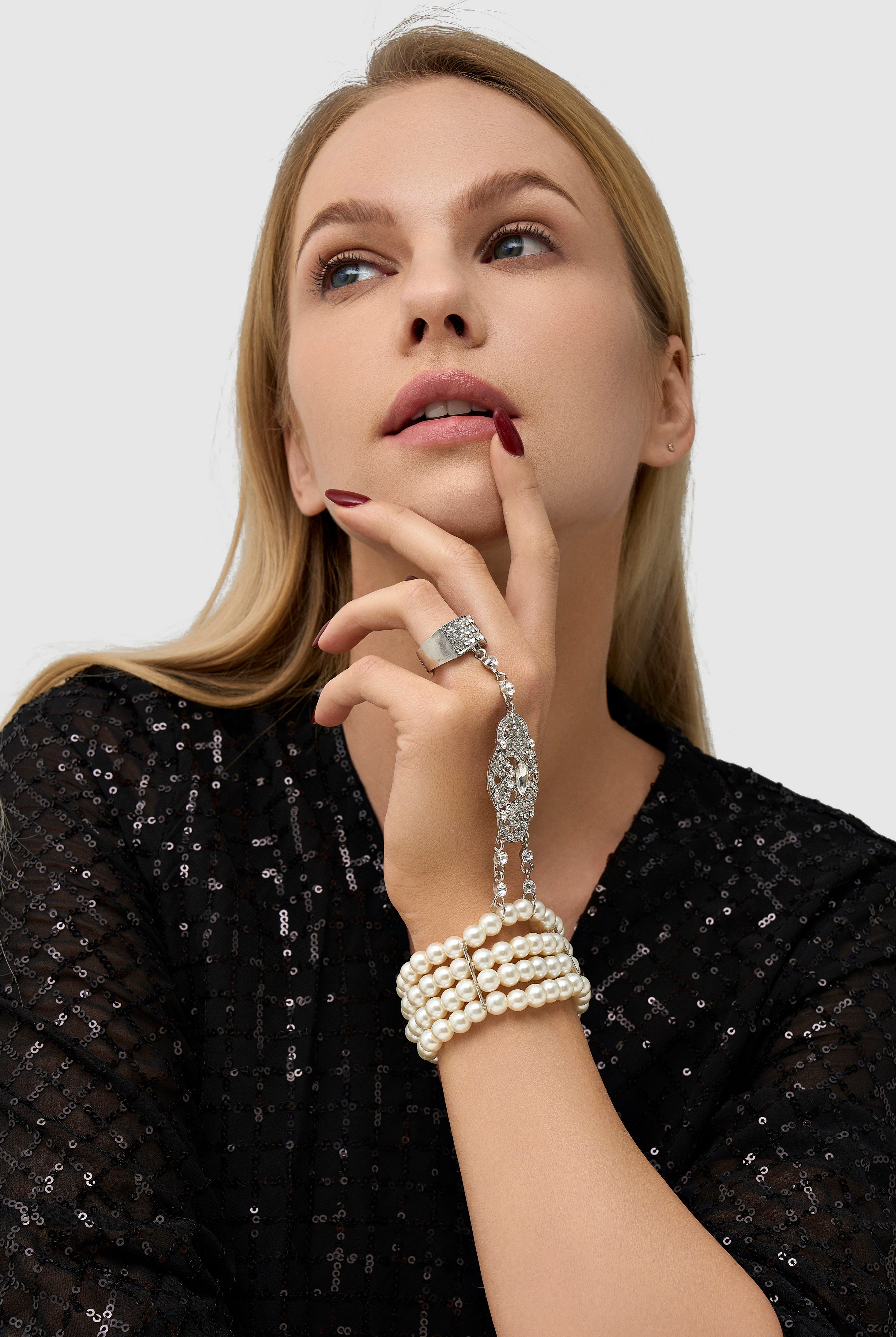 During this period, women actively sought greater recognition and opportunities in various aspects of life, including the workplace, politics, and social interactions. The fashion trends of the 1920s reflected this aspiration for progress and empowerment. Accessories such as long strands of pearls, beaded handbags, and distinctive jewelry emerged as symbols of the evolving woman: self-assured, refined, and poised to engage with the world. Each strand of pearls adorning a flapper’s dress and every feathered headpiece moving gracefully to the rhythm of jazz represented a woman embracing modernity and redefining societal norms.