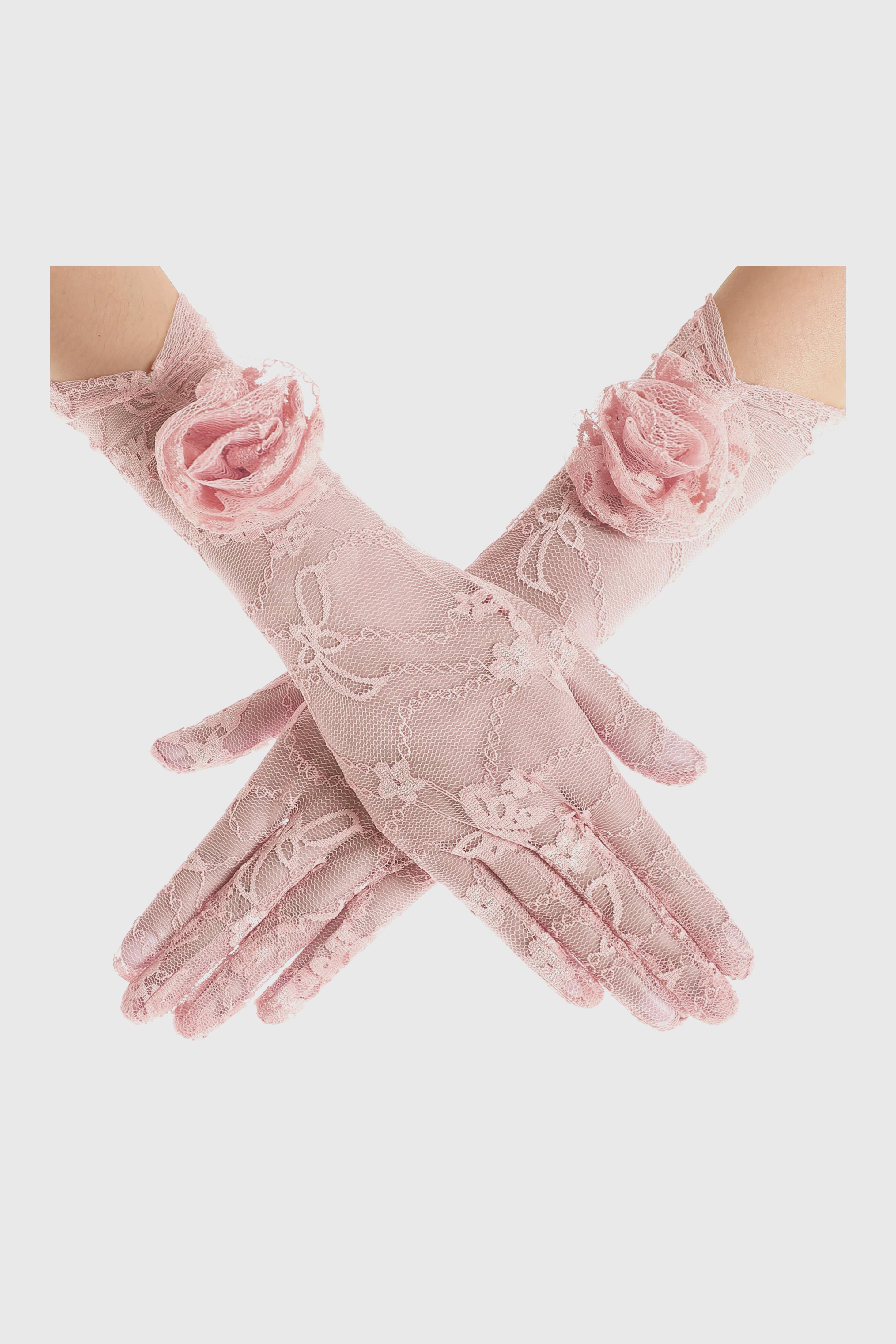 11.4" Stretchy Rose Floral Lace Gloves