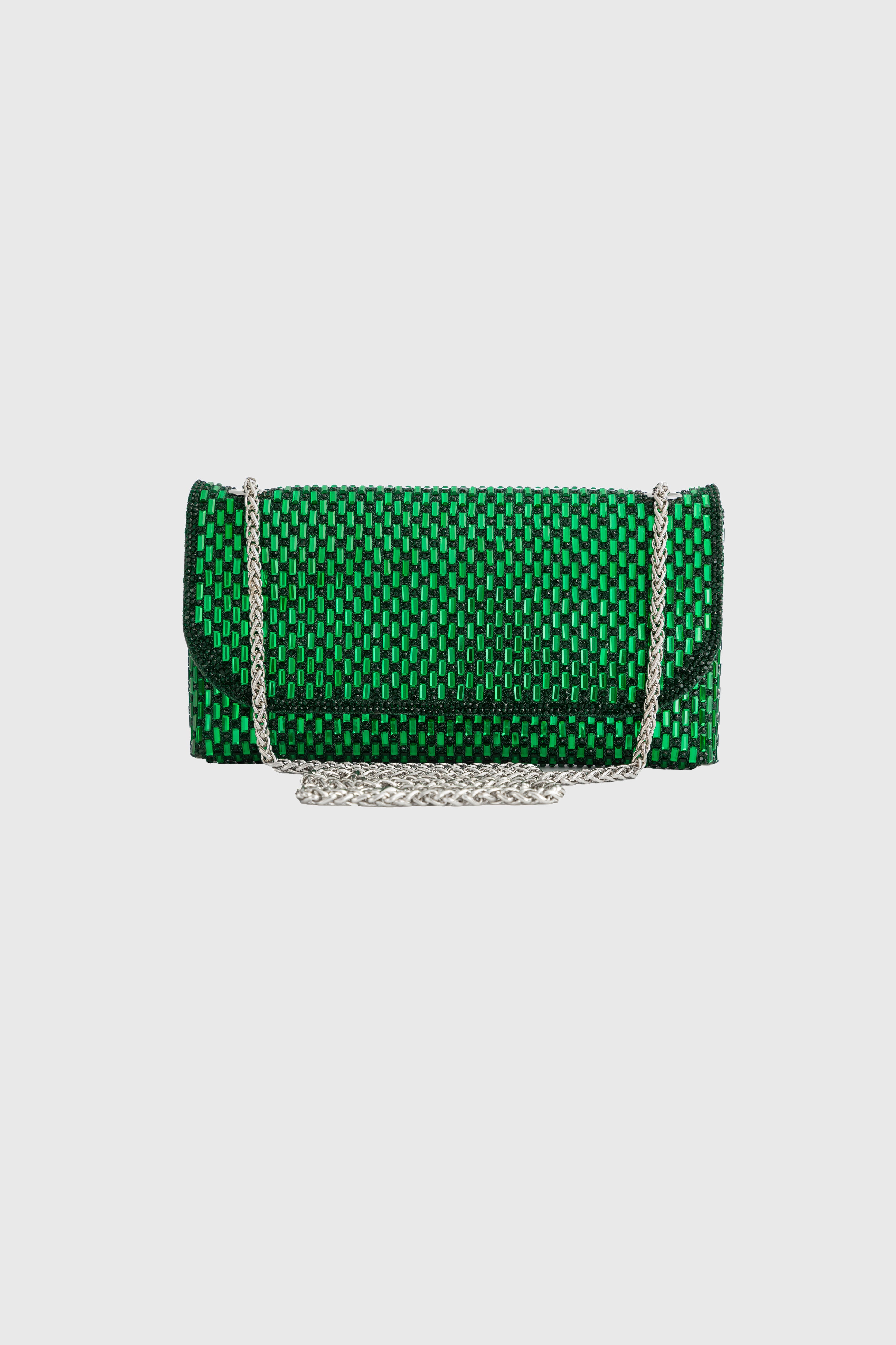 Glitter Rhinestone Fold-Over Evening Clutch