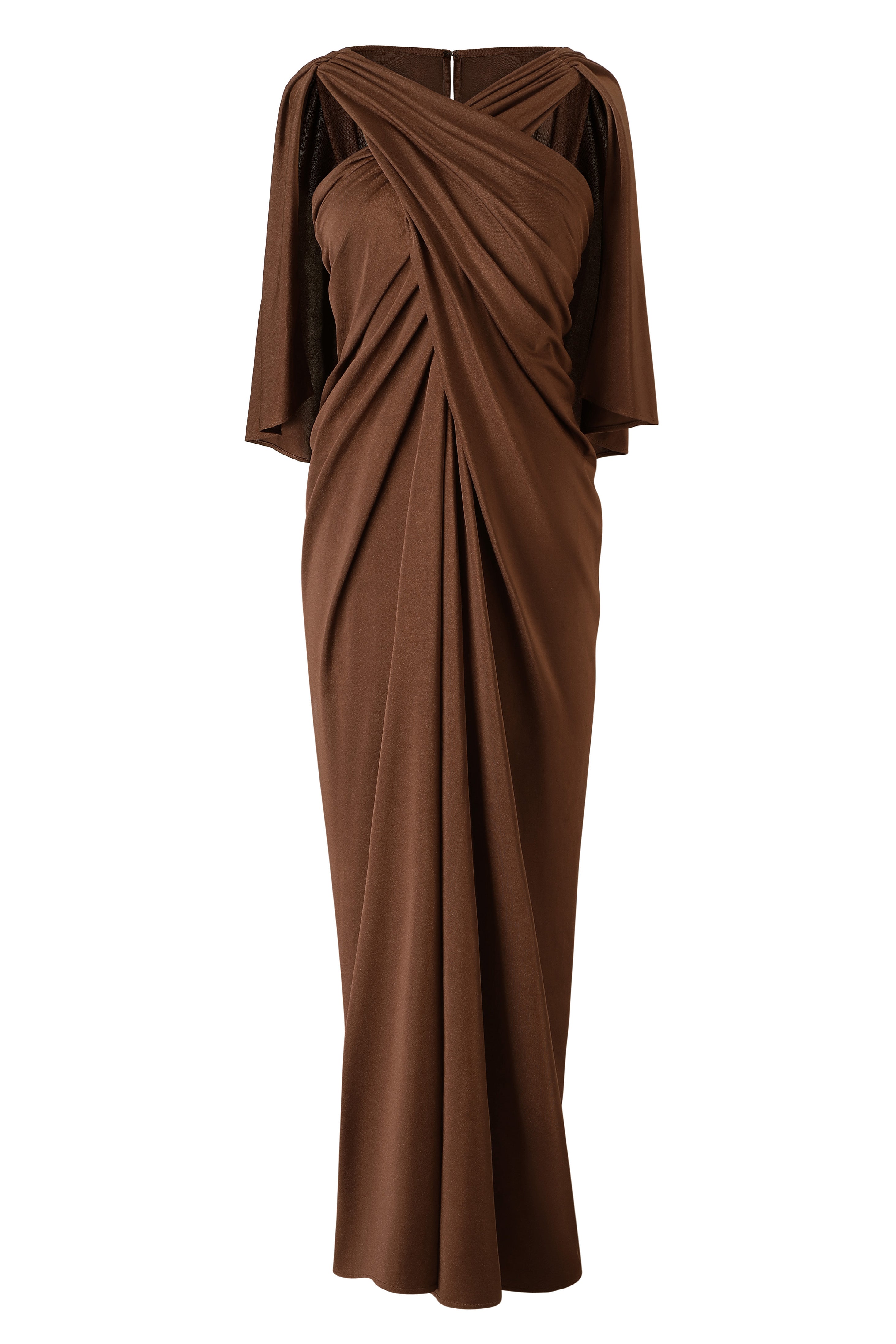 Crisscross Draped Cape Sleeve Evening Gown