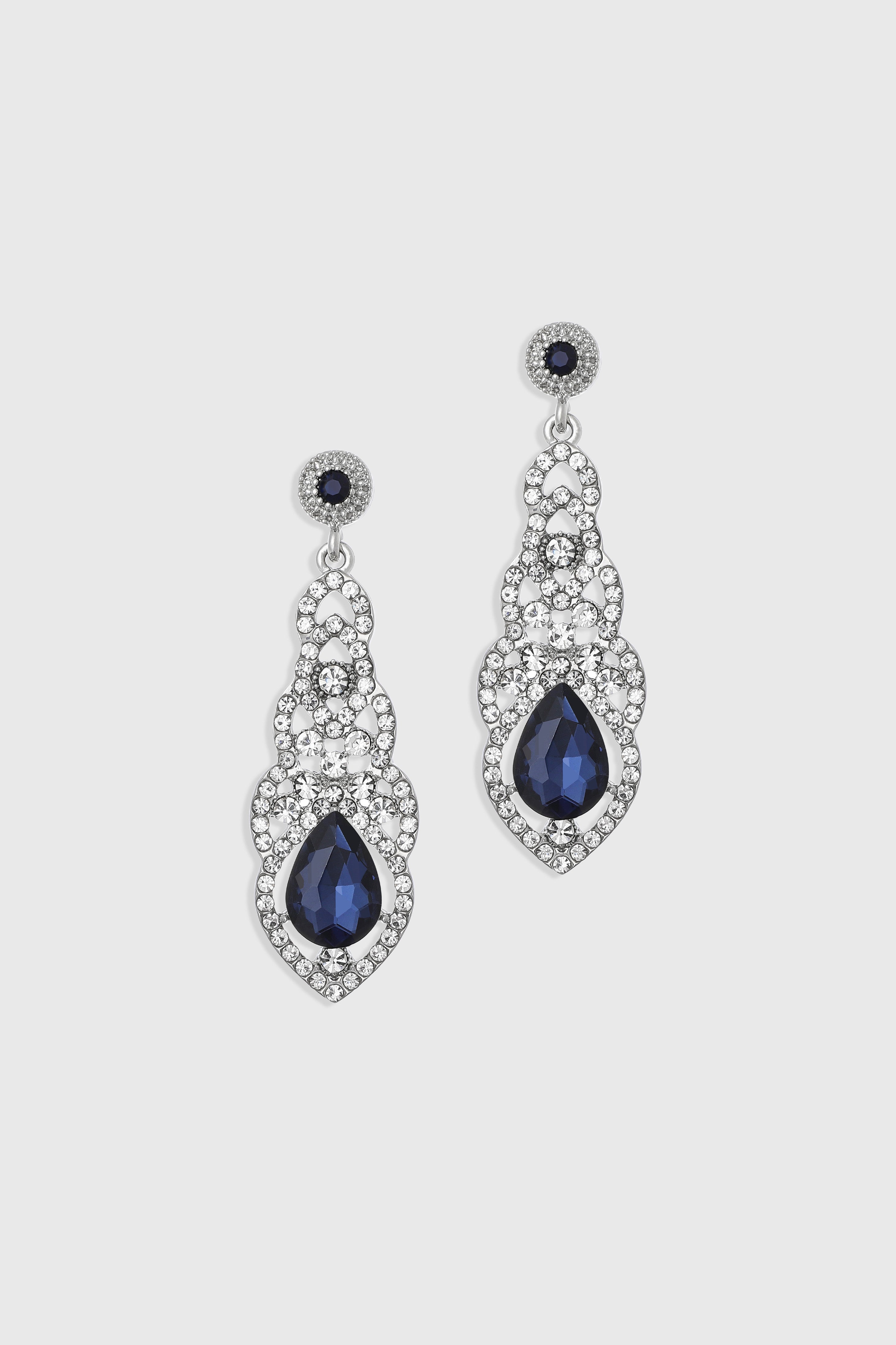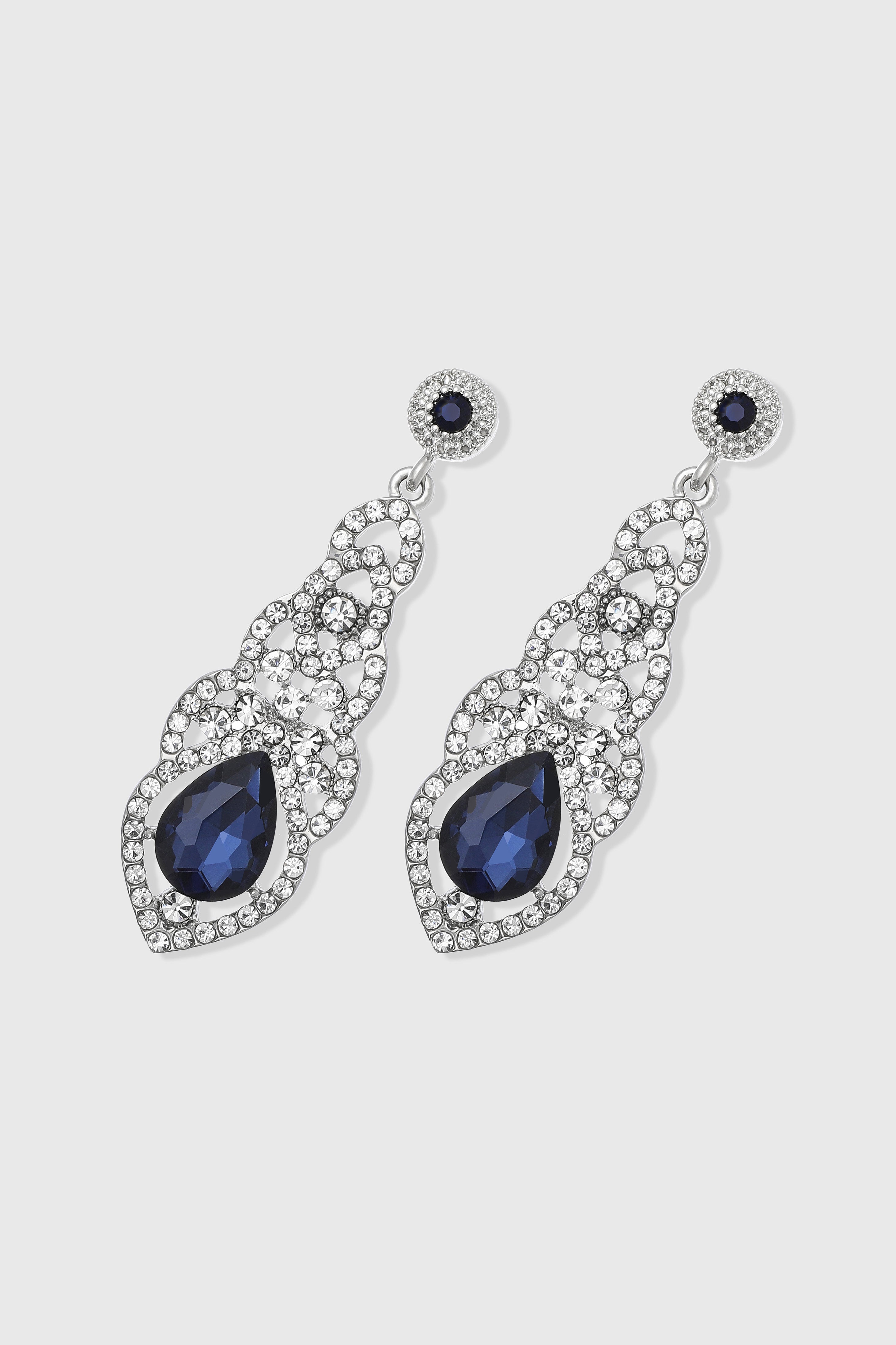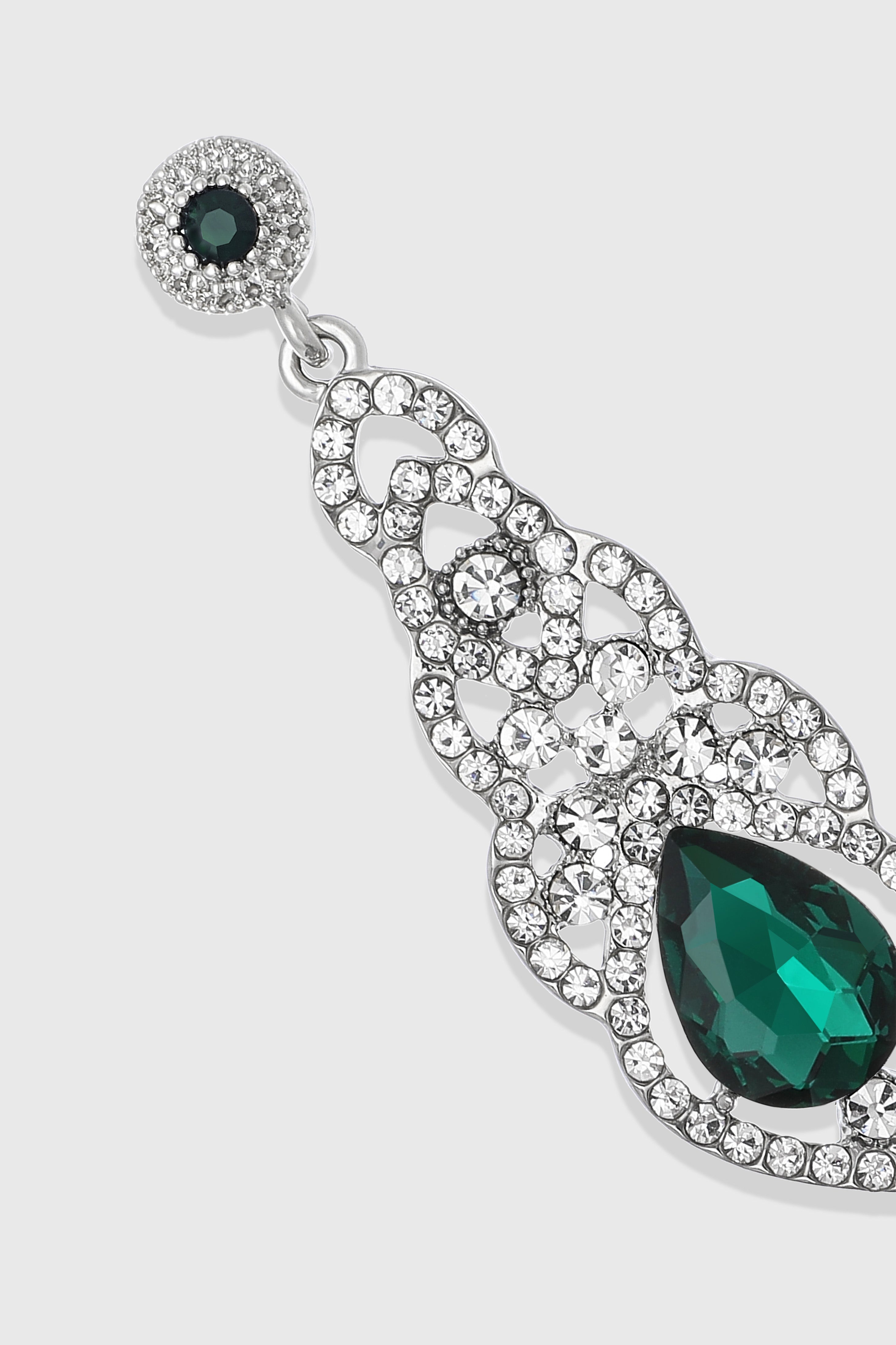 The delicate filigree pattern, adorned with shimmering pavé-set rhinestones, creates a captivating contrast against the gold-tone metal. The long-drop silhouette gracefully elongates the neck, ensuring you’ll make a memorable impression wherever you go.