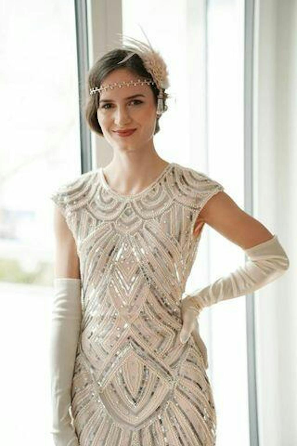 This elegant dress is classic vintage look for a modern woman. The eyecatching design features art deco print and unique vintage style which bring you back to the roaring twenties.