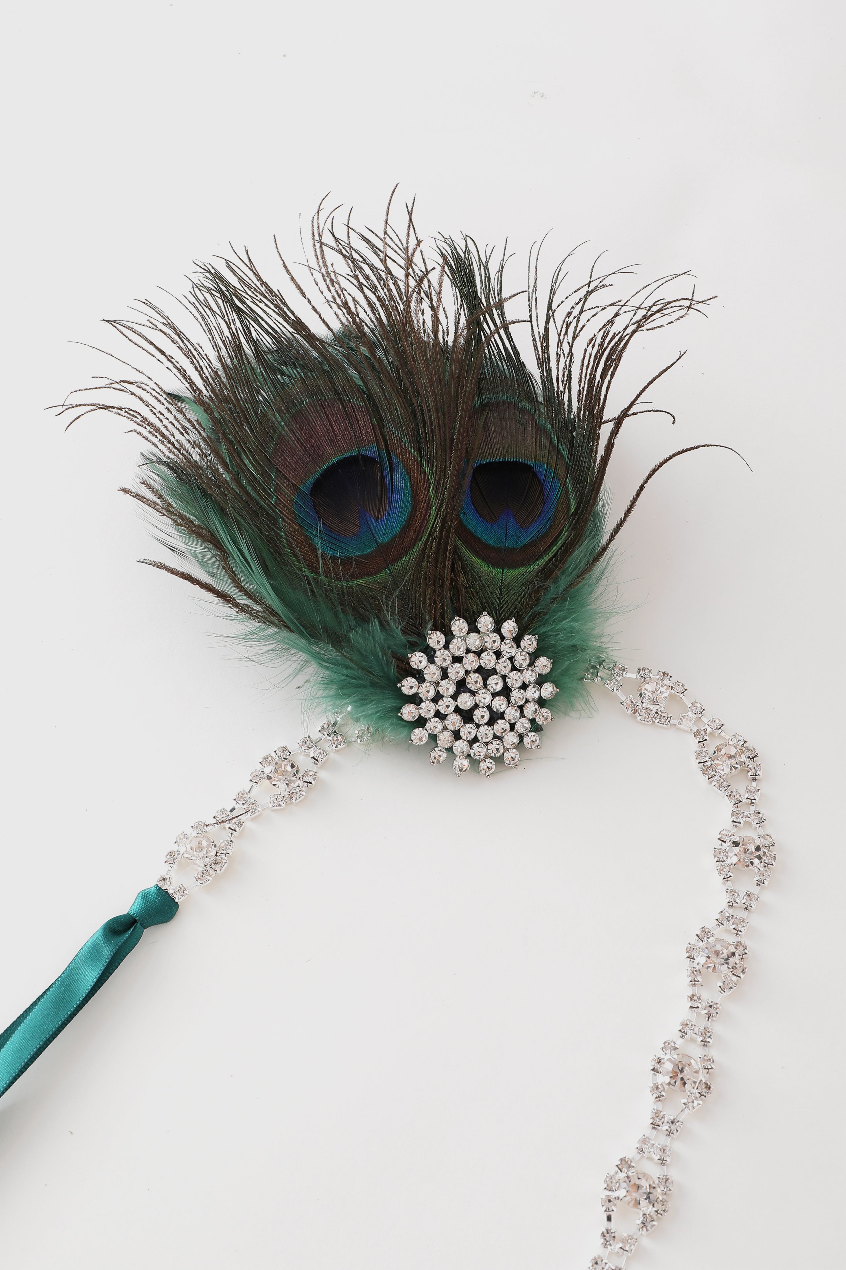 Peacock Feather and Emerald Crystal Headband