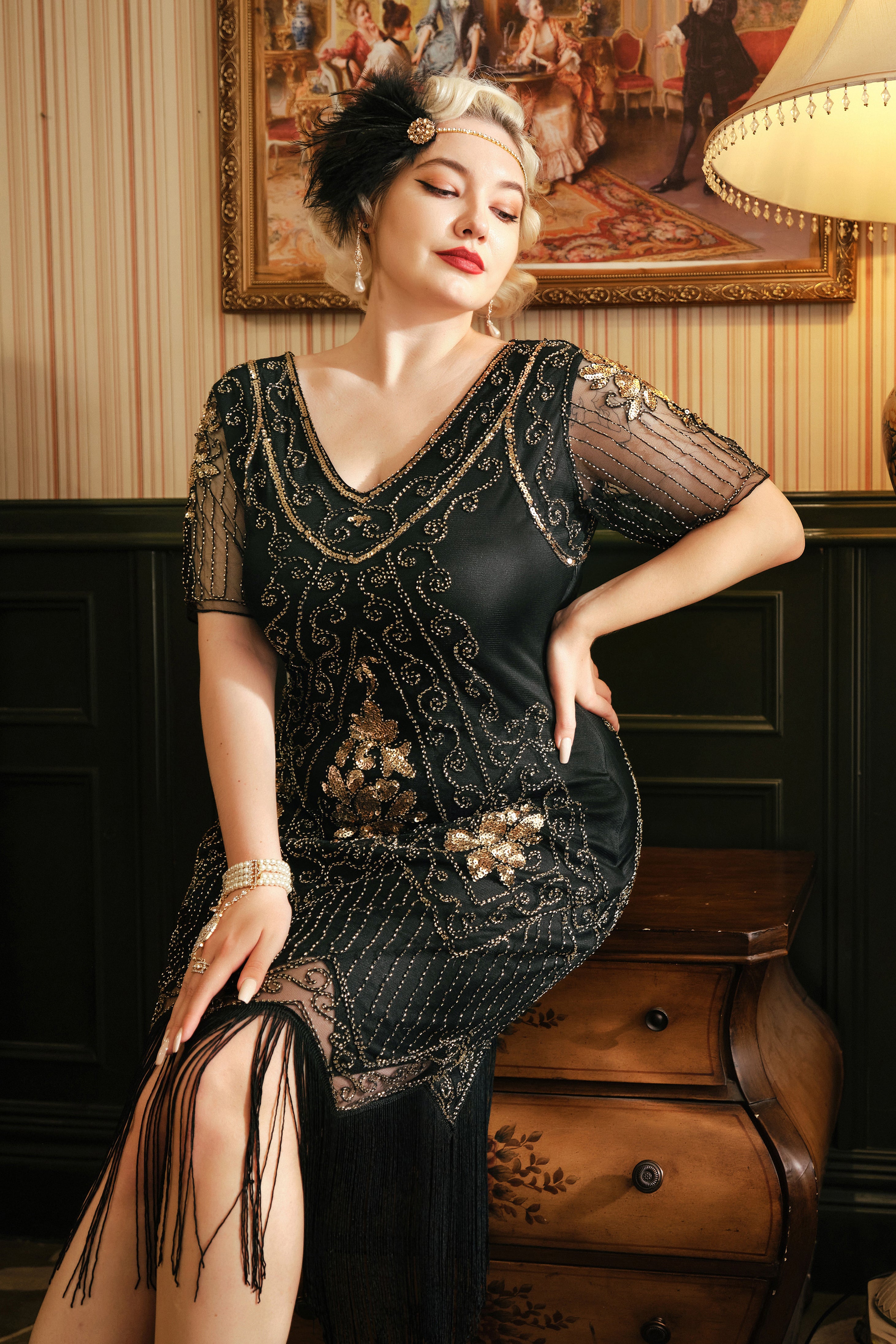 Get inspired by our selection of roaring 20's plus size dresses and plus size Gatsby dresses.