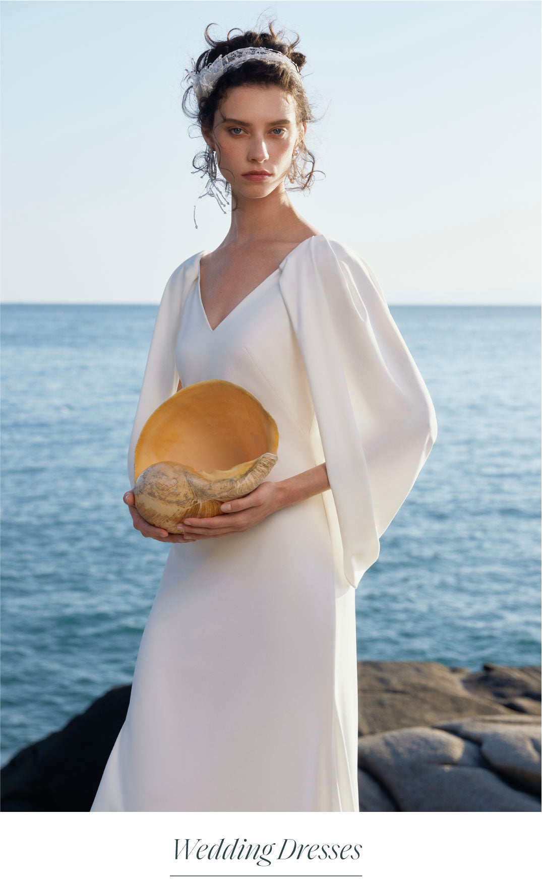 Inspired by the enchantment of the 1920s and the tranquil charm of the coast, each piece in this collection honors love in its myriad forms. Brimming with elegance and versatility, these designs turn every moment into a lyrical celebration of romance and heritage. With everlasting beauty and seaside allure, every cherished event is graced with timeless grace, creating a dreamy and romantic atmosphere that lingers in the heart.