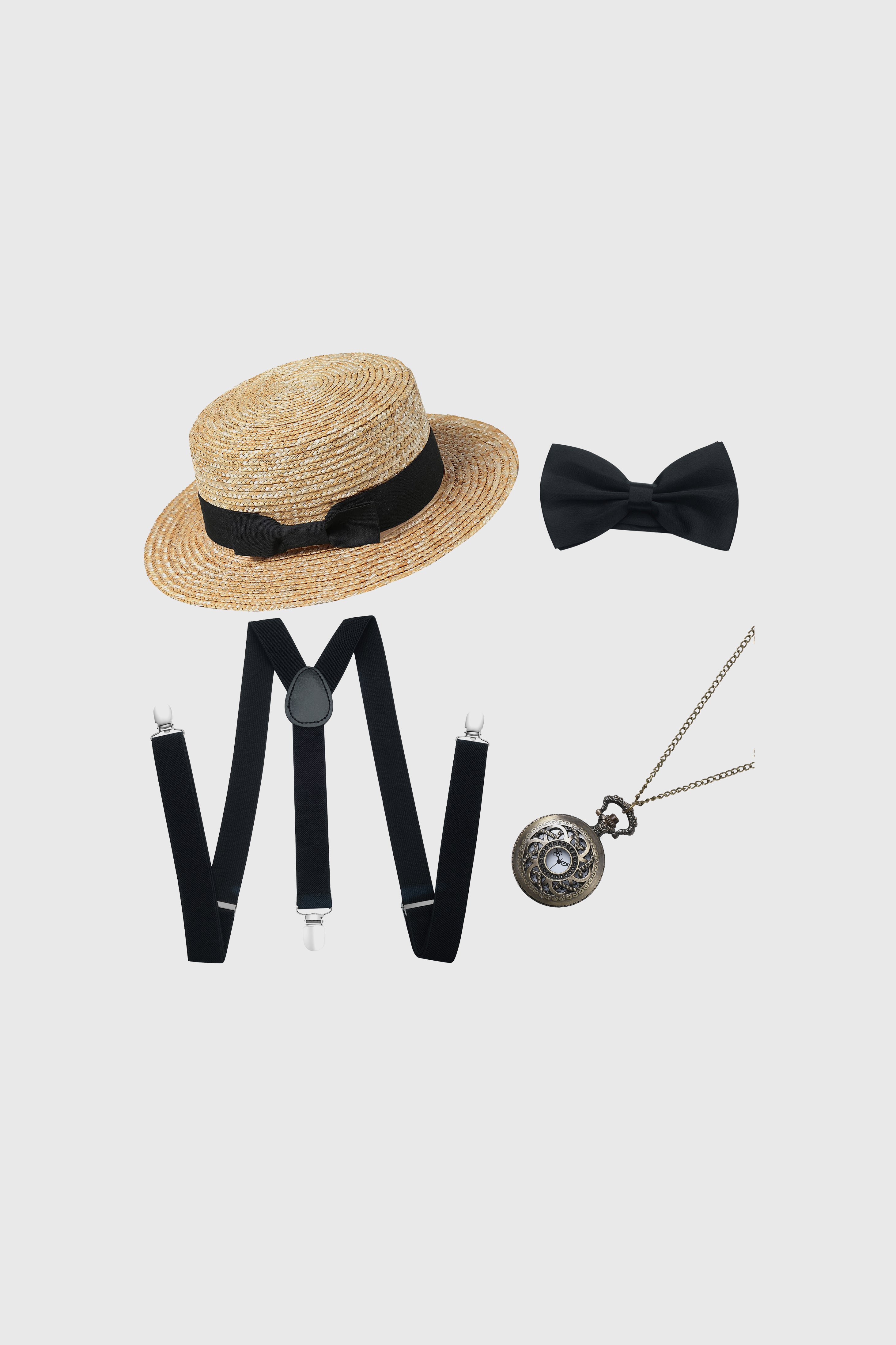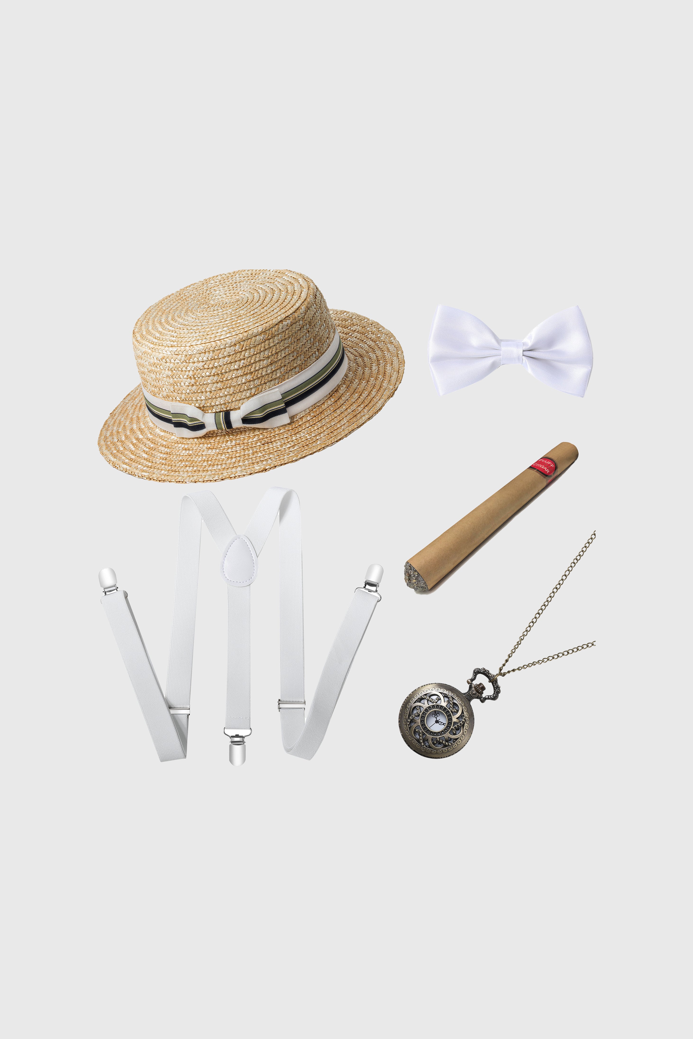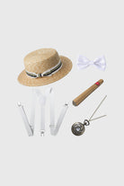 A lightweight straw hat set inspired by 1920s Gatsby style, perfect for vintage parties, themed events, and classic gentleman looks.