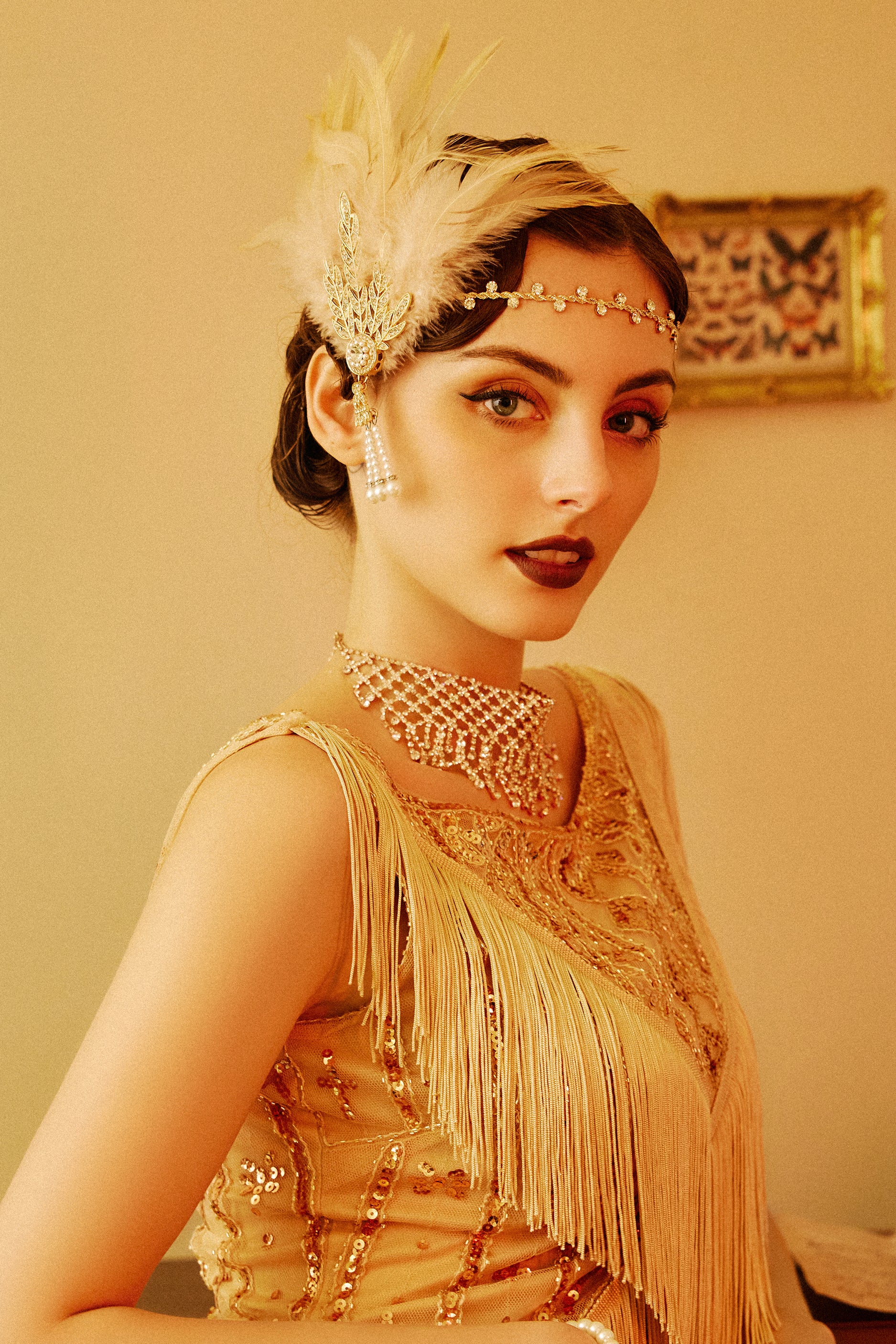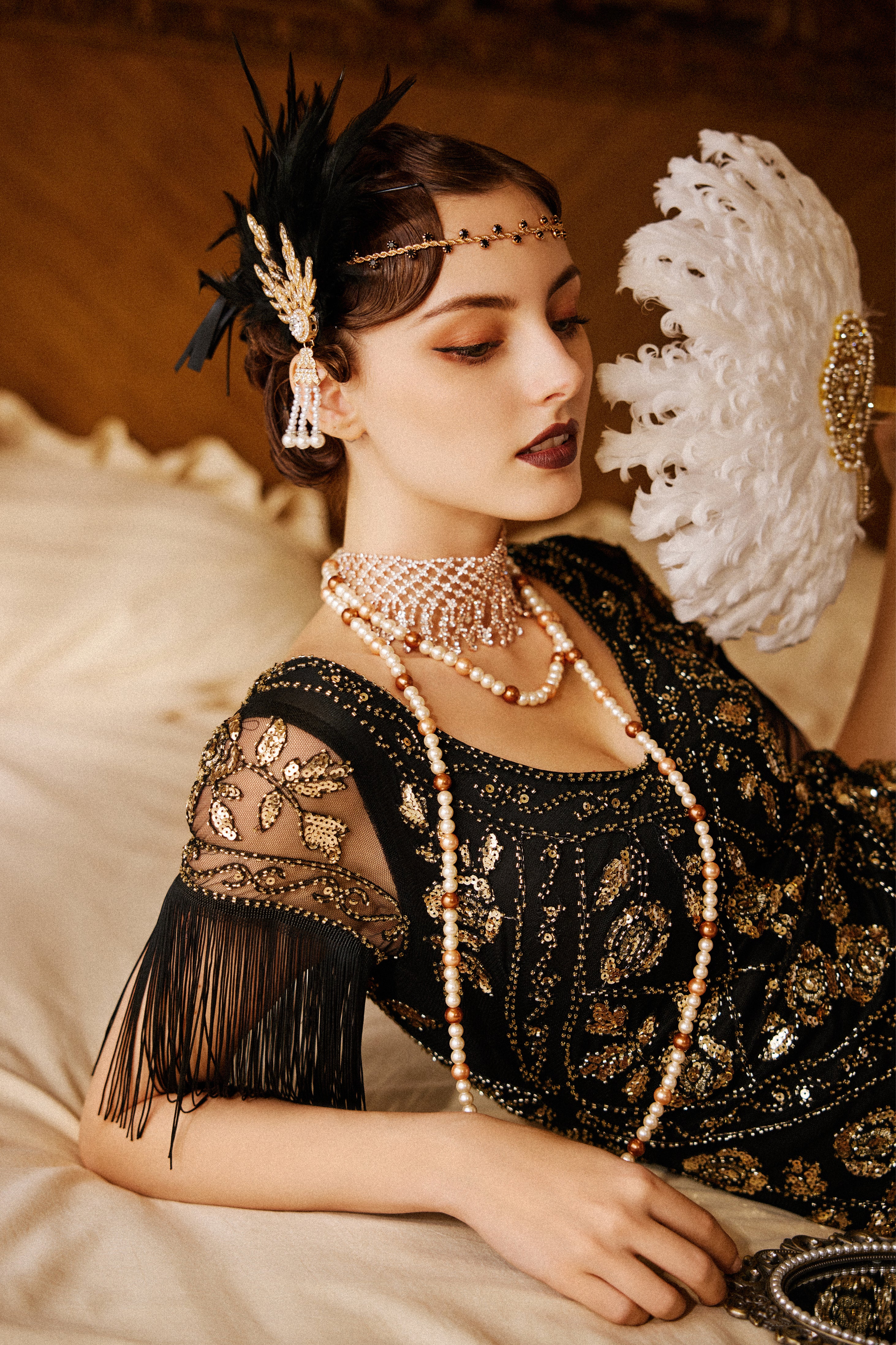 Roar back 100 years to unprecedented golden 20s with this headband, which perfectly create an elegant and sophisticated Gatsby style.