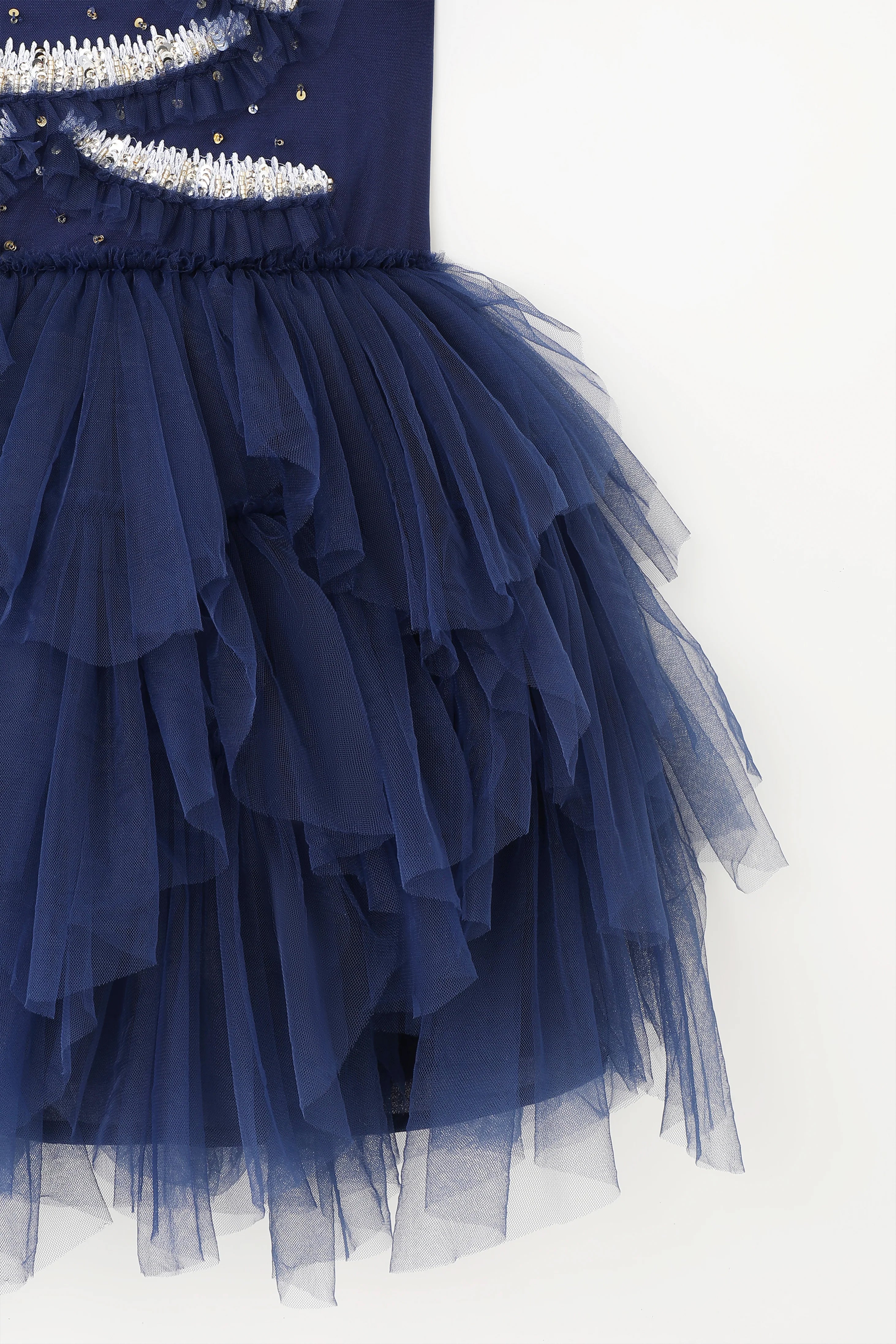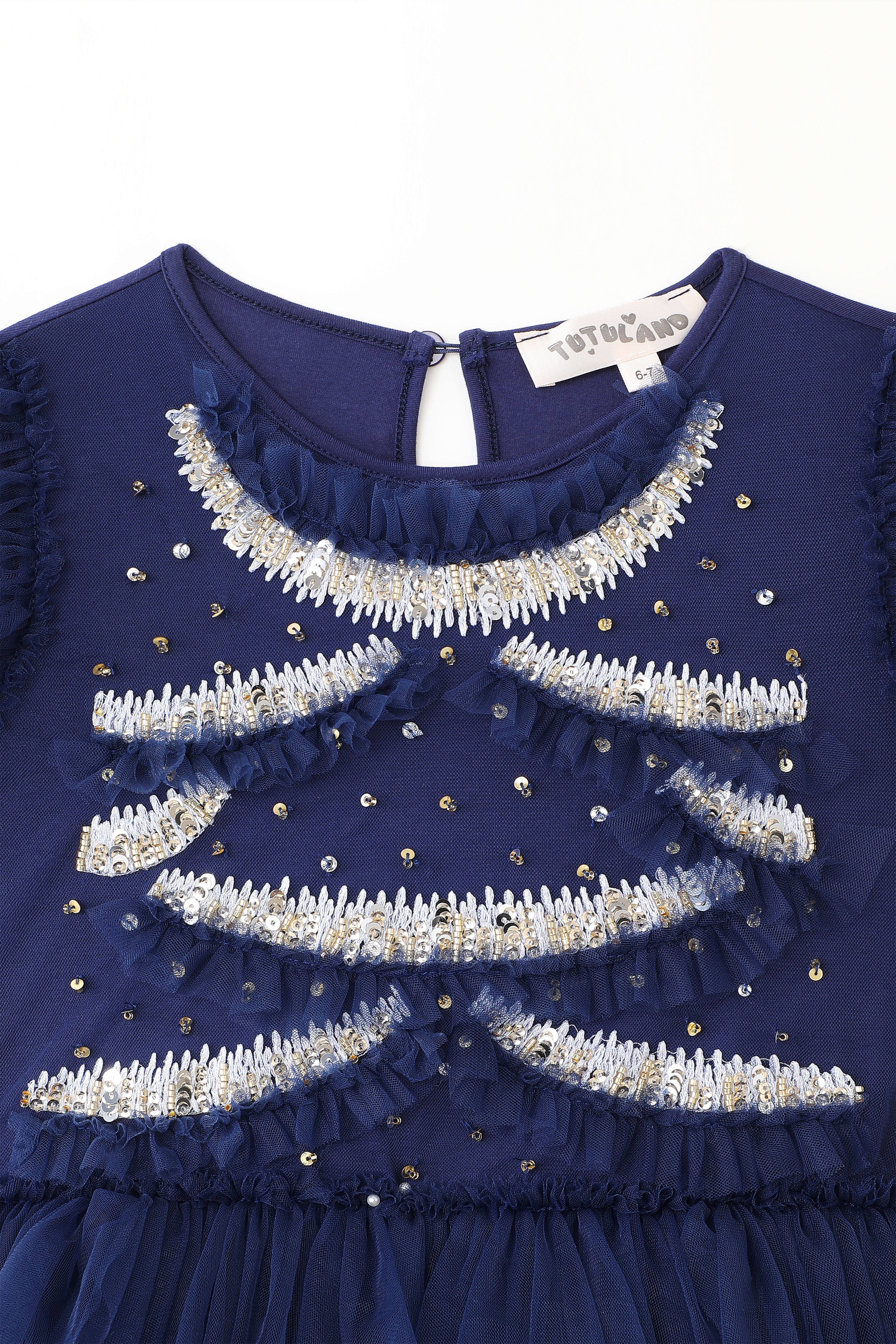 - Hand-sewn sequins and tulle satin flowers