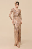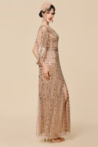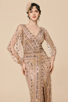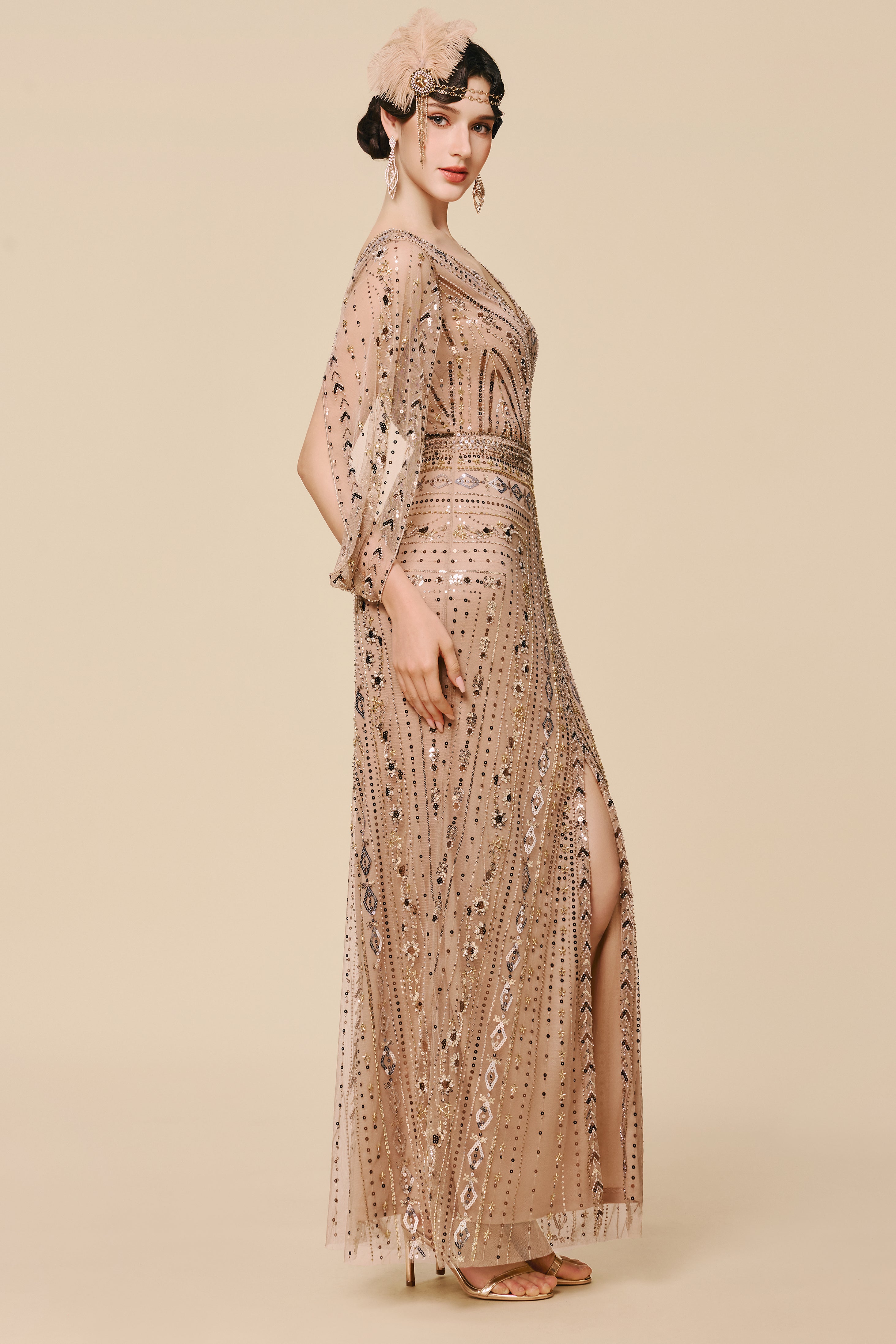 Commanding Beaded Split Sequin Evening Gown
