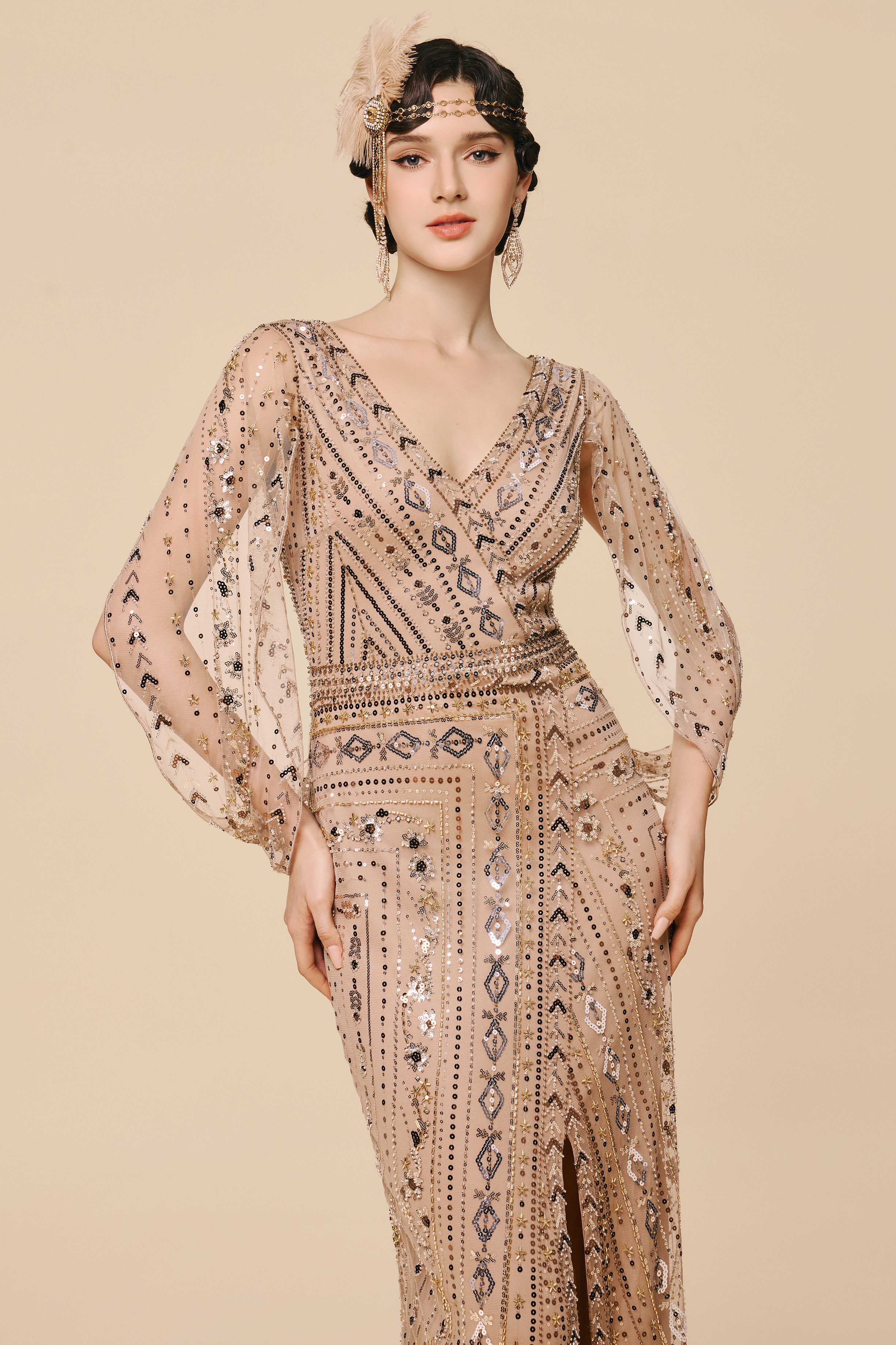 • Art deco inspired beading
