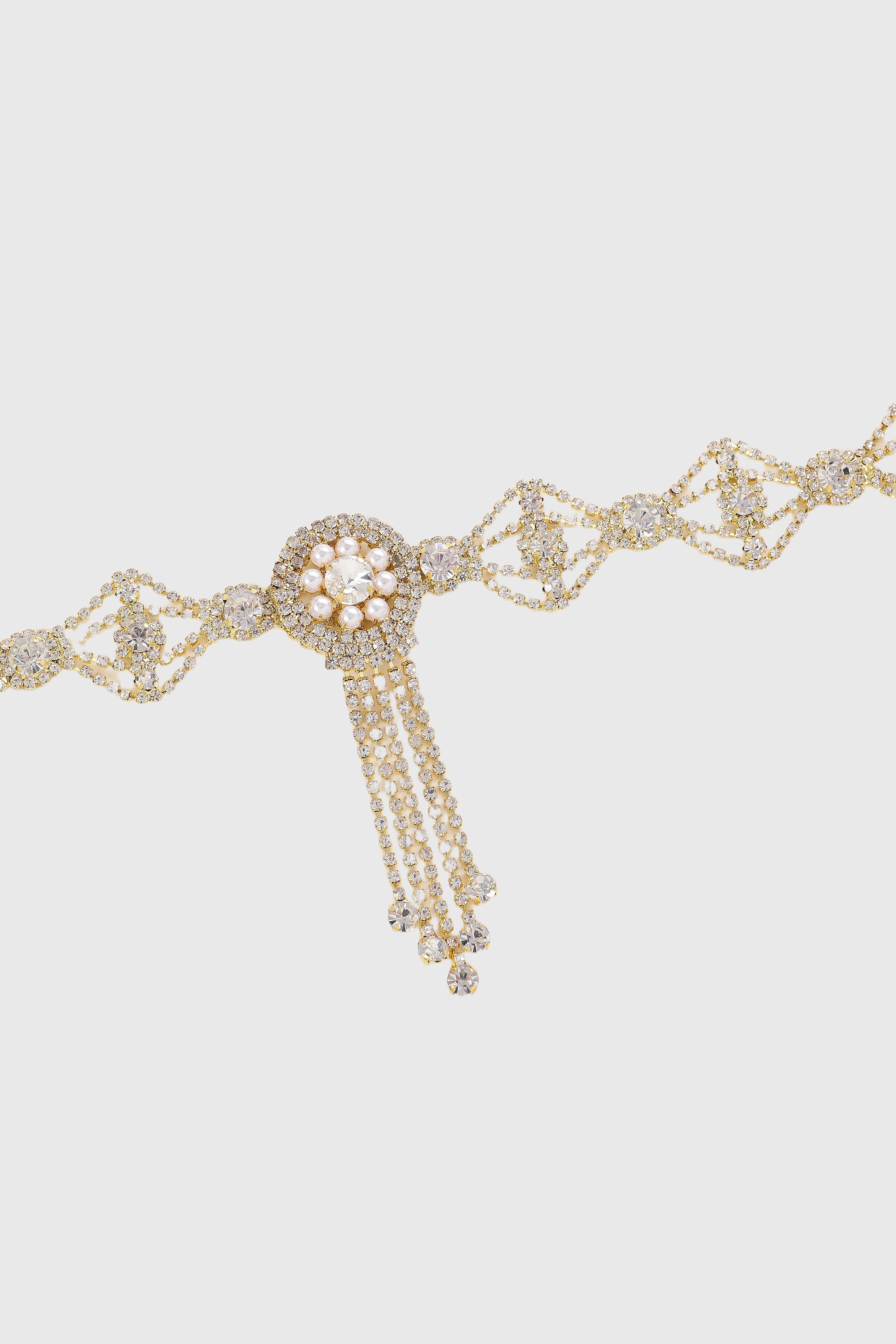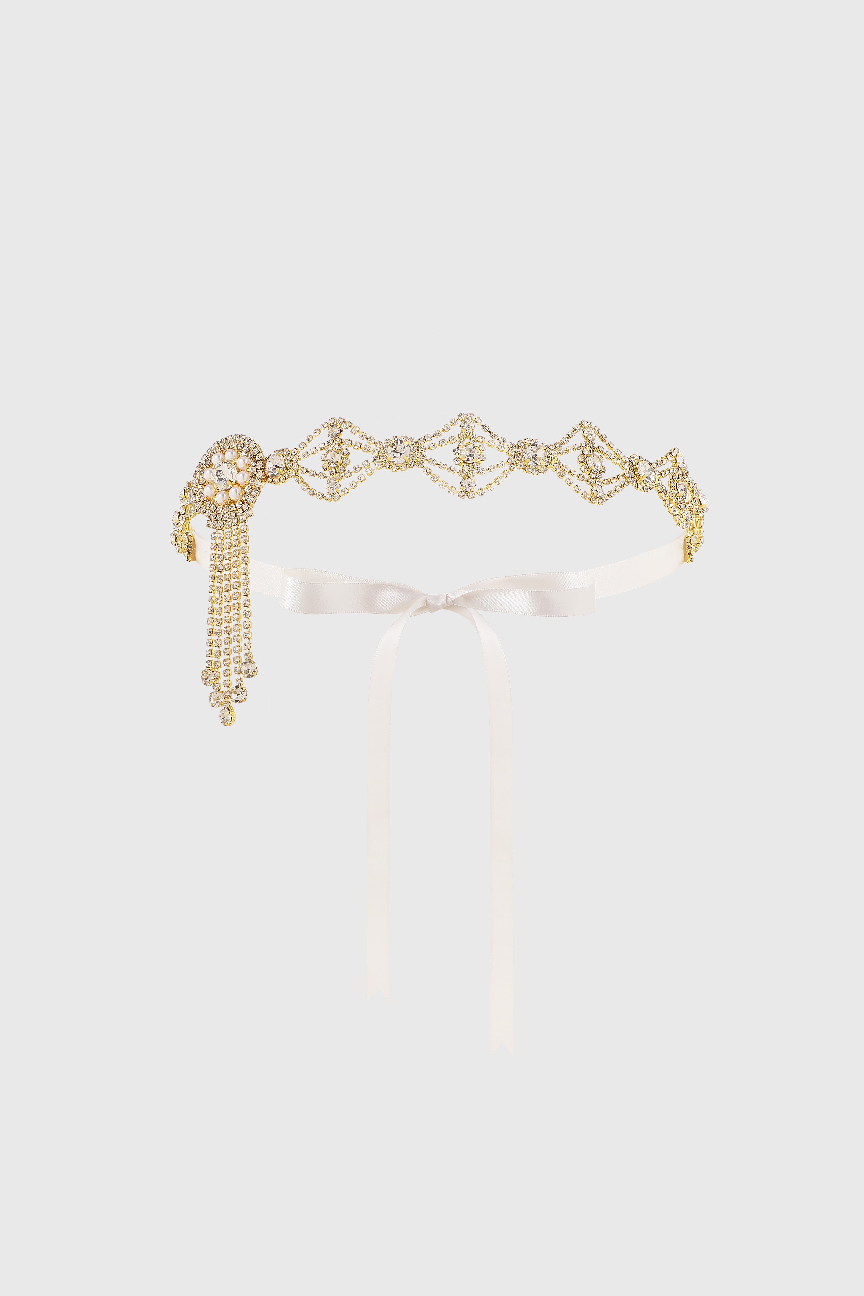 Ethereal Art Deco Crystal Pearl Tassel Headpiece