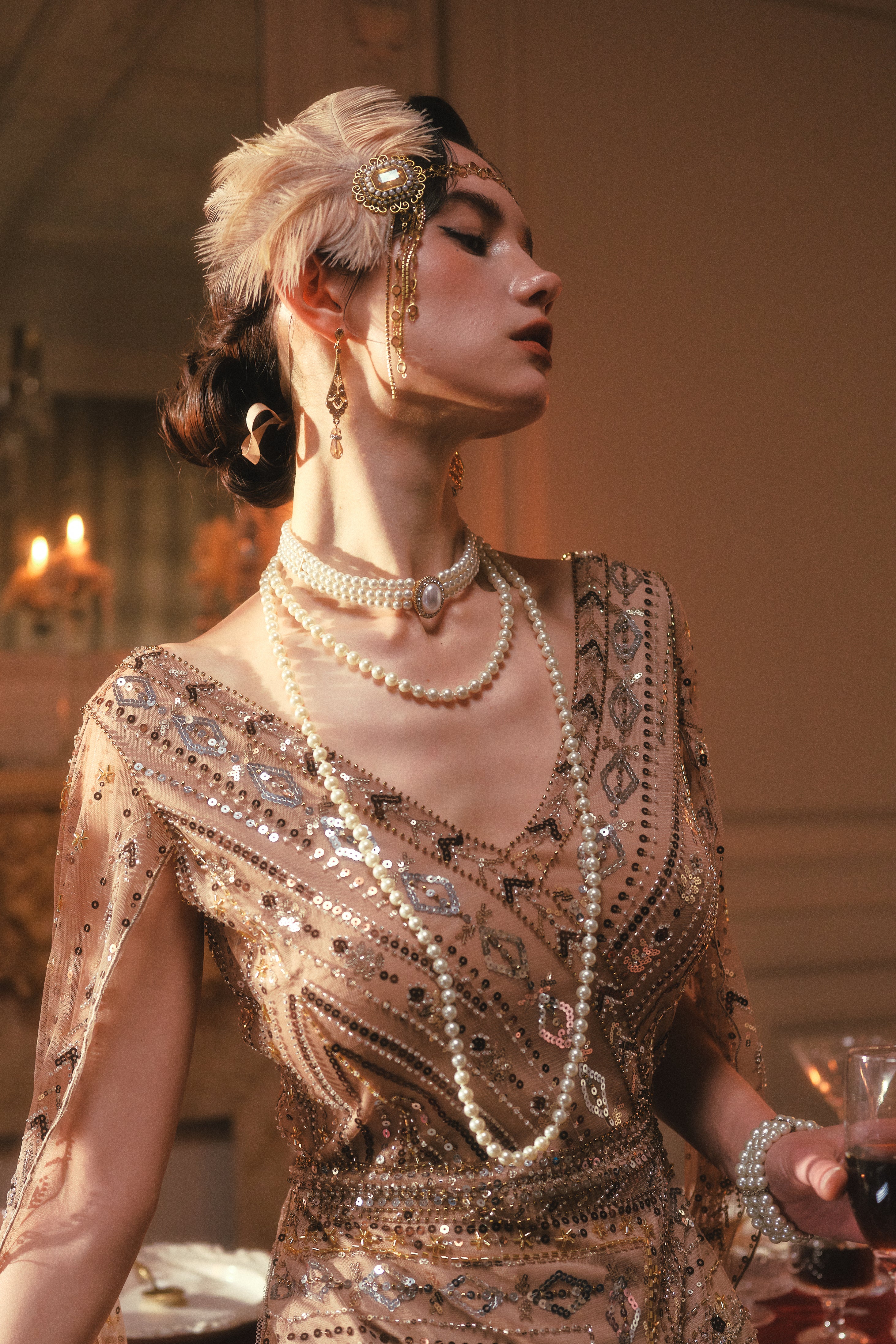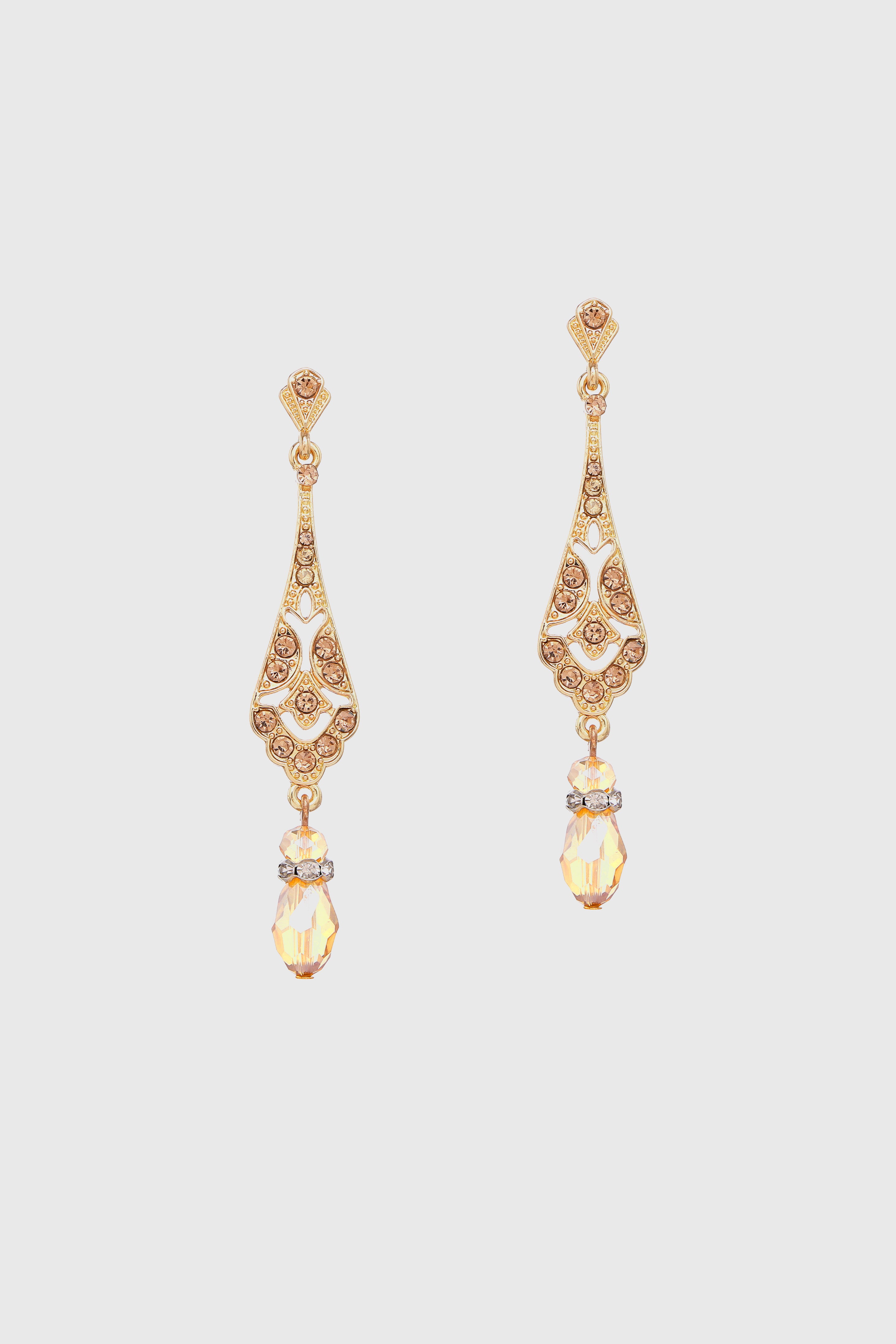 These drop earrings feature sparkling crystal detailing in an elegant Art Deco–inspired silhouette, offering graceful movement and timeless charm.