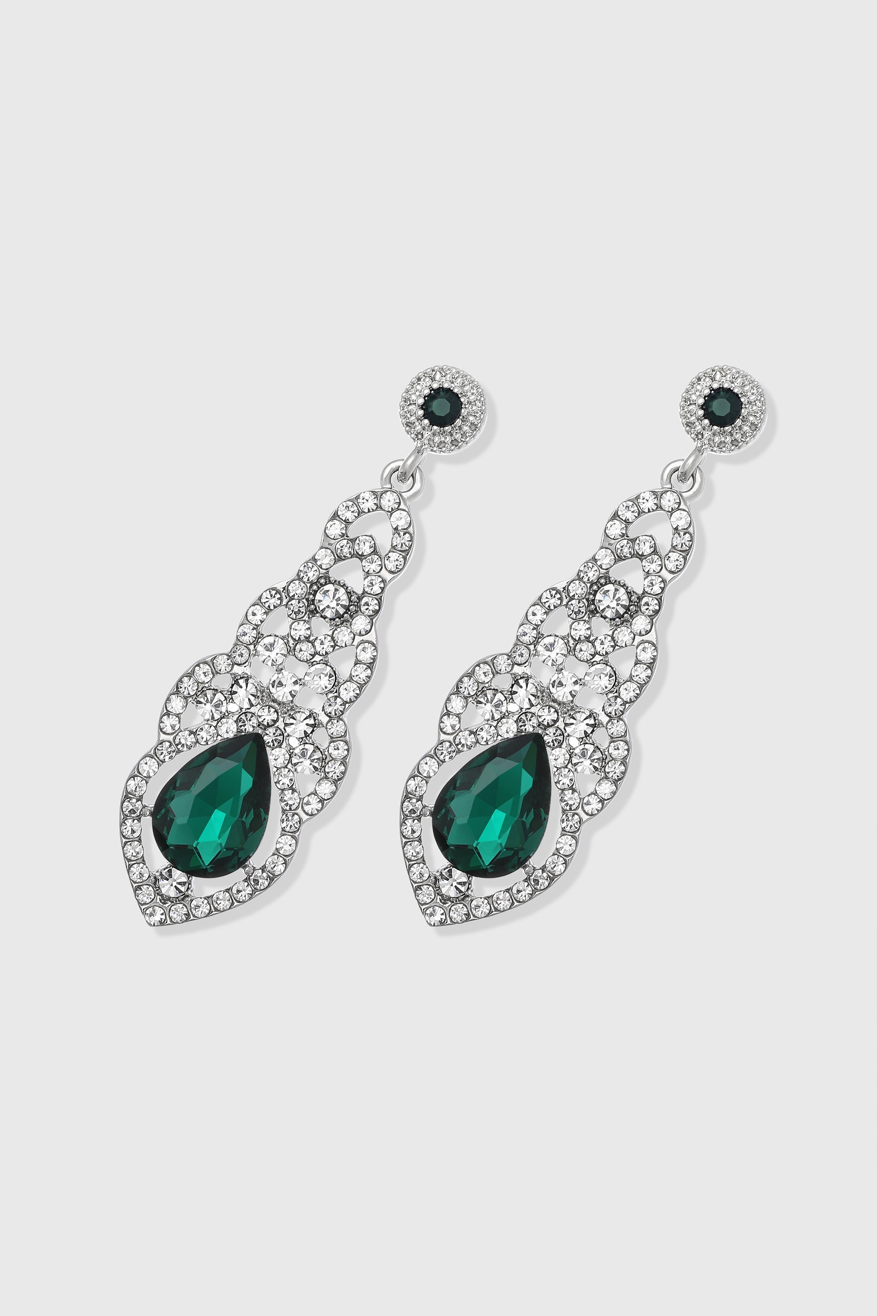 The delicate filigree pattern, adorned with shimmering pavé-set rhinestones, creates a captivating contrast against the gold-tone metal. The long-drop silhouette gracefully elongates the neck, ensuring you’ll make a memorable impression wherever you go.