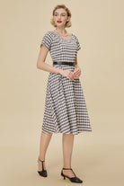 Convertible Neckline Gingham Fit-and-Flare Swing Dress