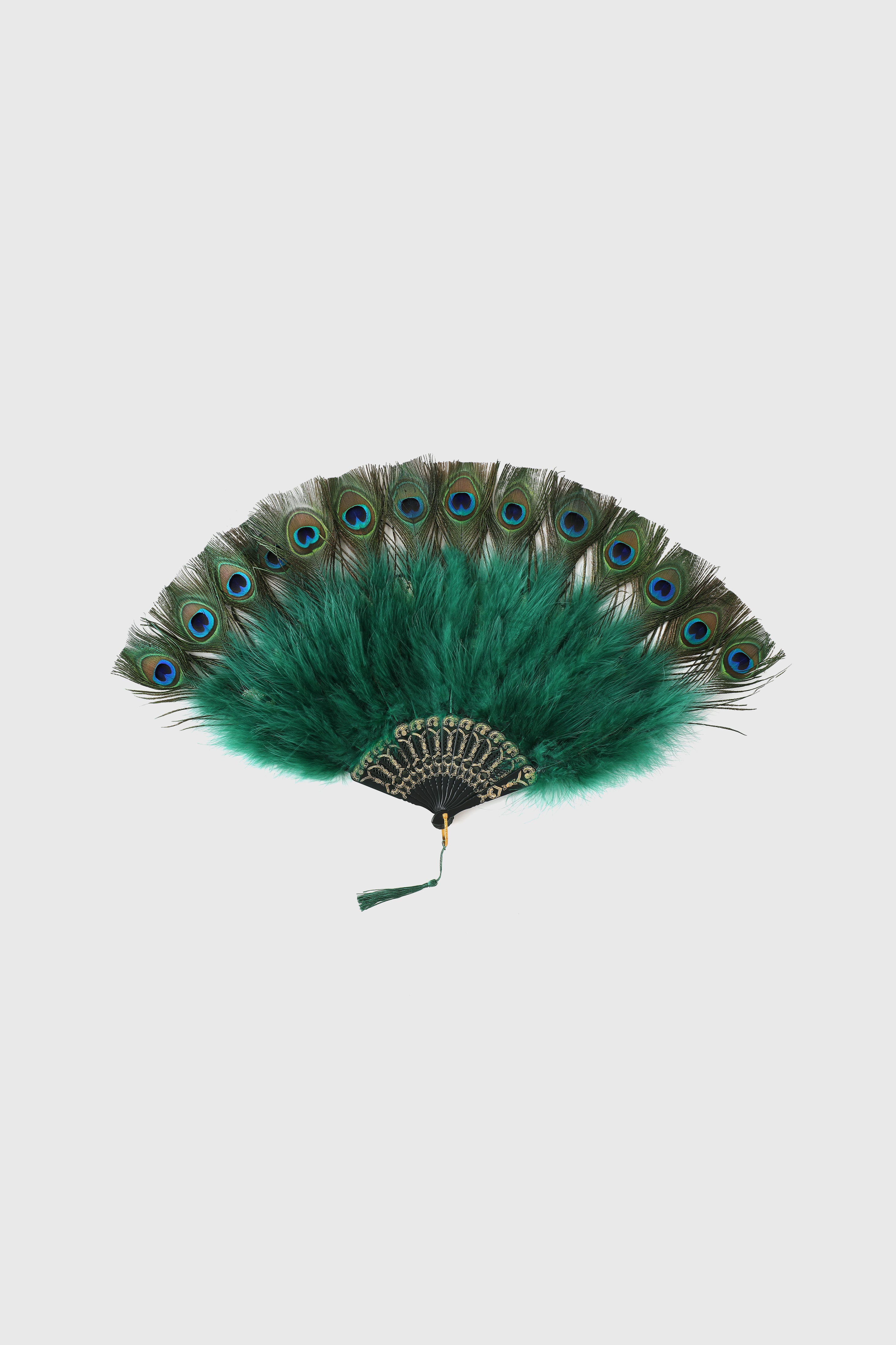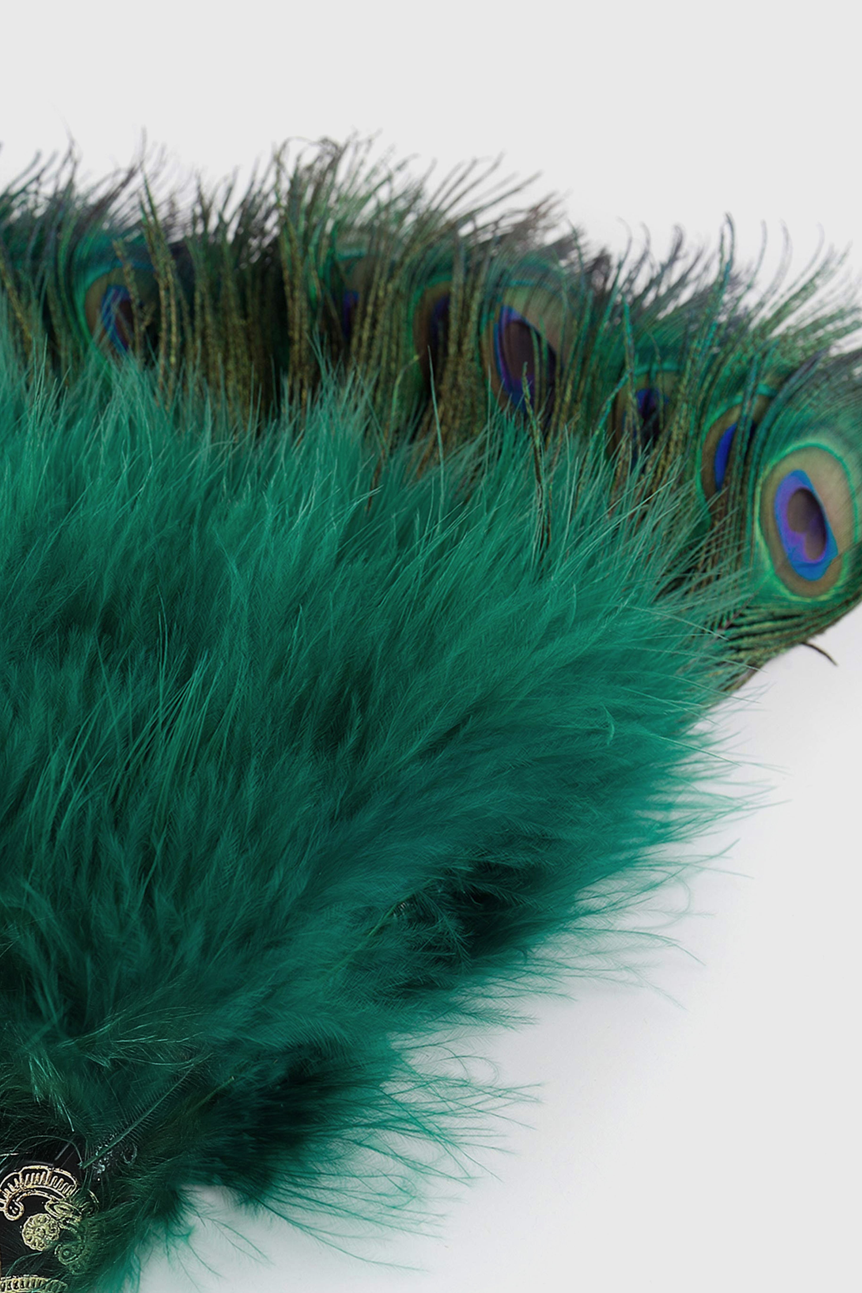 Elegant handheld fan crafted with soft marabou and natural peacock feathers, combining vintage charm with refined detail.