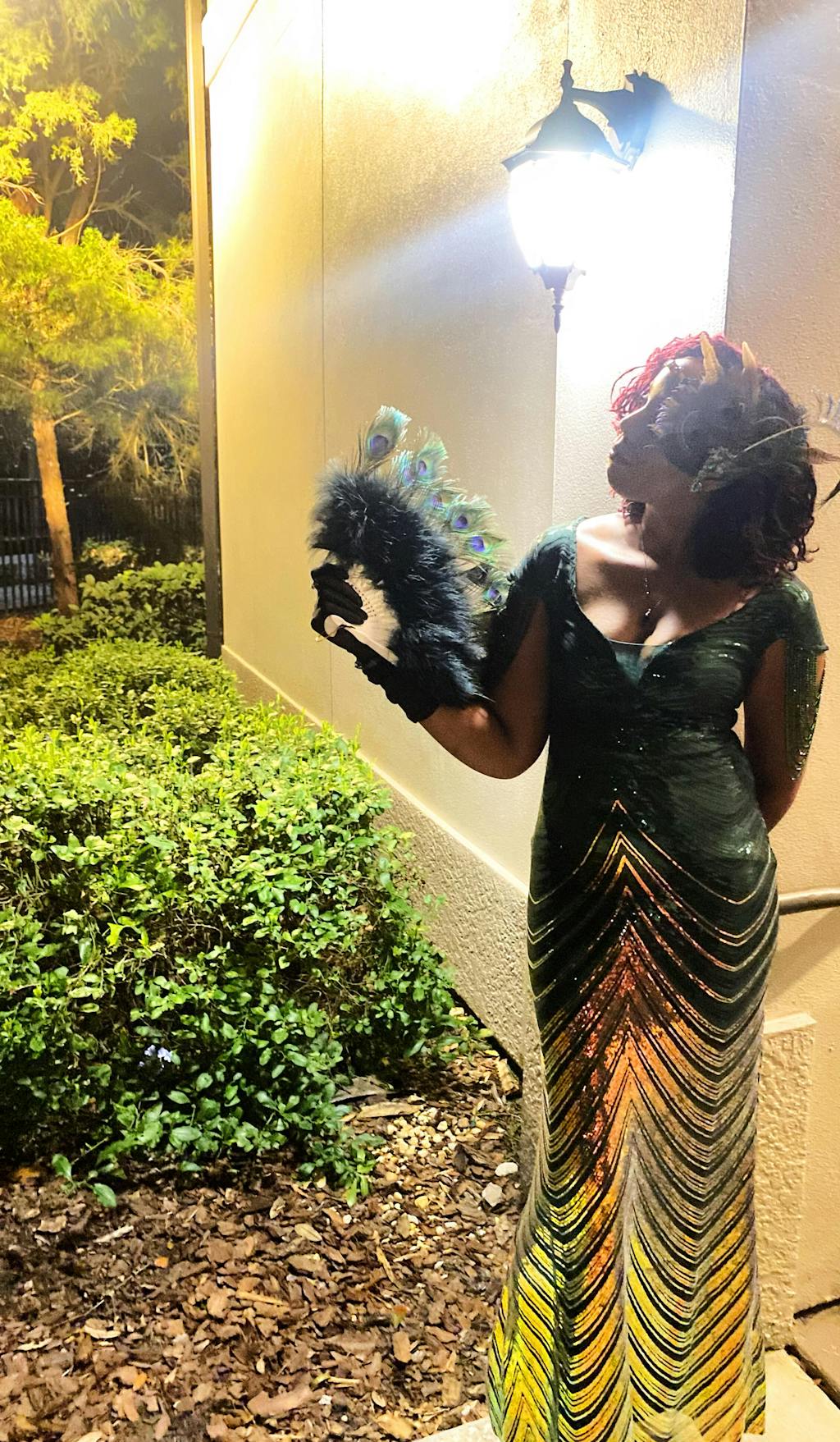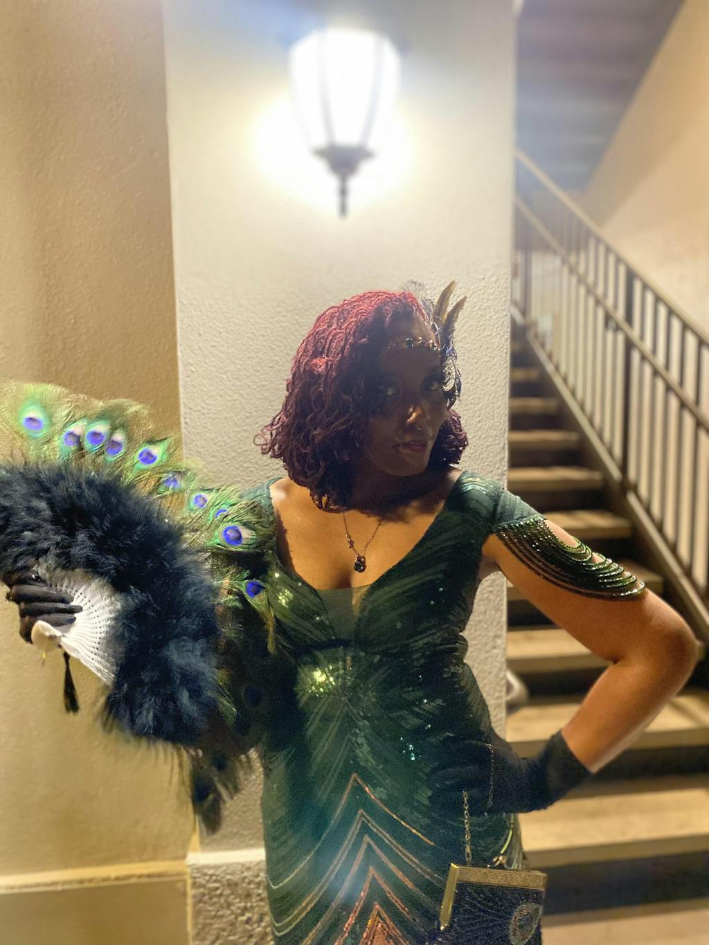 This vintage-inspired retro style dress caters perfectly to 1920s fashion. It's the incarnation of flair, like a proud peacock showing its pretty feathers.