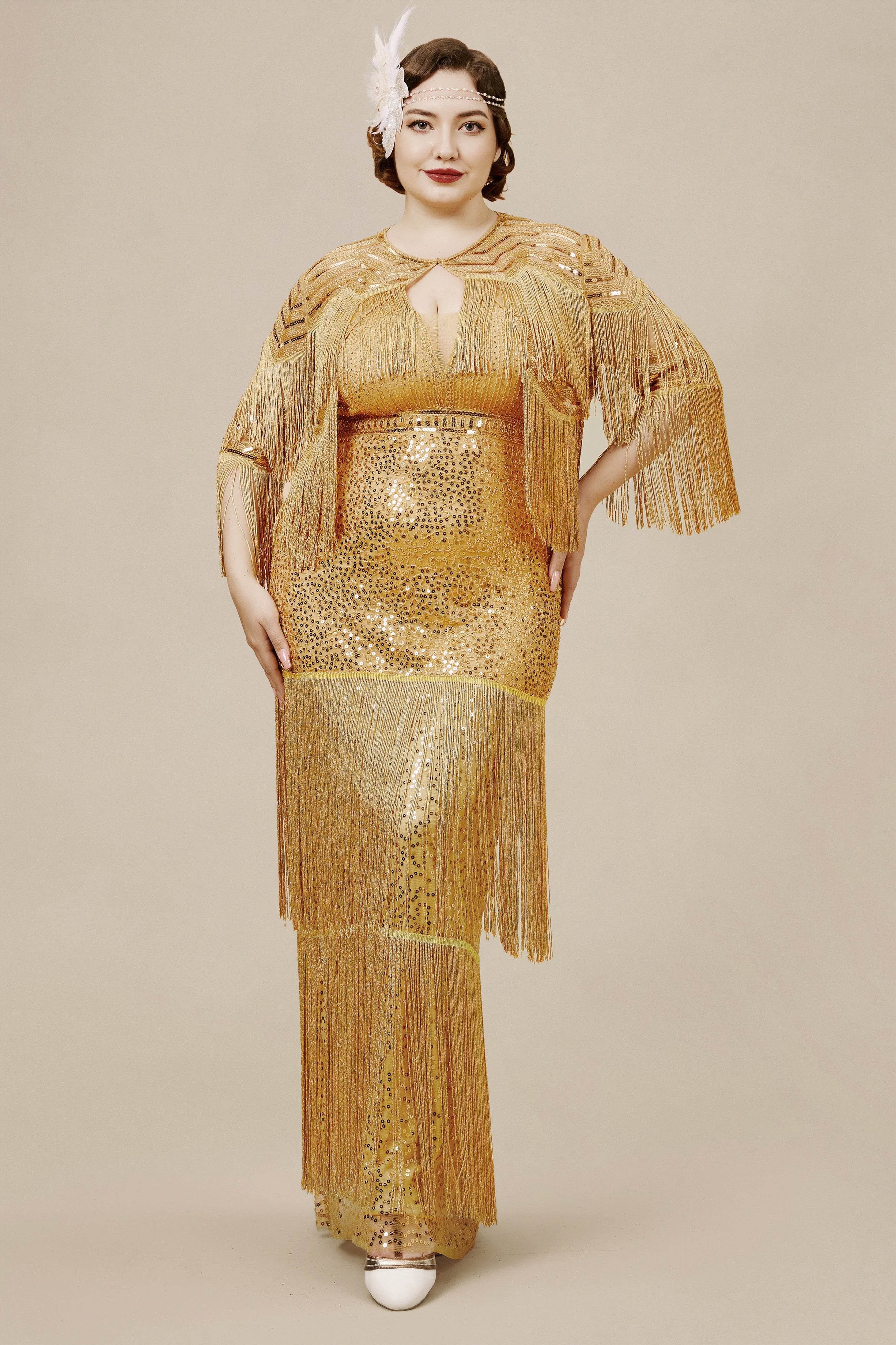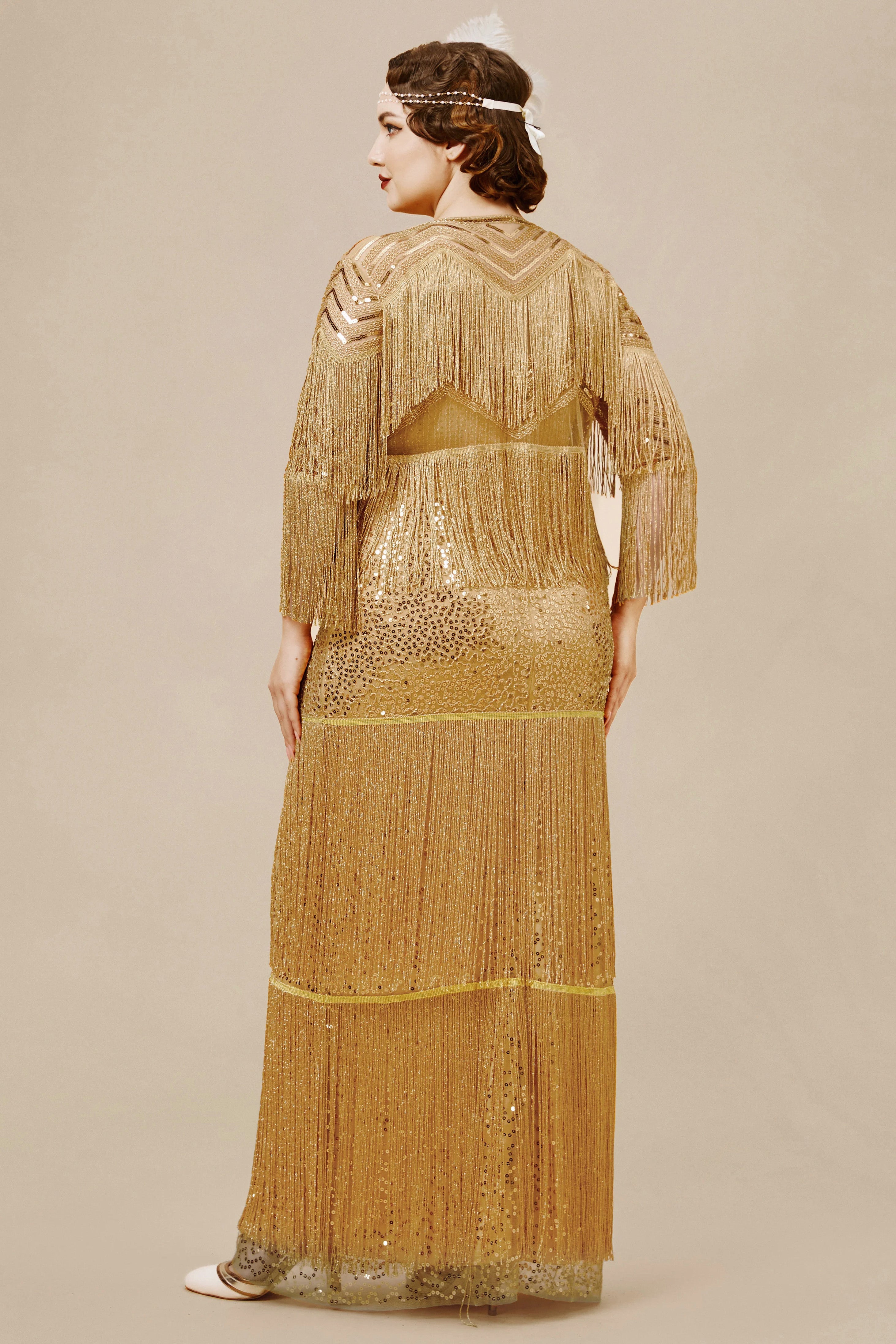 This vintage-inspired retro style dress caters perfectly to 1920s fashion. It's the incarnation of elegance and flair. With fringes swaying with your every movement, it can be deemed as truly flapper.