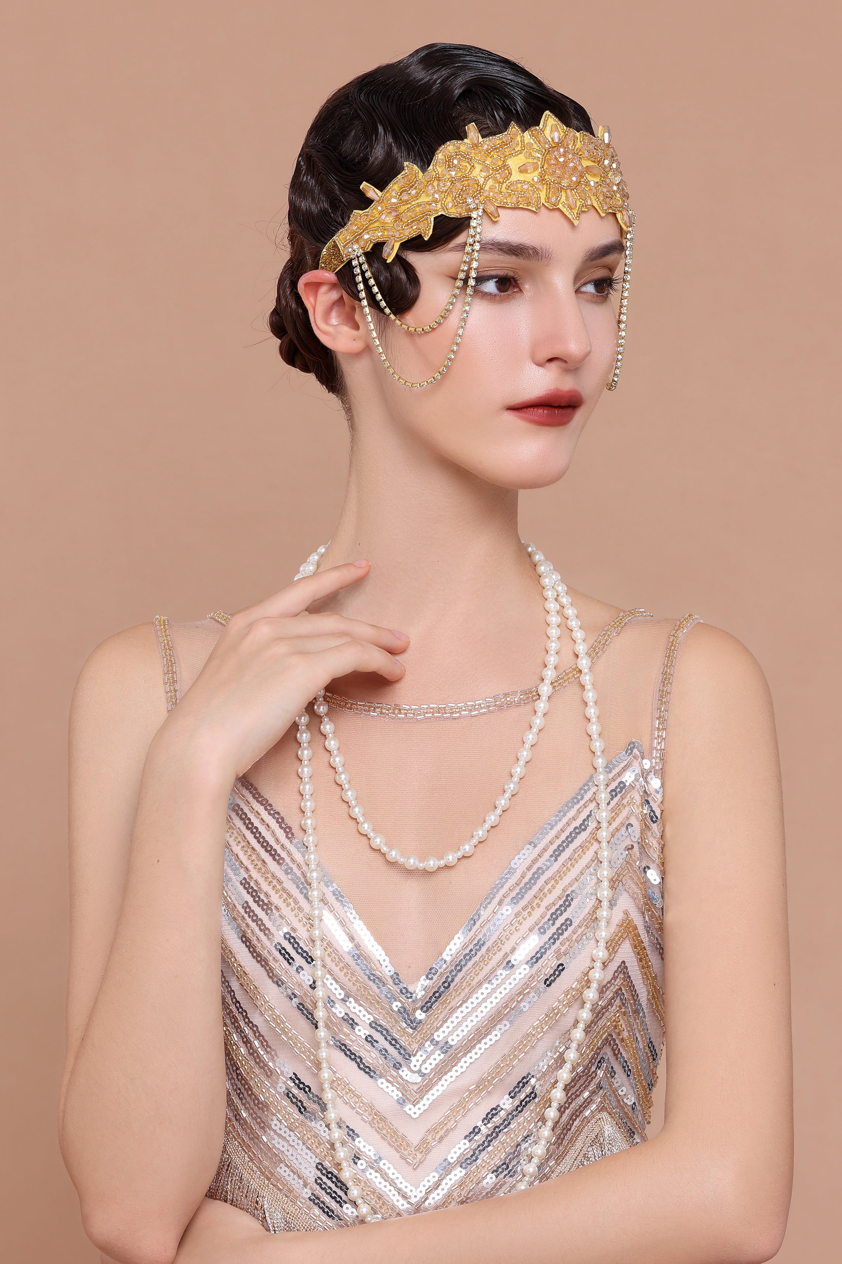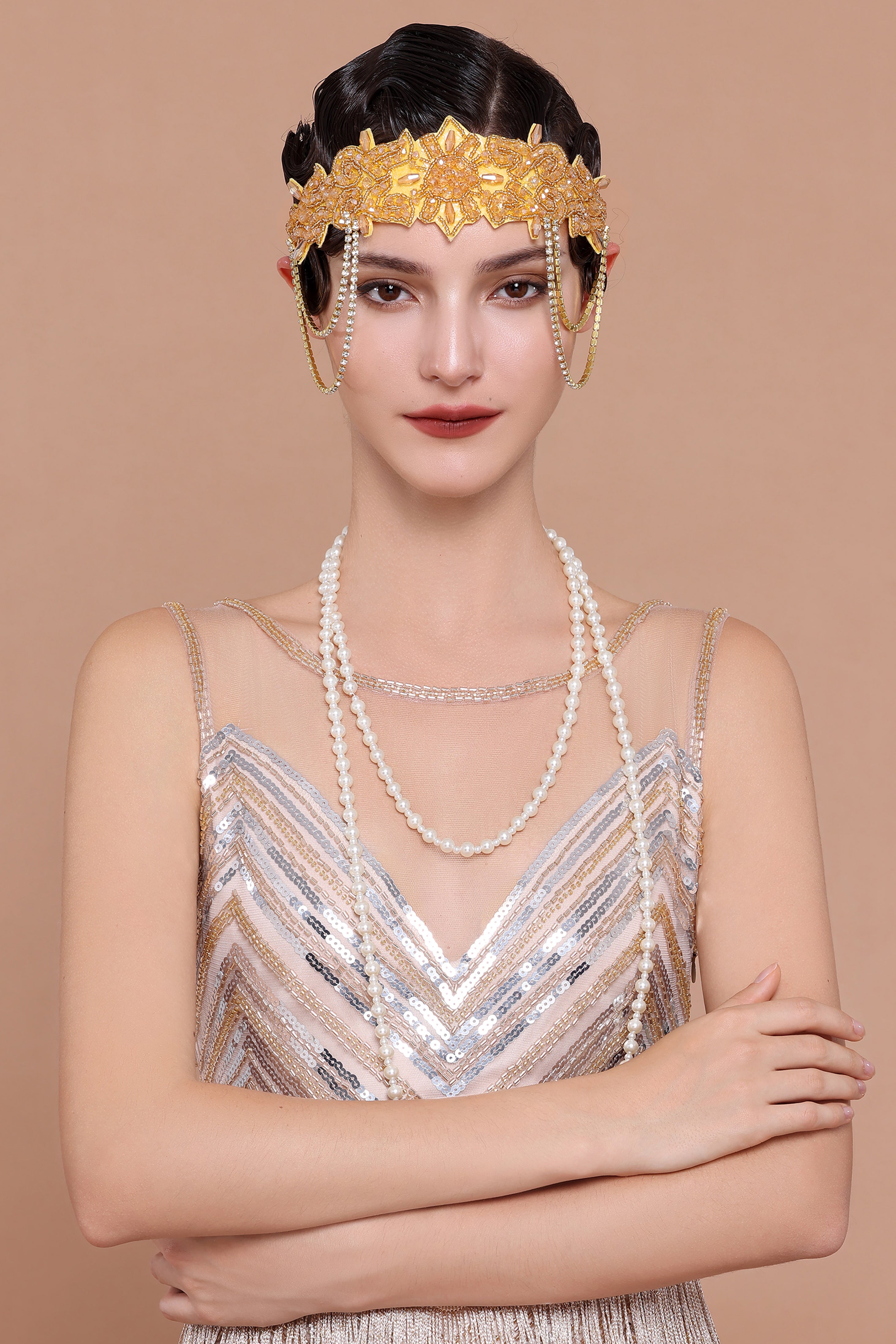 Roar back 100 years to unprecedented golden 20s with this headband, which perfectly create an elegant and sophisticated Gatsby style.