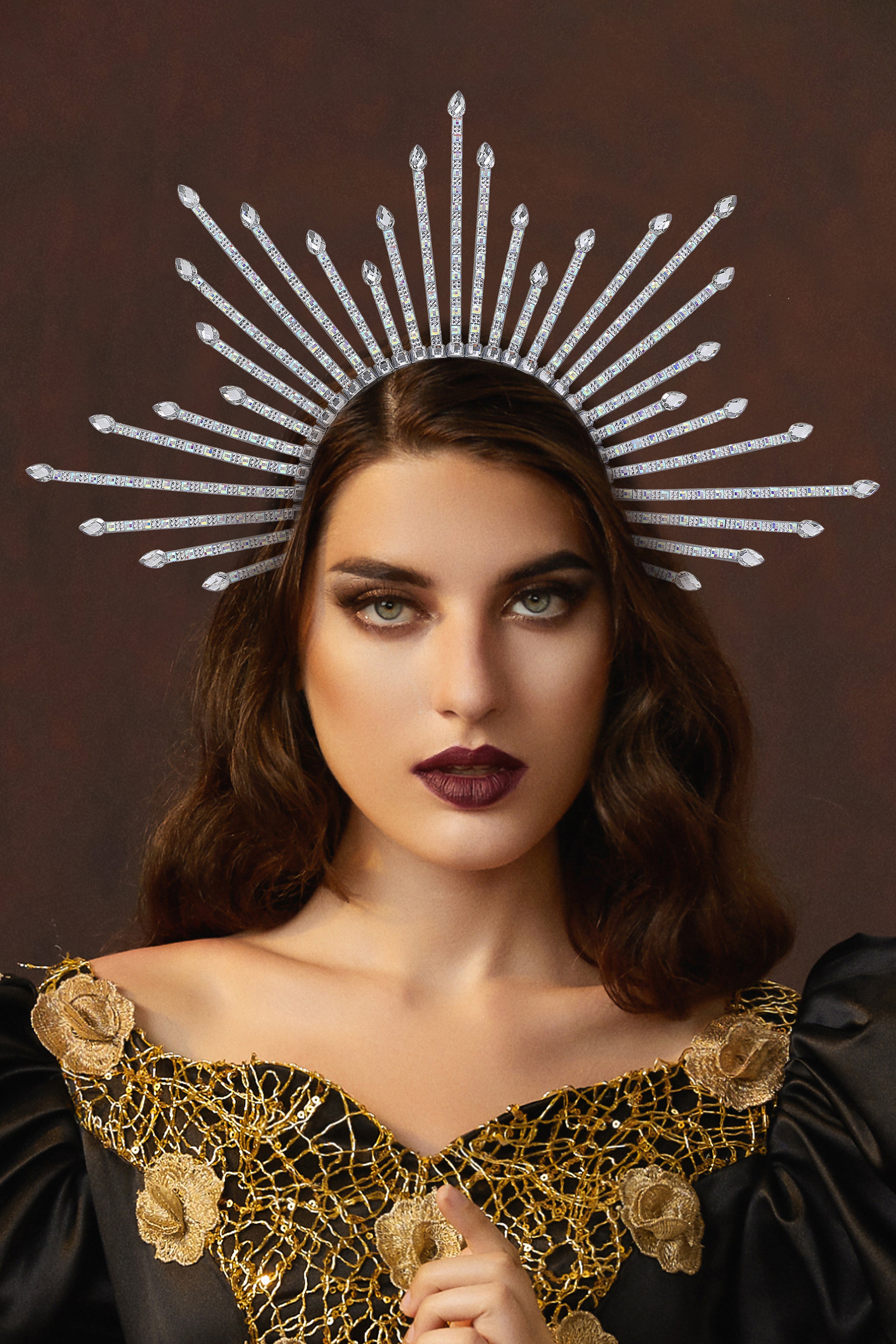 Shining Rhinestone Sunburst Spiked Halo Crown