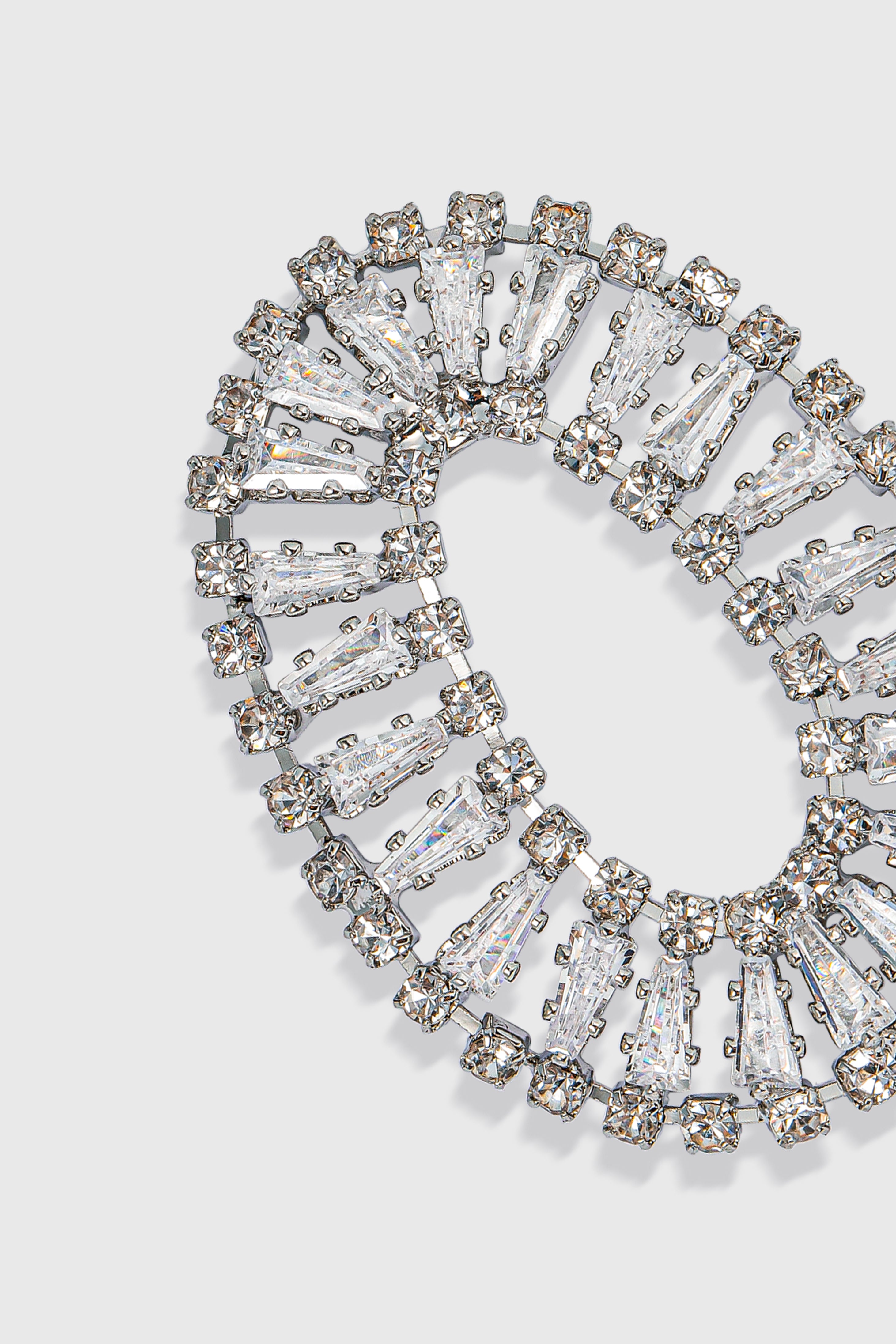This sumptuous piece of jewelry features a retro-elegant yet slightly modern style that complements the lavish garments, reminiscent of the roaring 1920s.