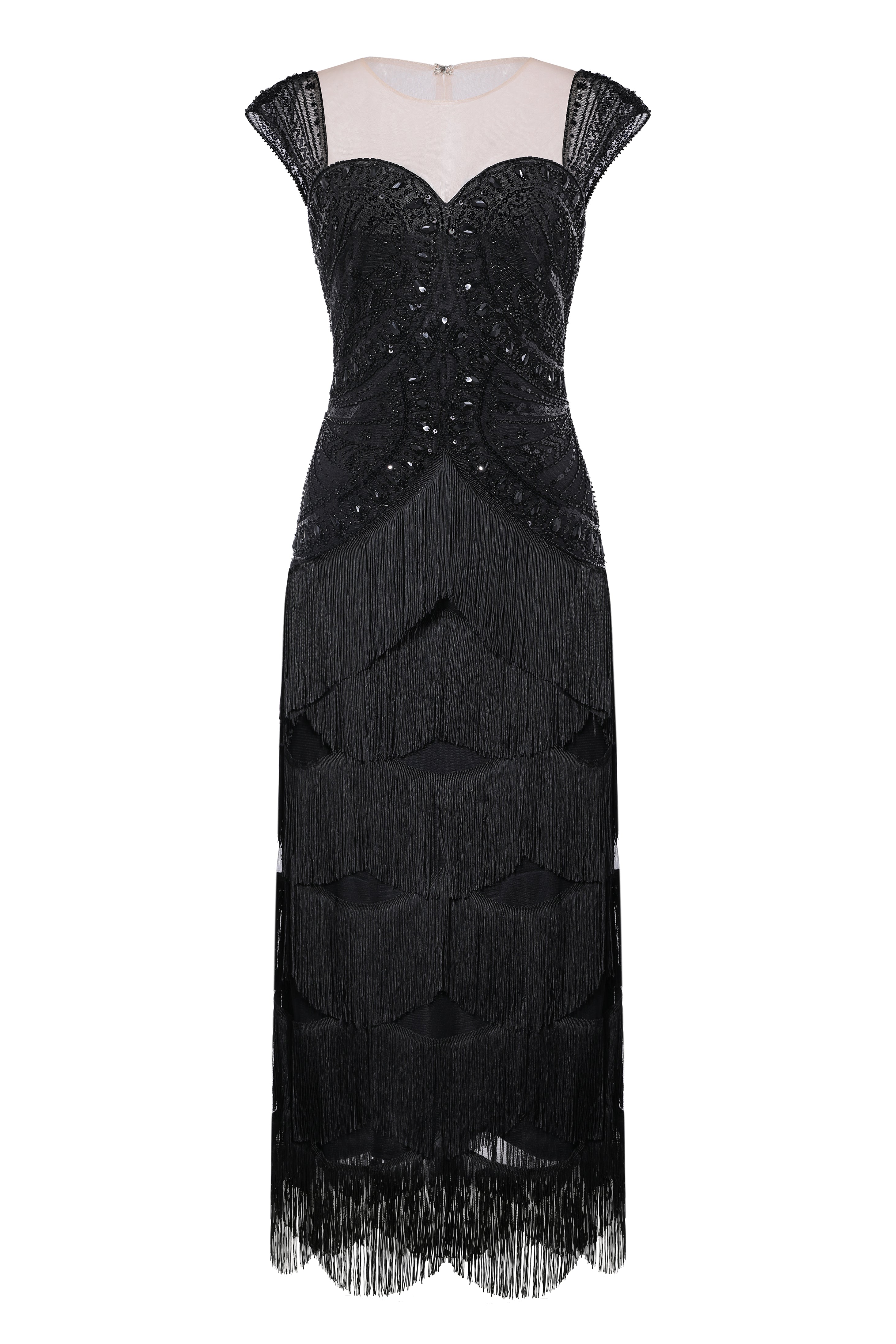 Sheer Scoop Neck Iridescent Sequin Dress