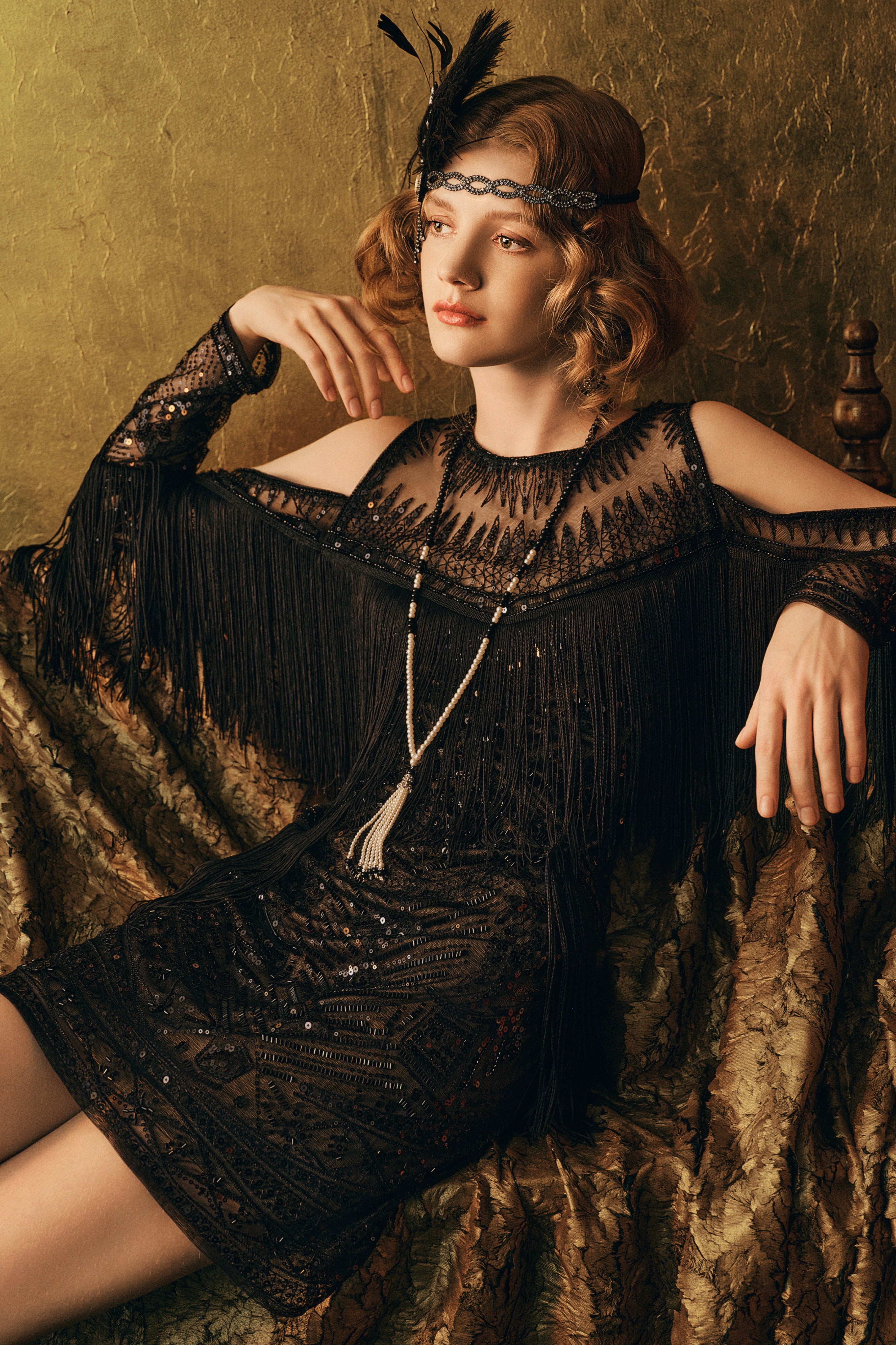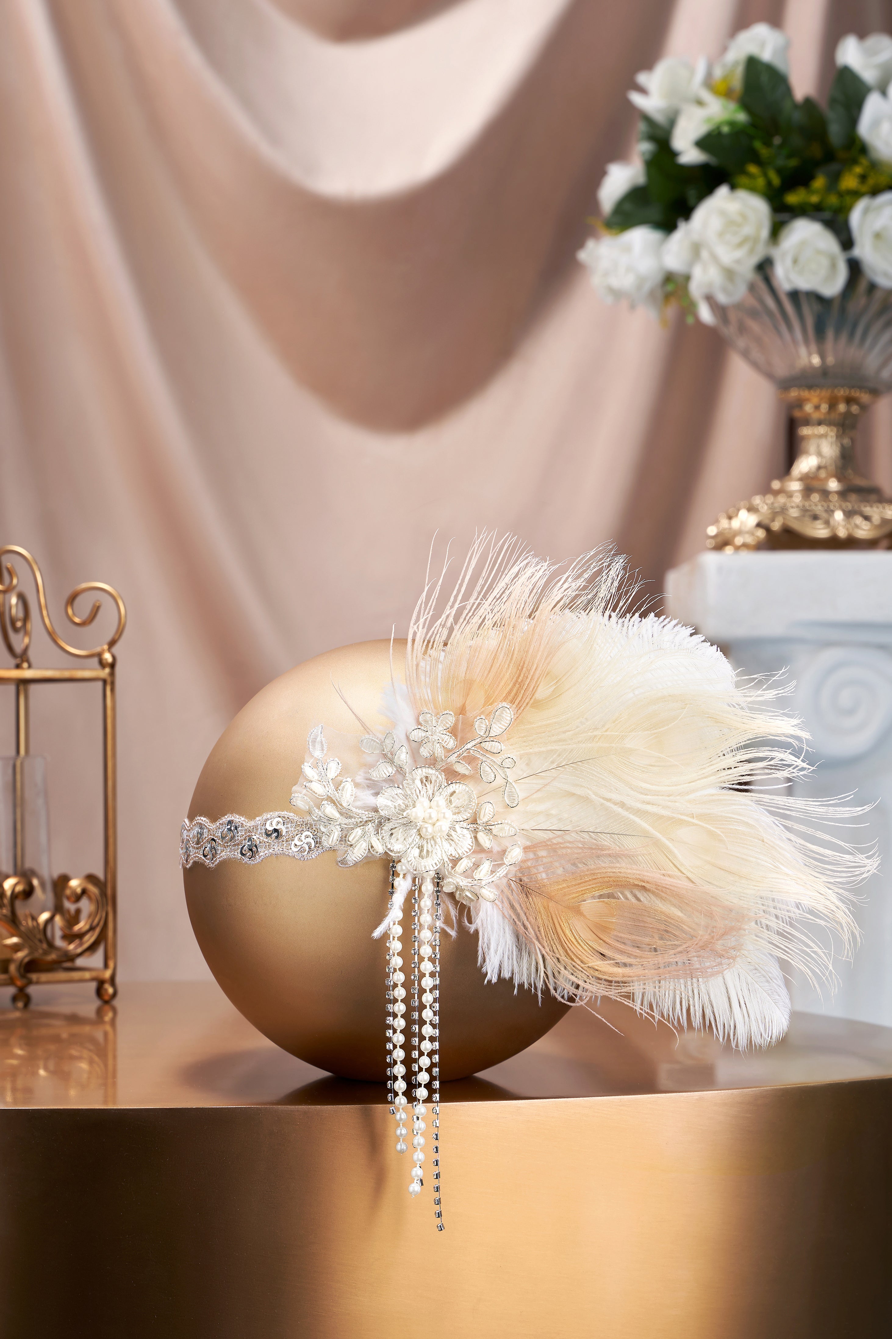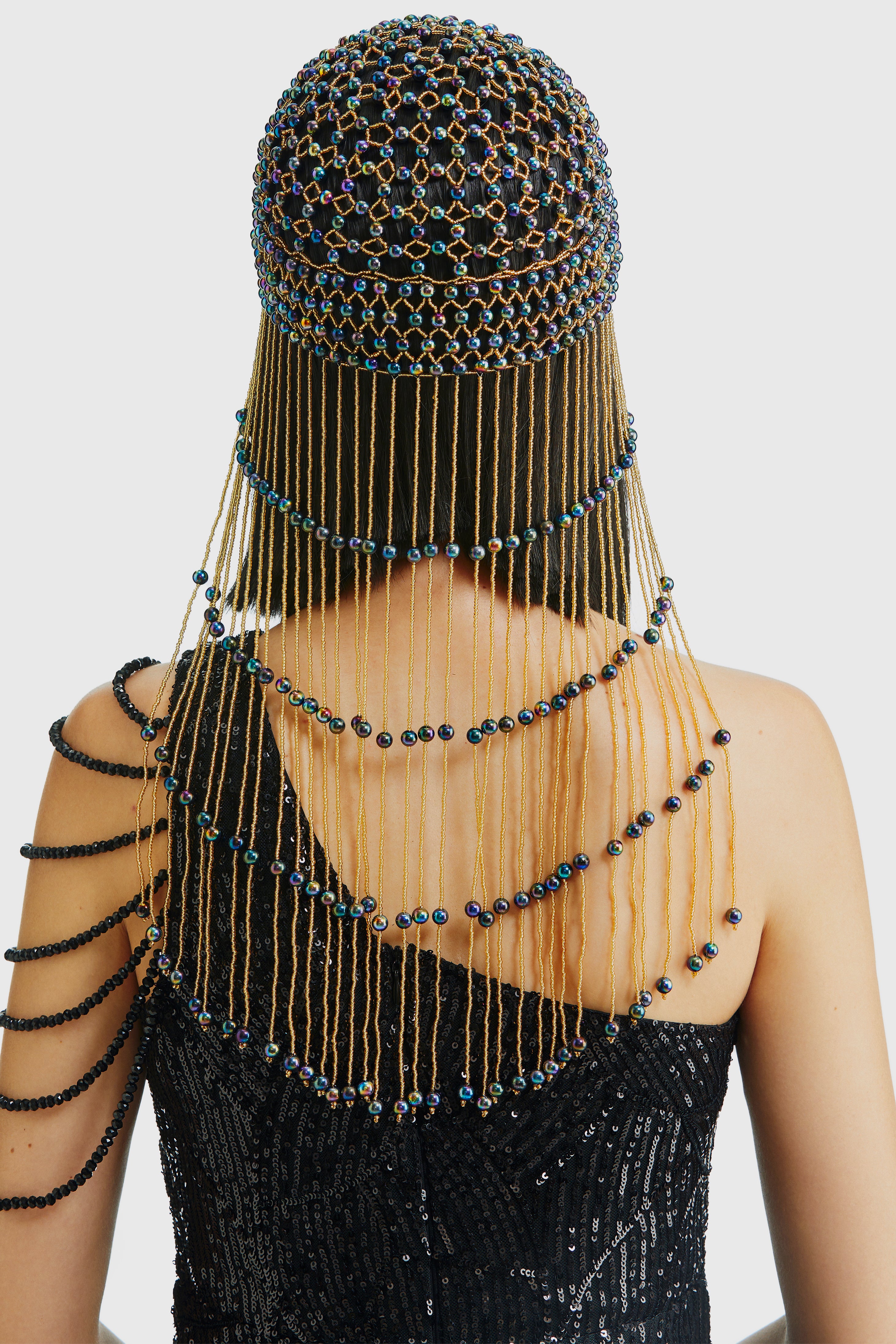 Fully Beaded Pearl Flapper Tassel Cap