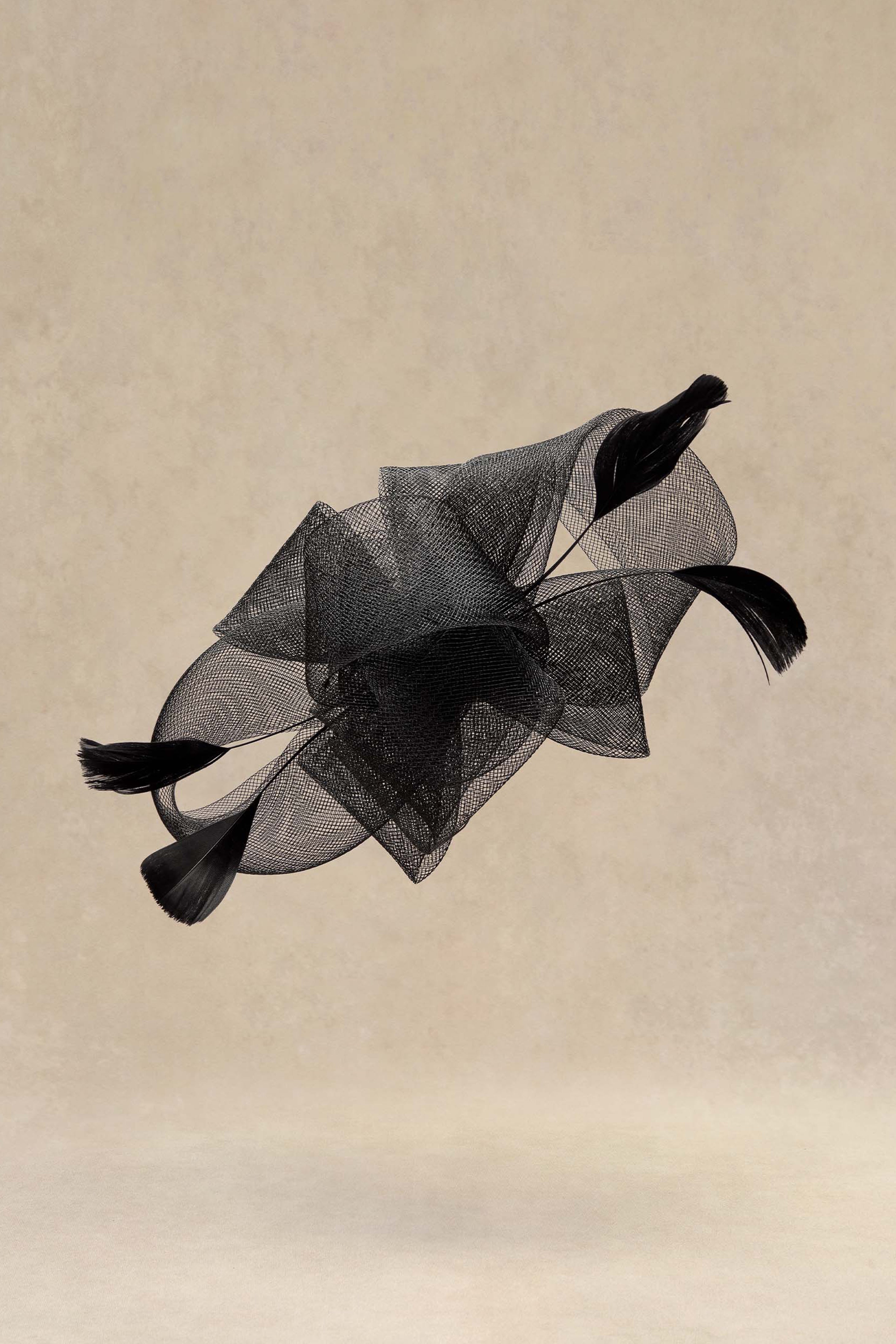 Elevate your style with this intricately designed fascinator, featuring a beautifully structured bow and elegant feathers for a vintage-inspired aesthetic.