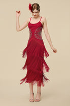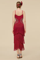 Art Deco Fan Beaded Fringe Evening Gown