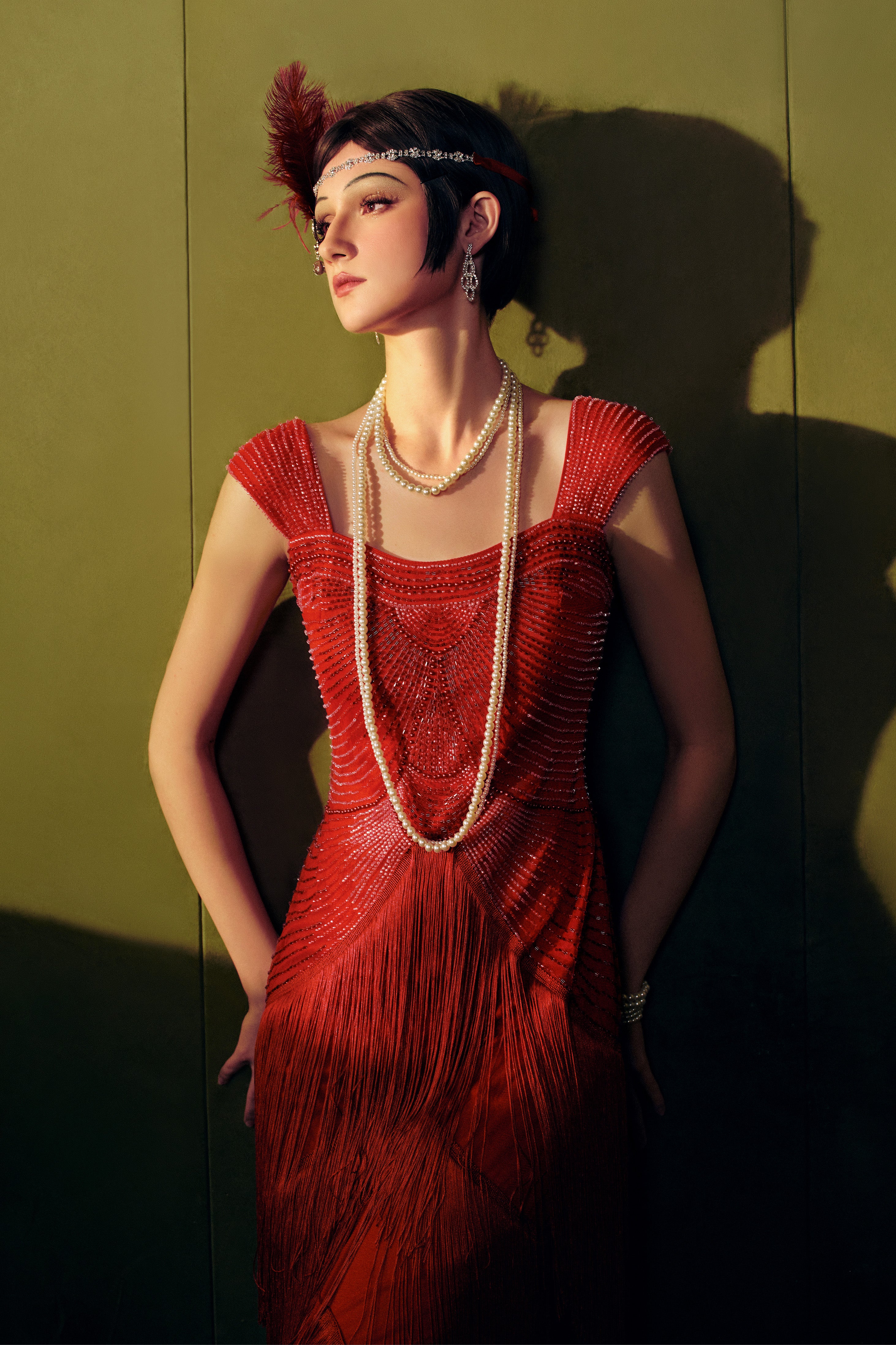 Intricately embellished with shimmering gradient beads, the gown captures the light beautifully, adding an opulent sparkle to your every move. The elegant fringe detailing at the hemline adds a playful yet sophisticated touch, making each step a statement. The luxurious fabric provides comfort and ease, allowing you to dance and mingle with confidence.