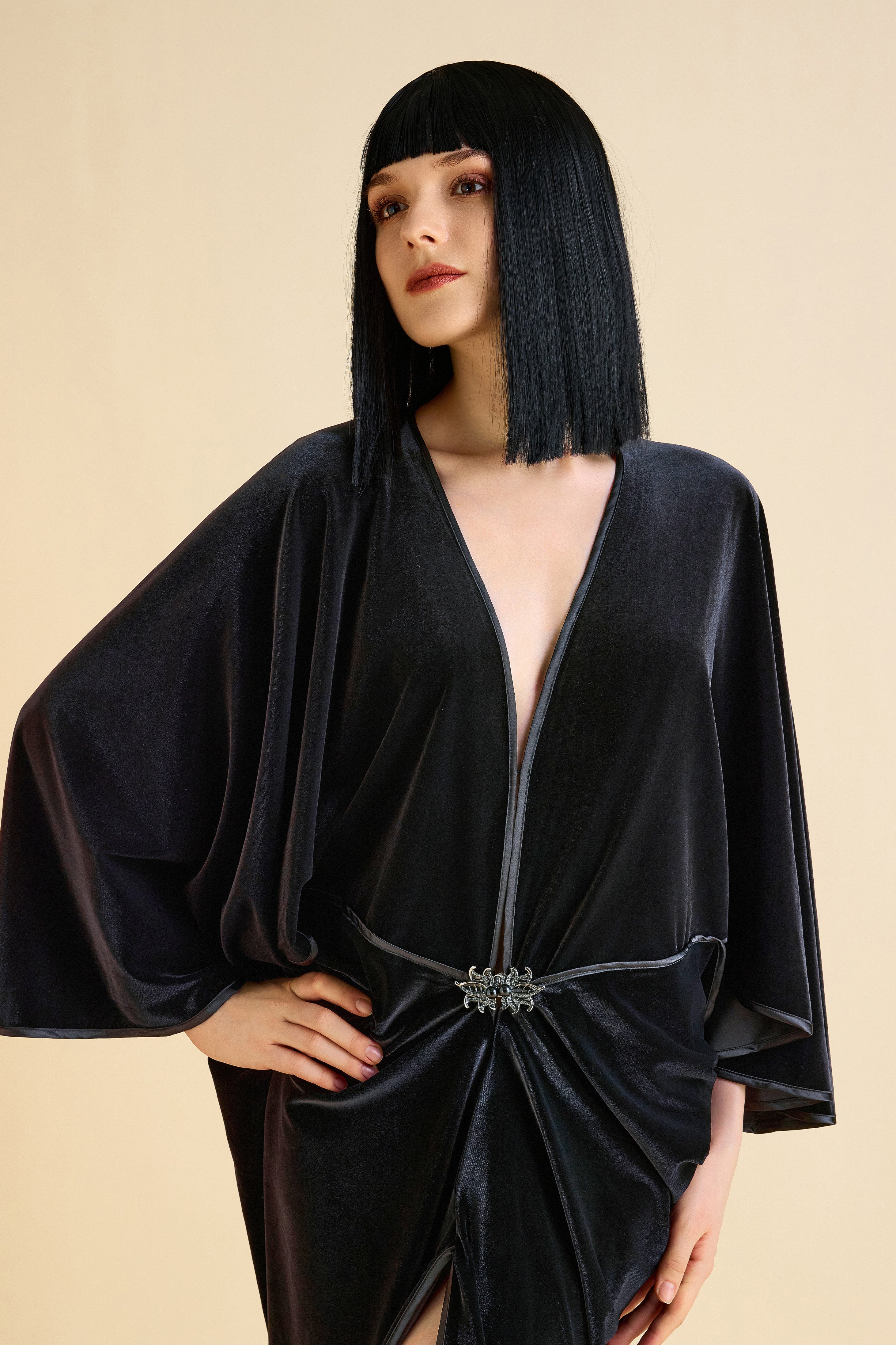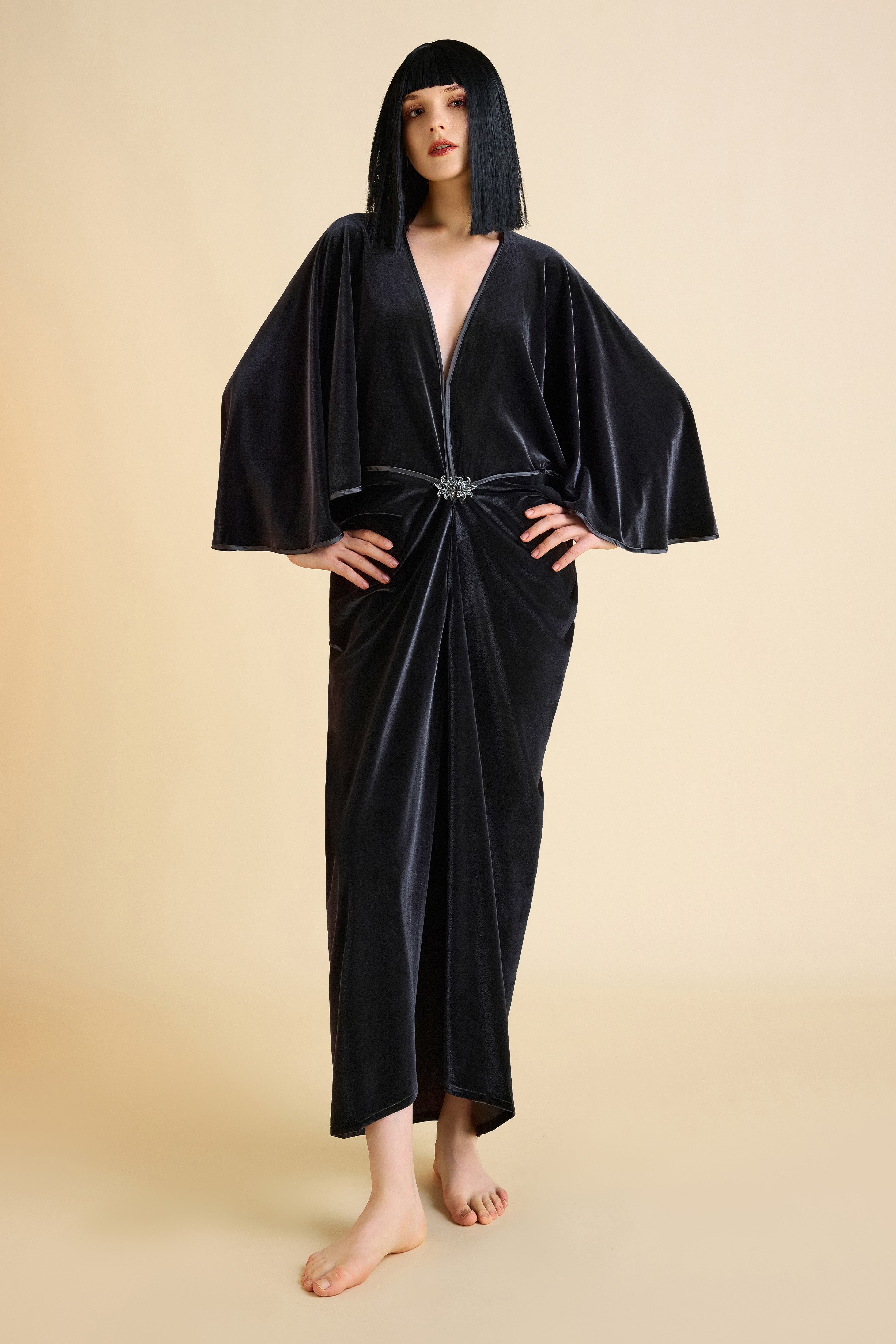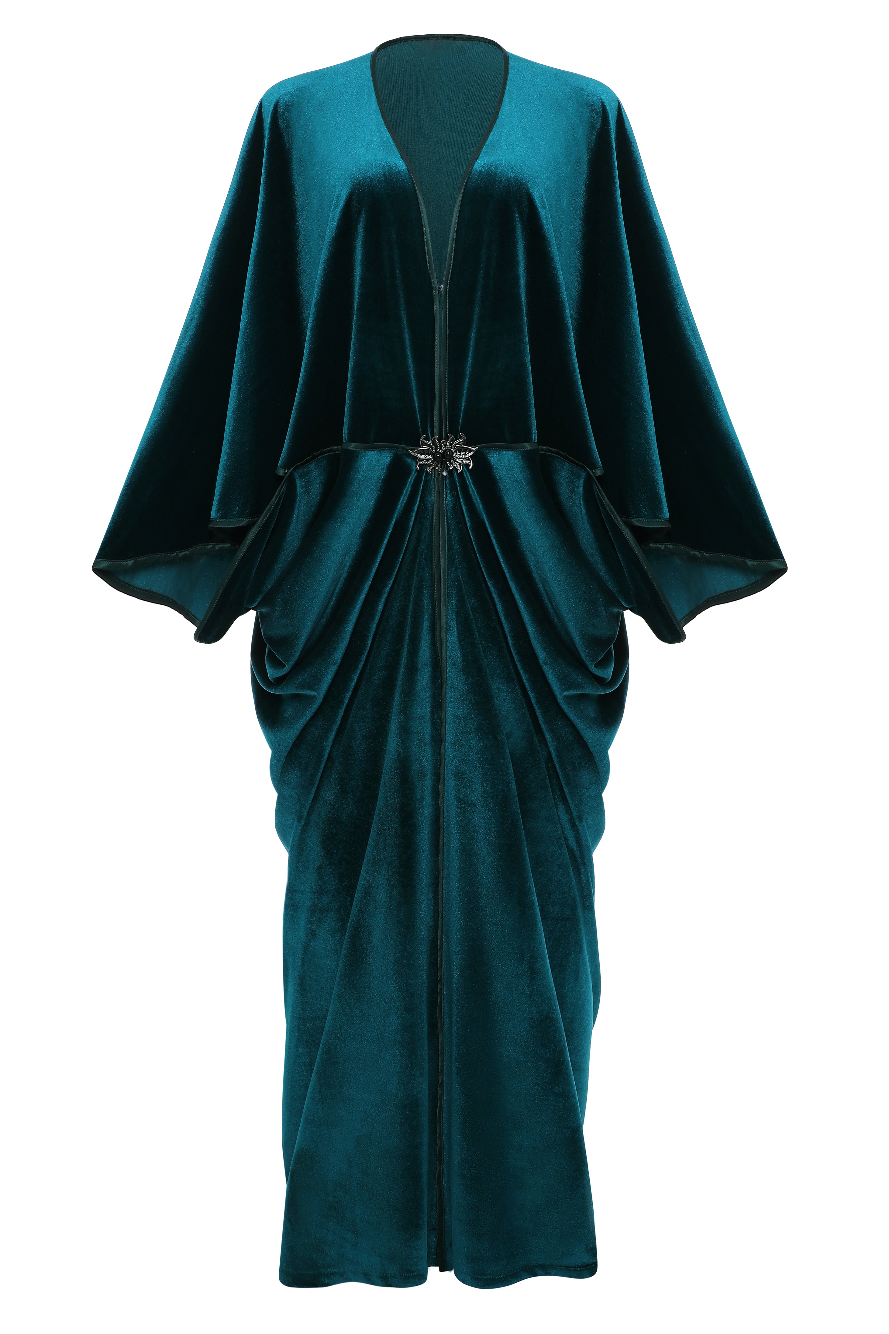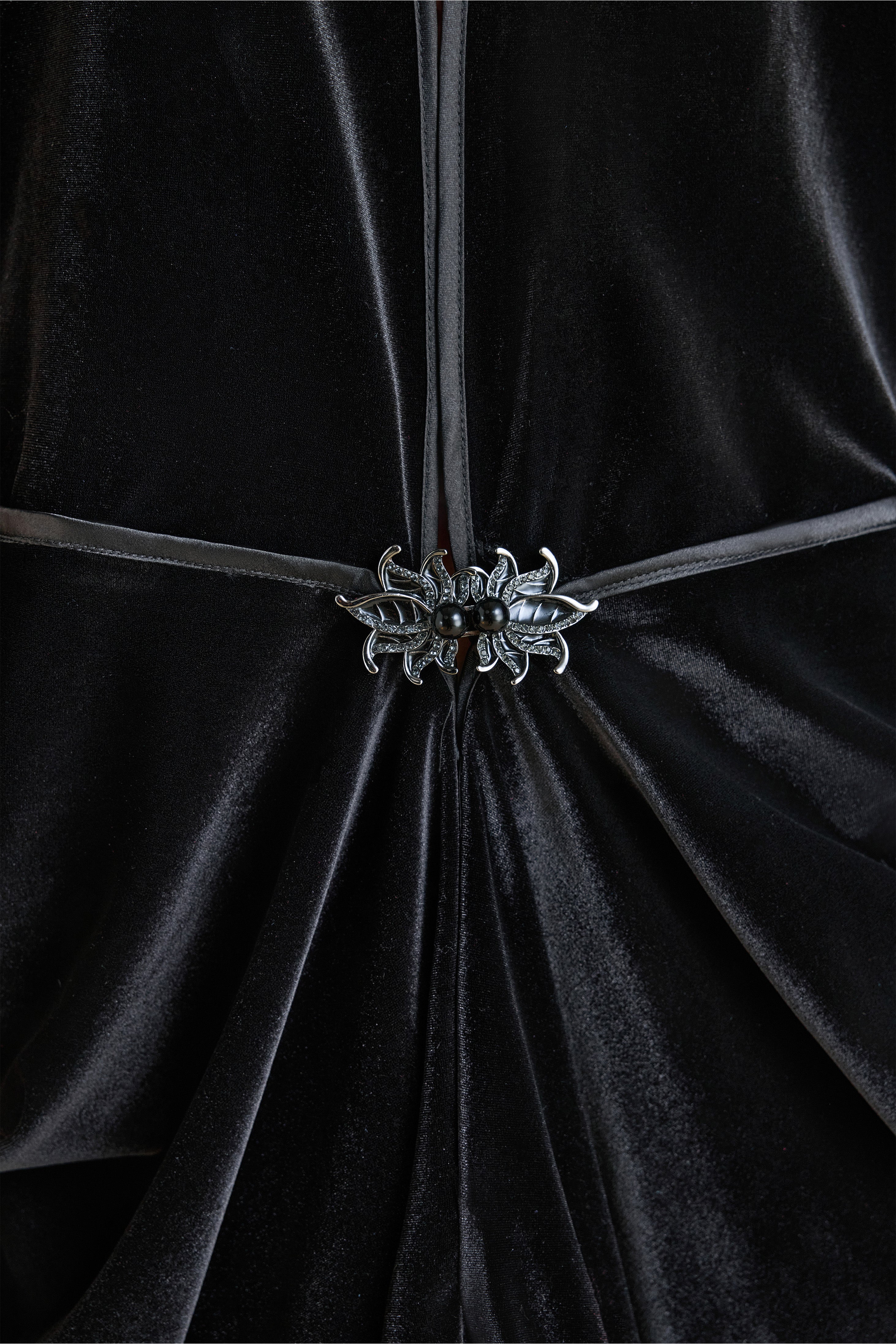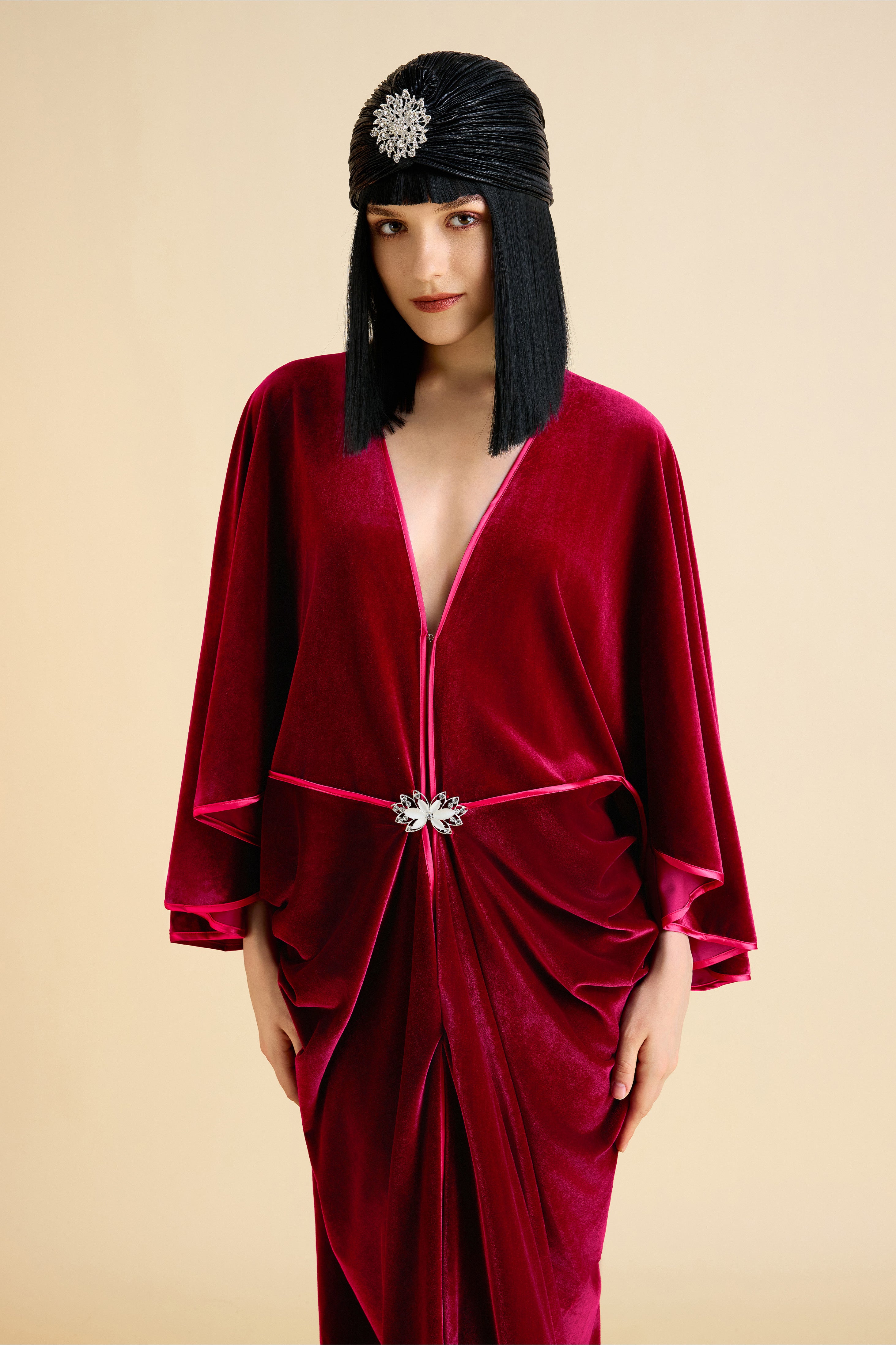 Vintage Velvet Pleated Waist Belt Evening Gown