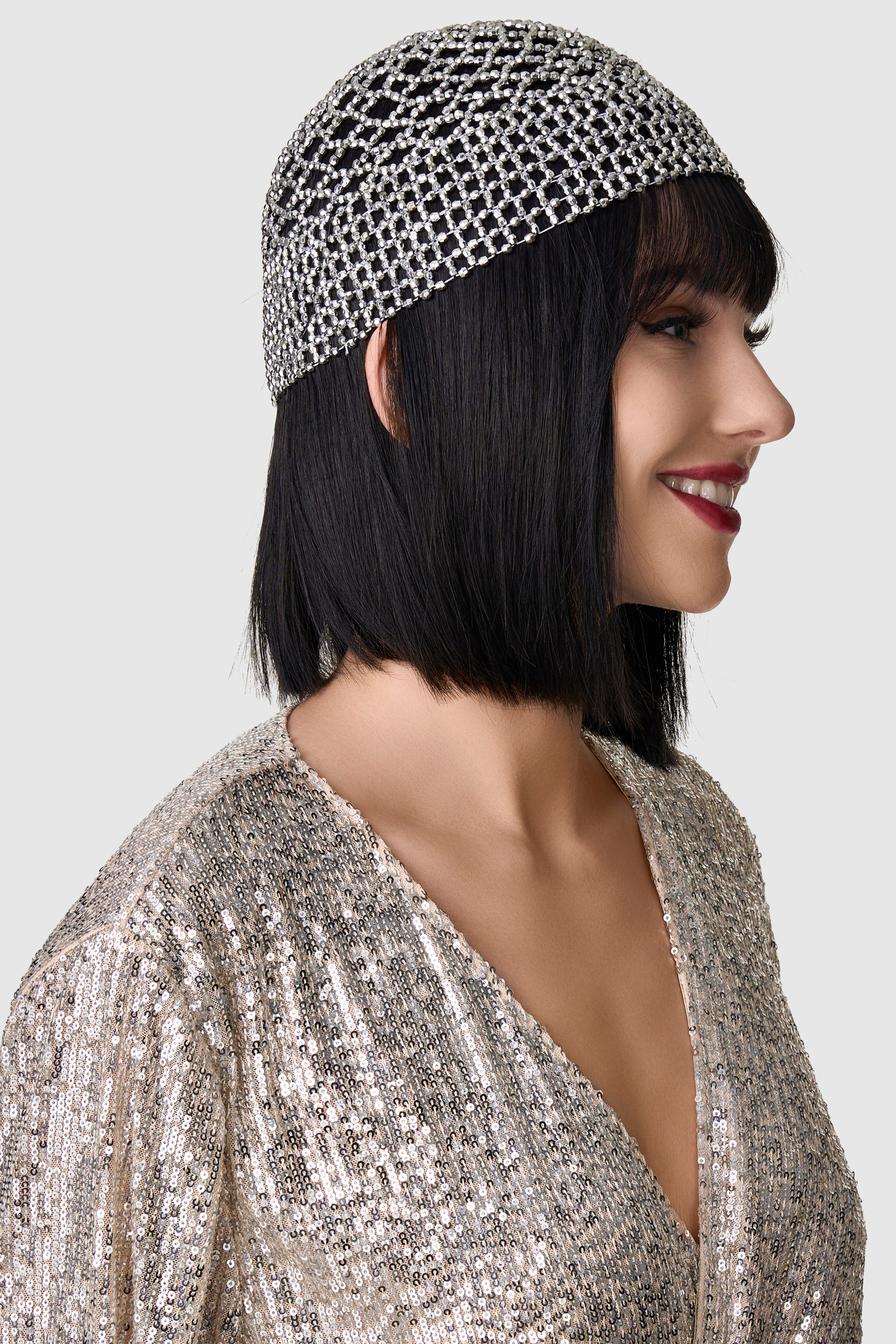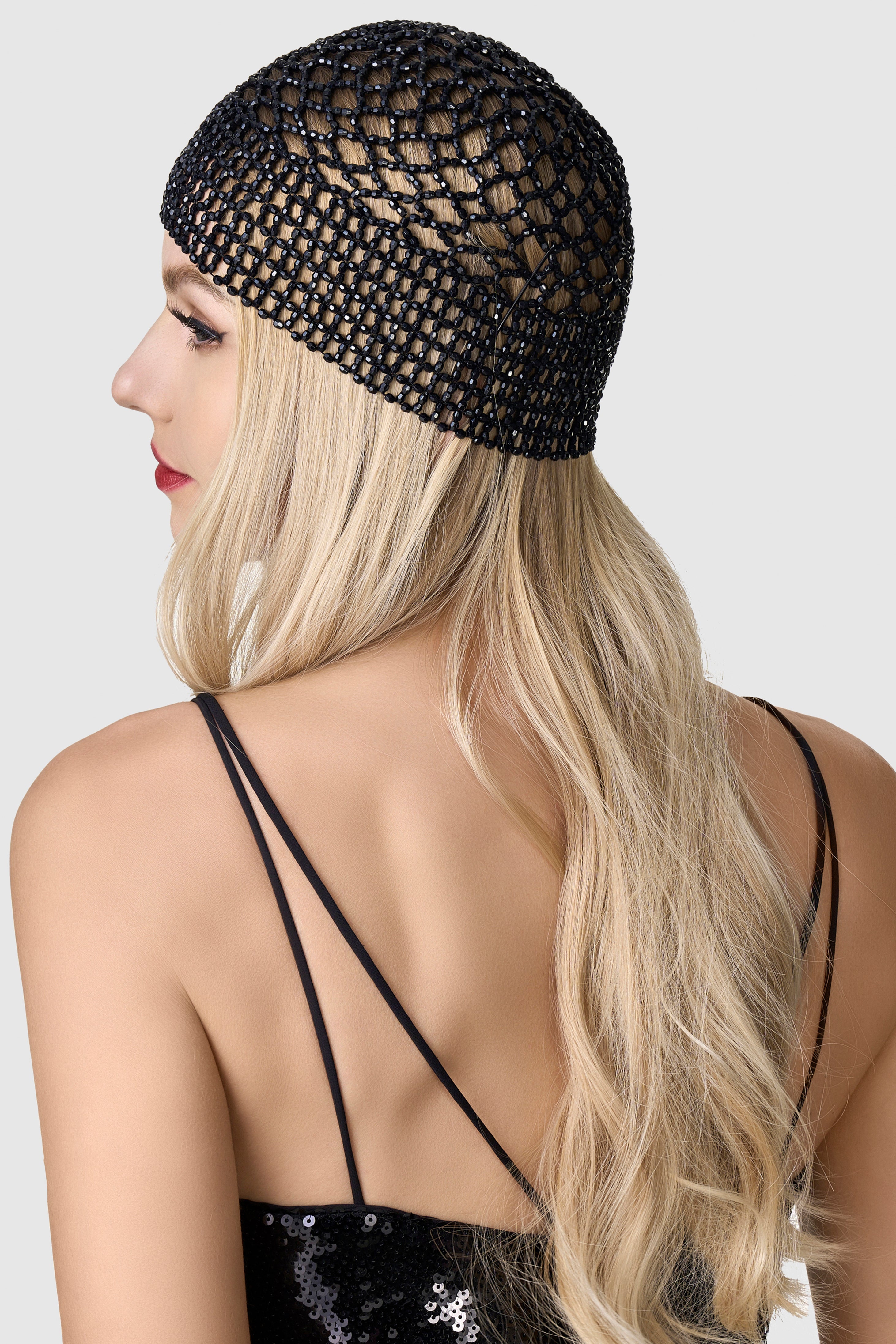 Step into 1920s glamour with this dazzling beaded cap, a statement piece that adds vintage sparkle to any flapper look.