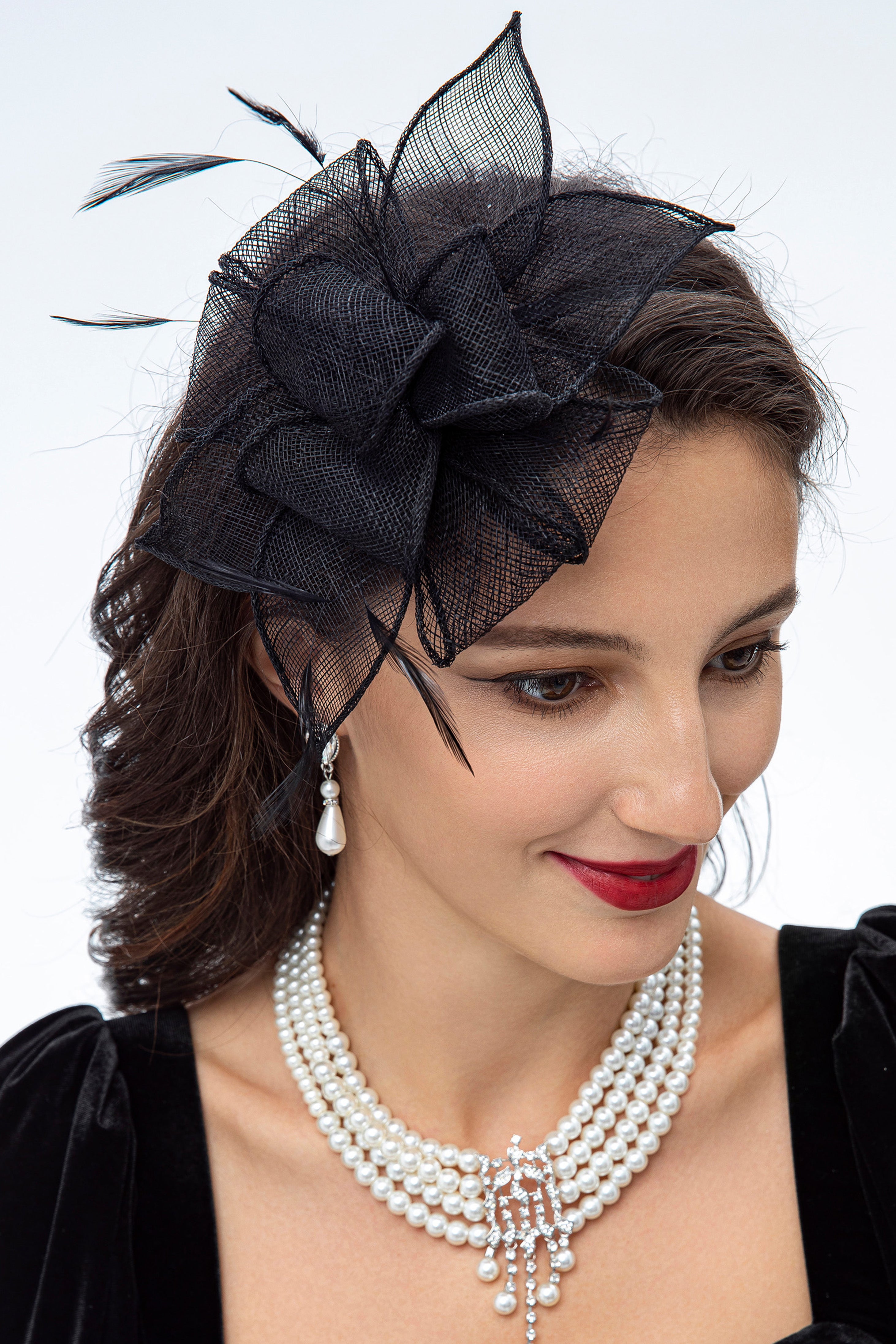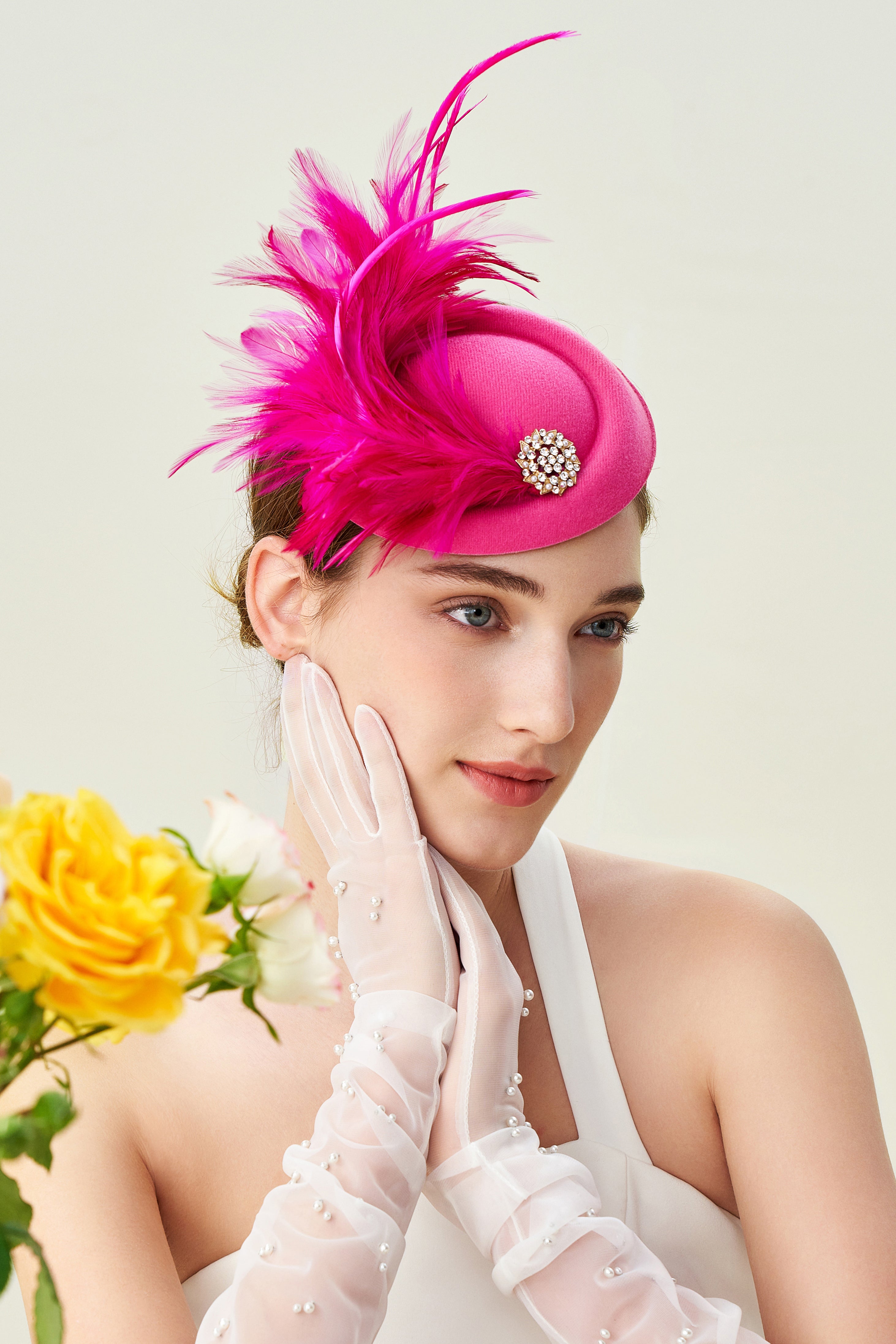 Elegant Rhinestones Feather Mesh Veil Fascinator