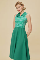 Polka Dot Bodice Sleeveless Retro Swing Dress