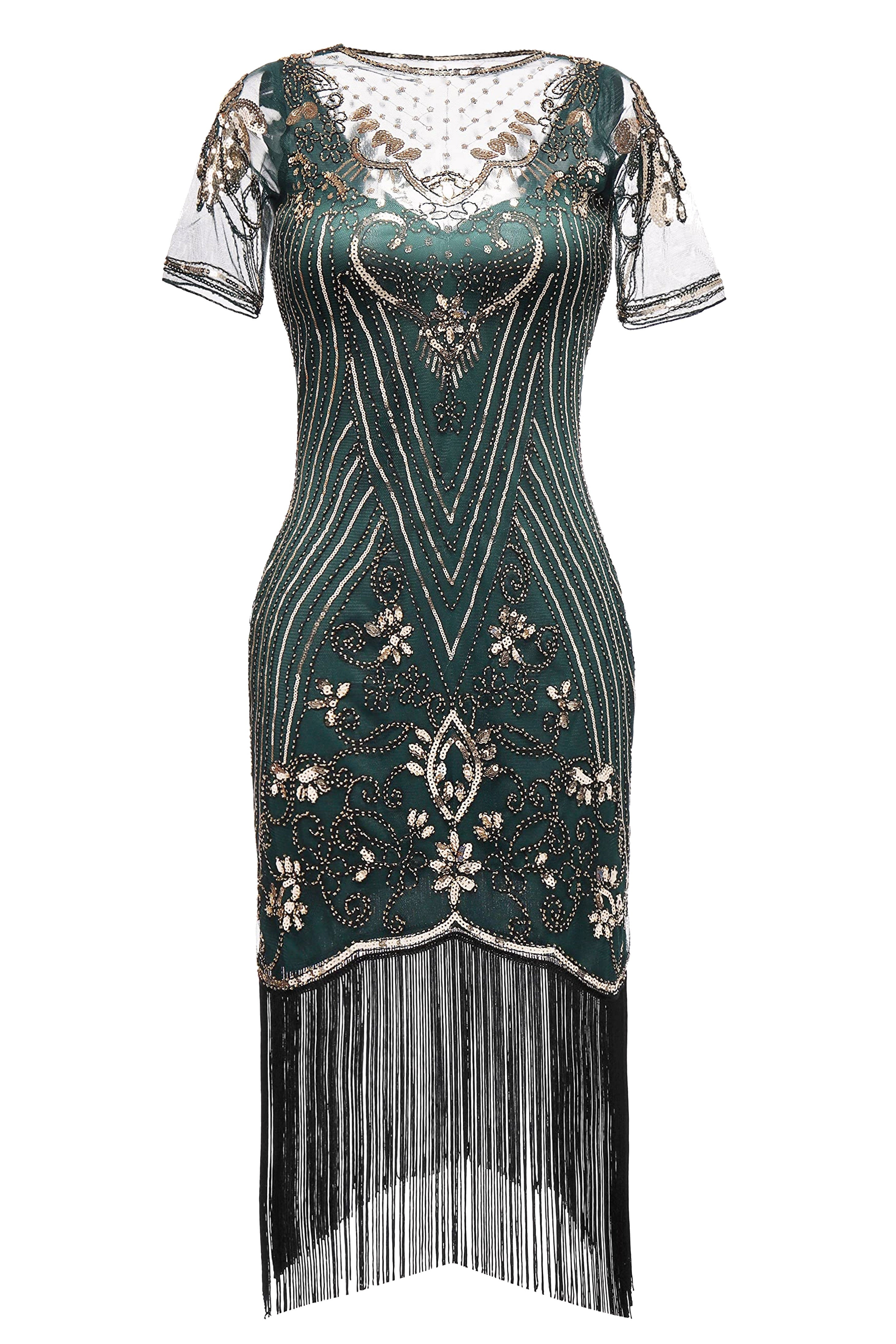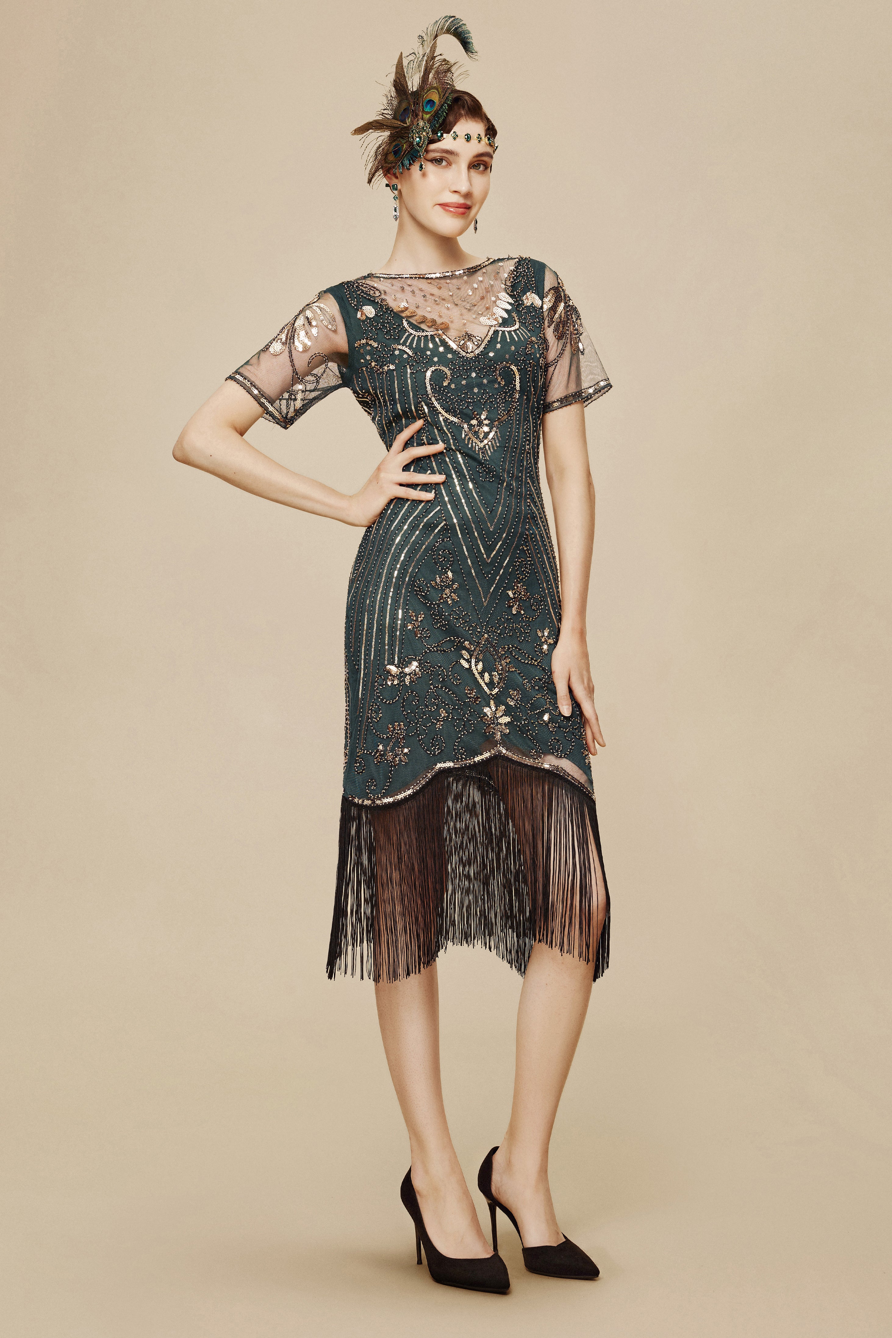 This fringed dress is classic vintage look for a modern woman. The eye catching design features art deco print and unique vintage style which bring you back to the roaring twenties.