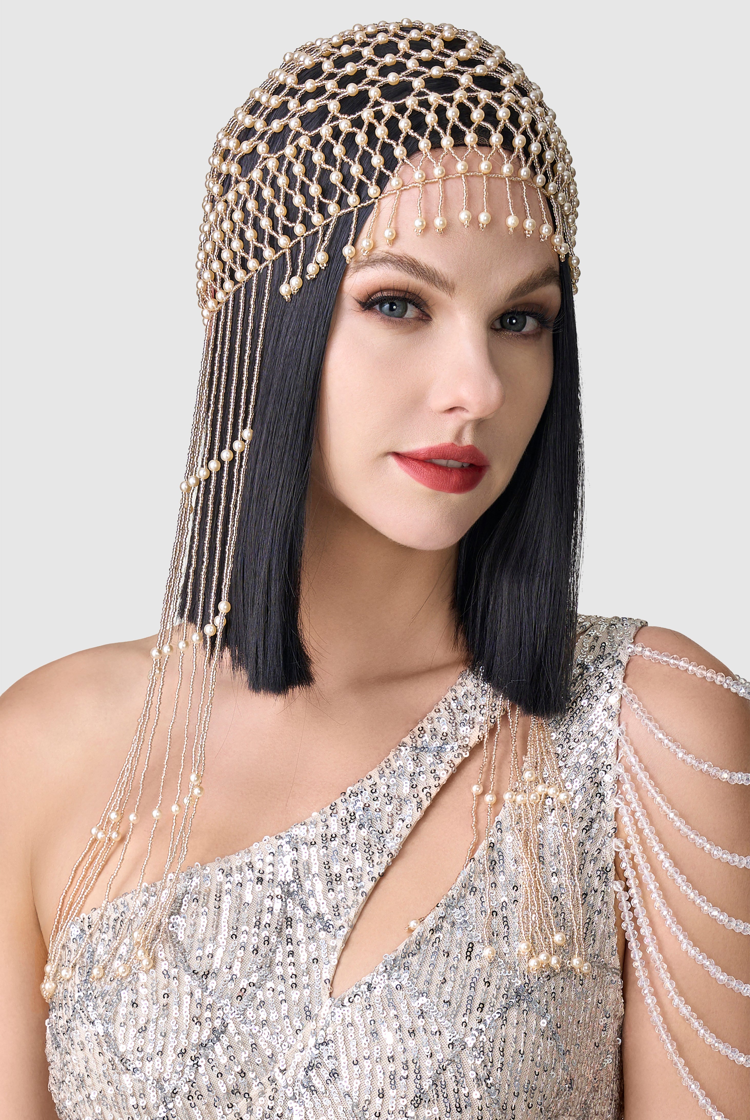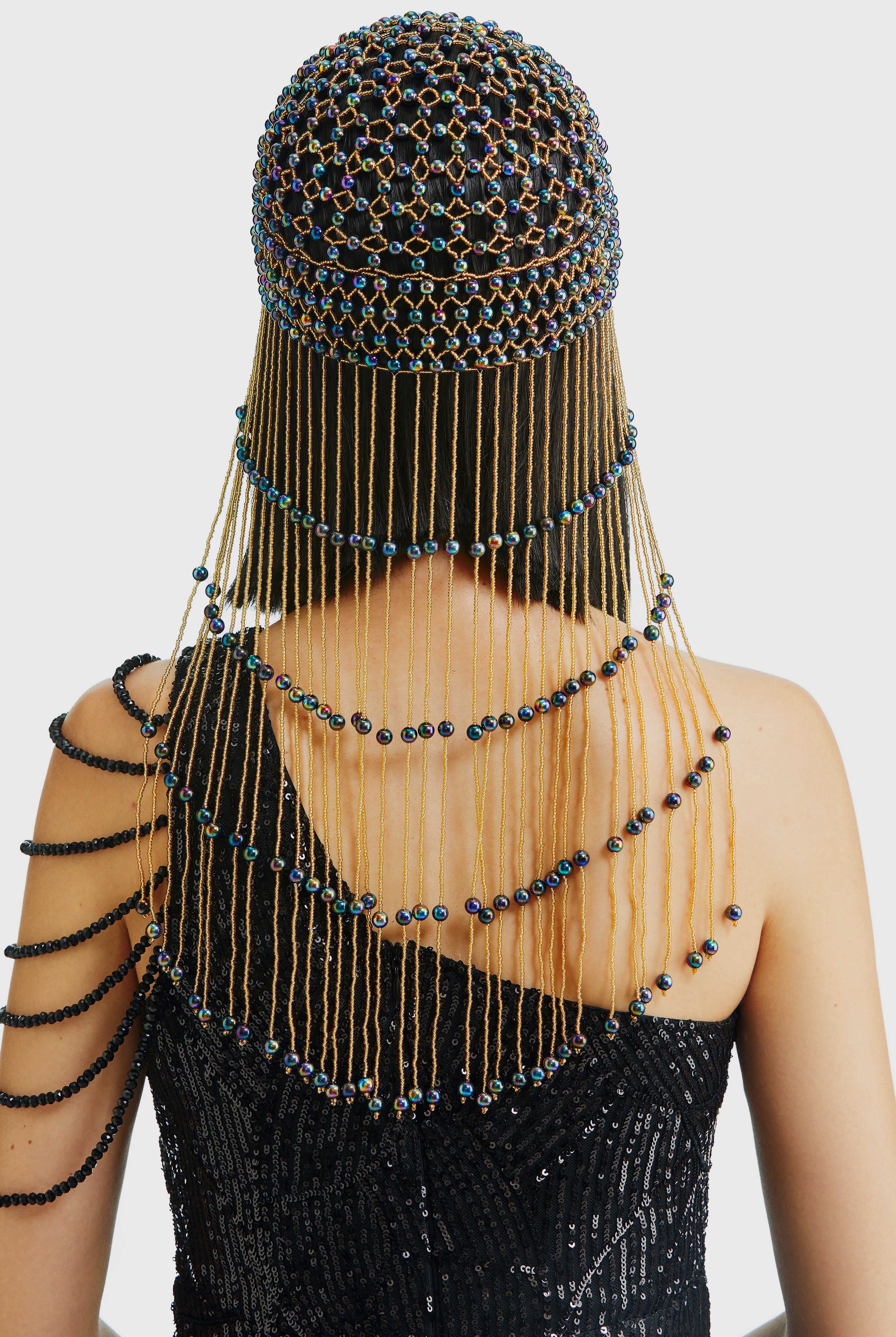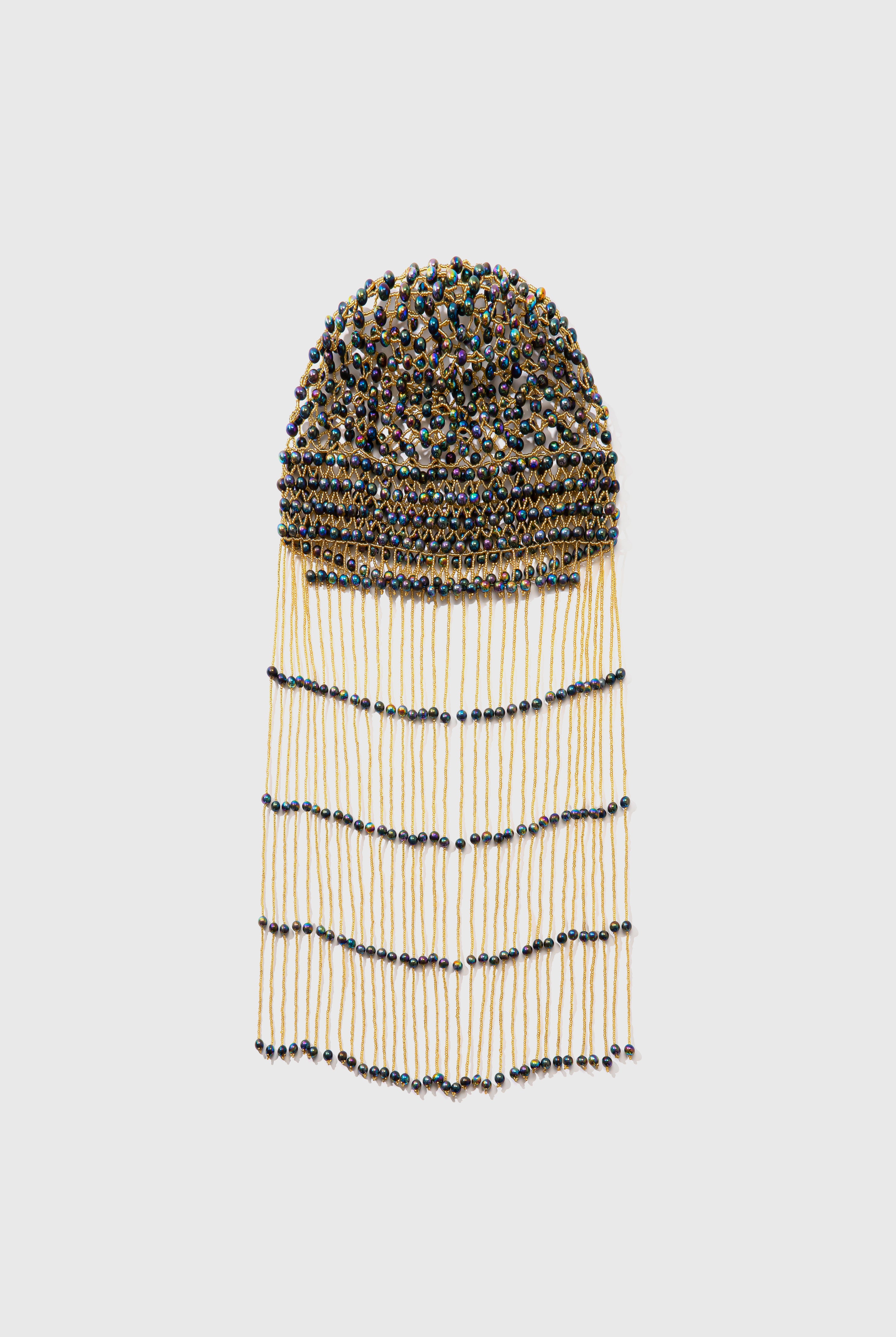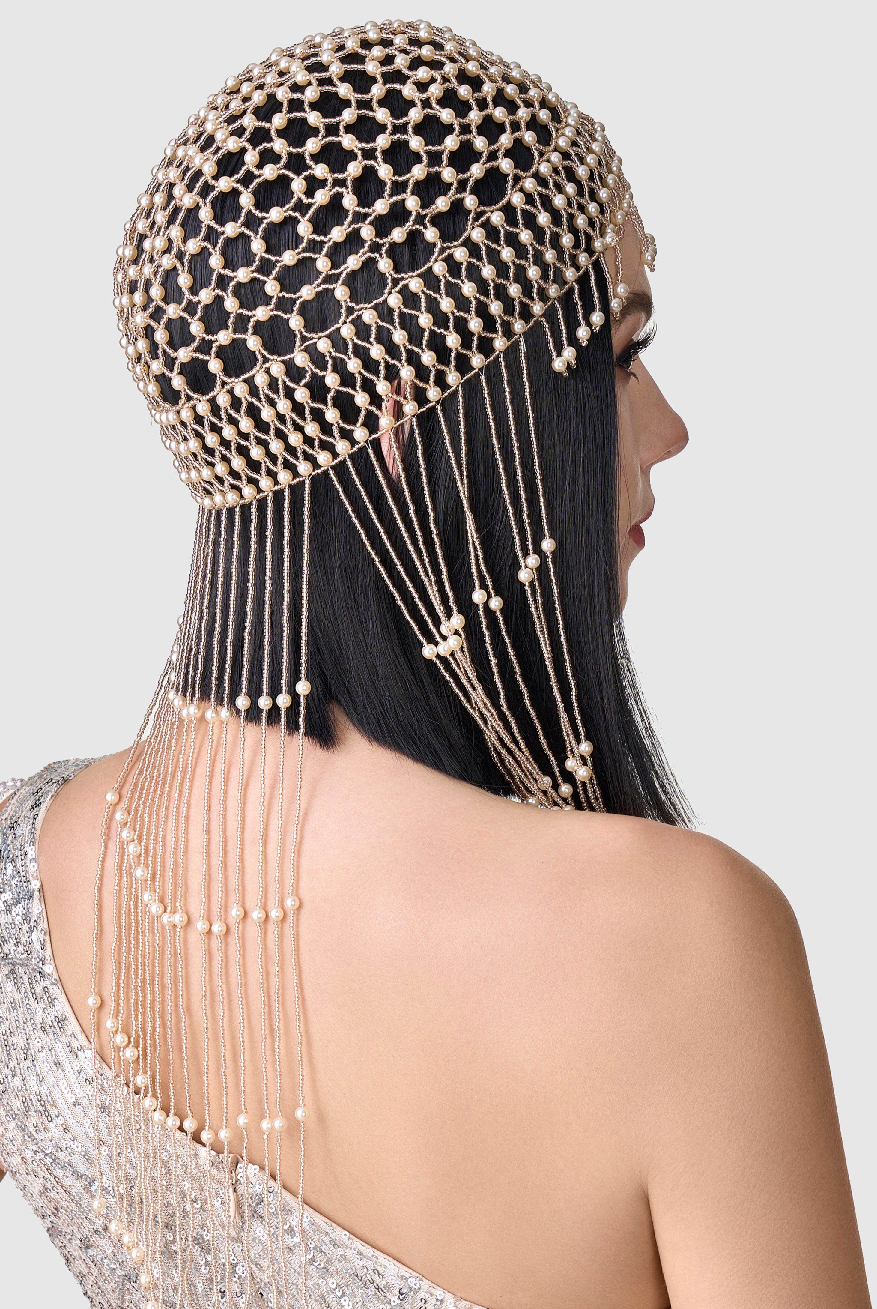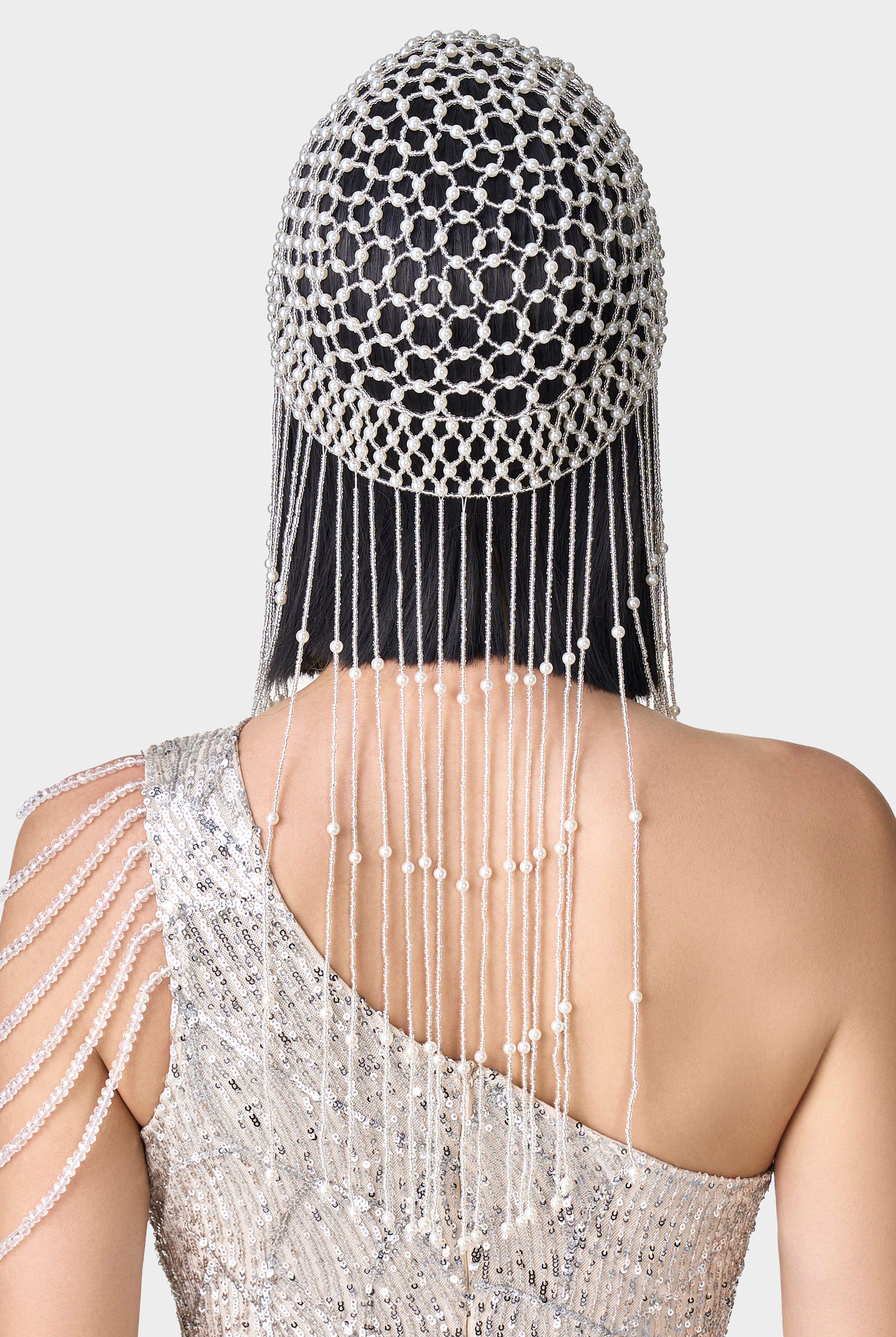 Fully Beaded Pearl Flapper Tassel Cap