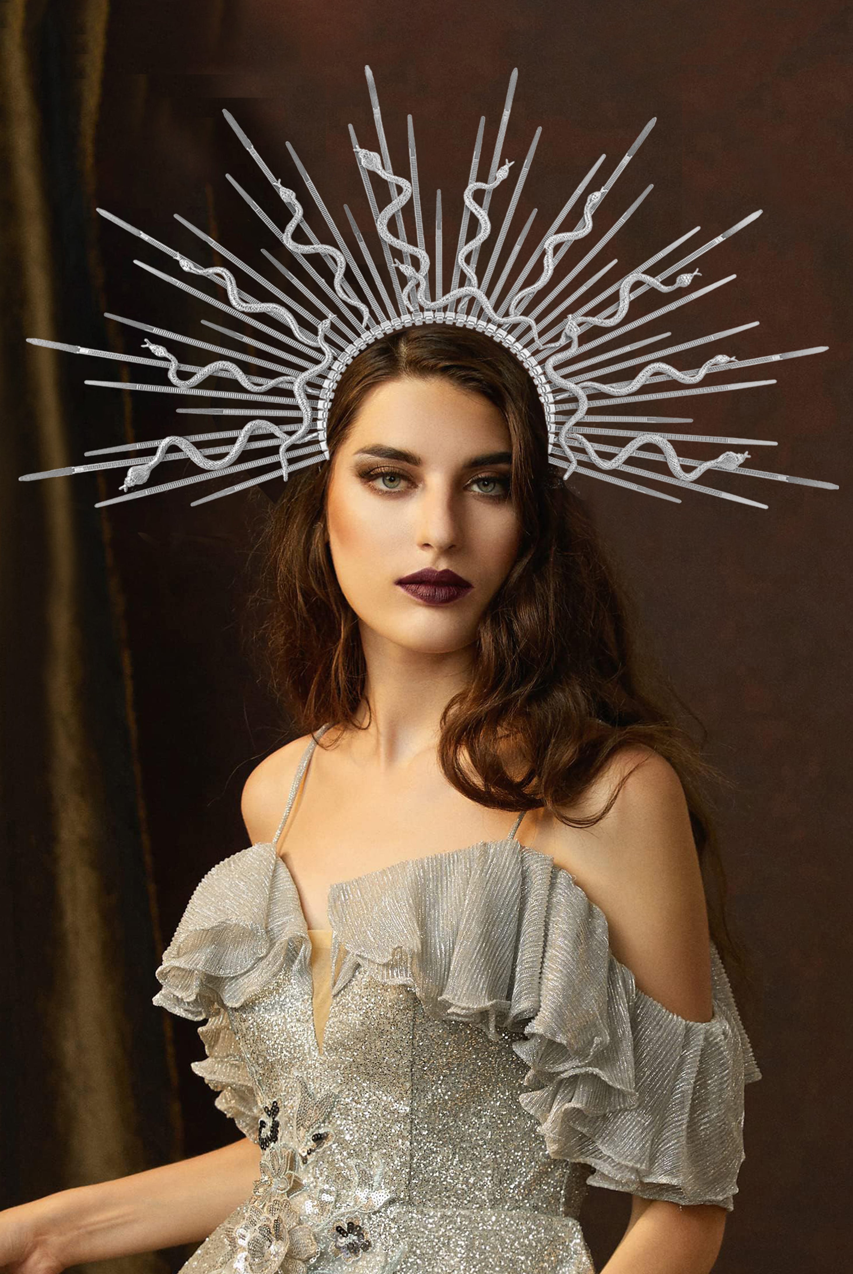 Glittering Sheer-Sleeve Sequined Evening Gown