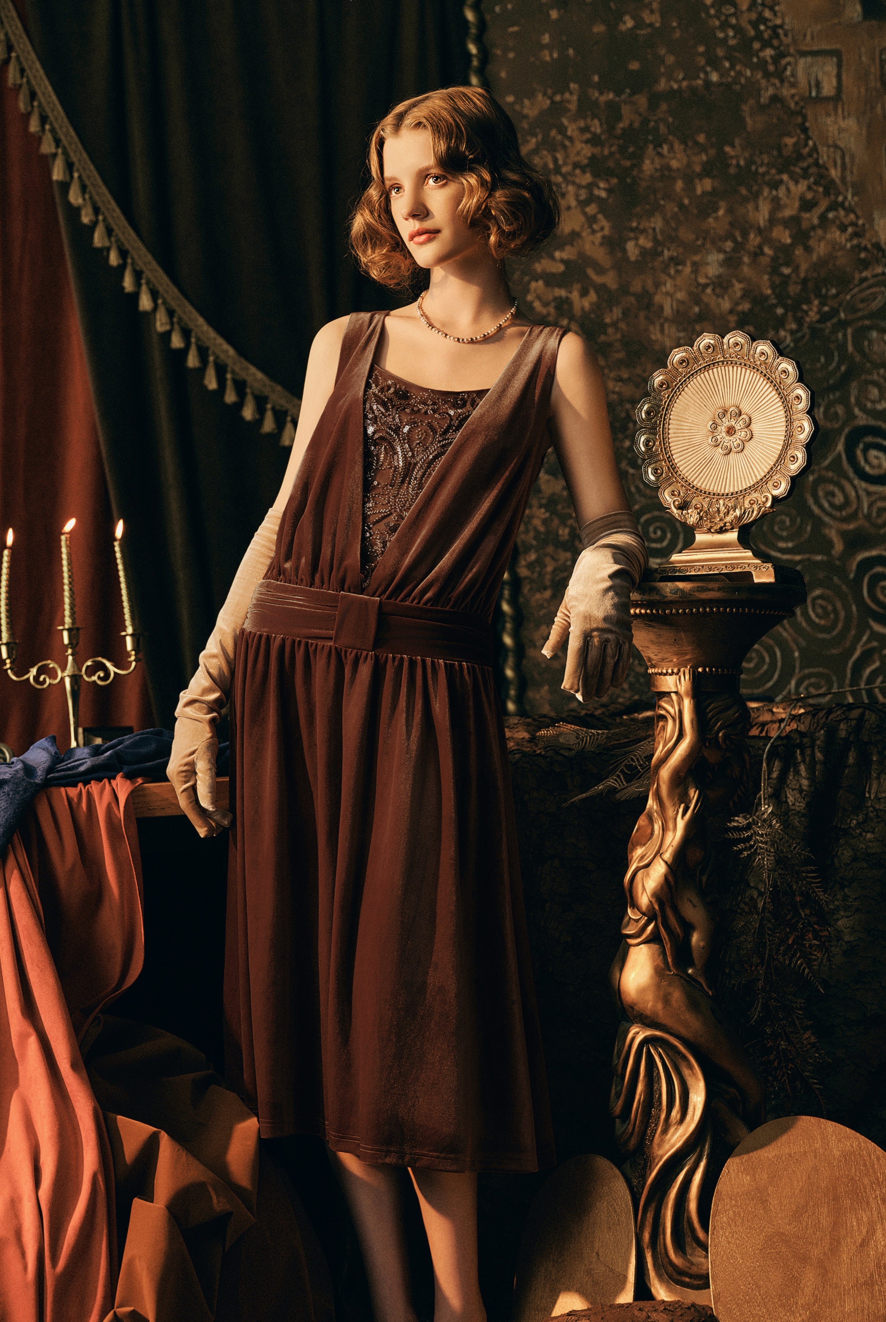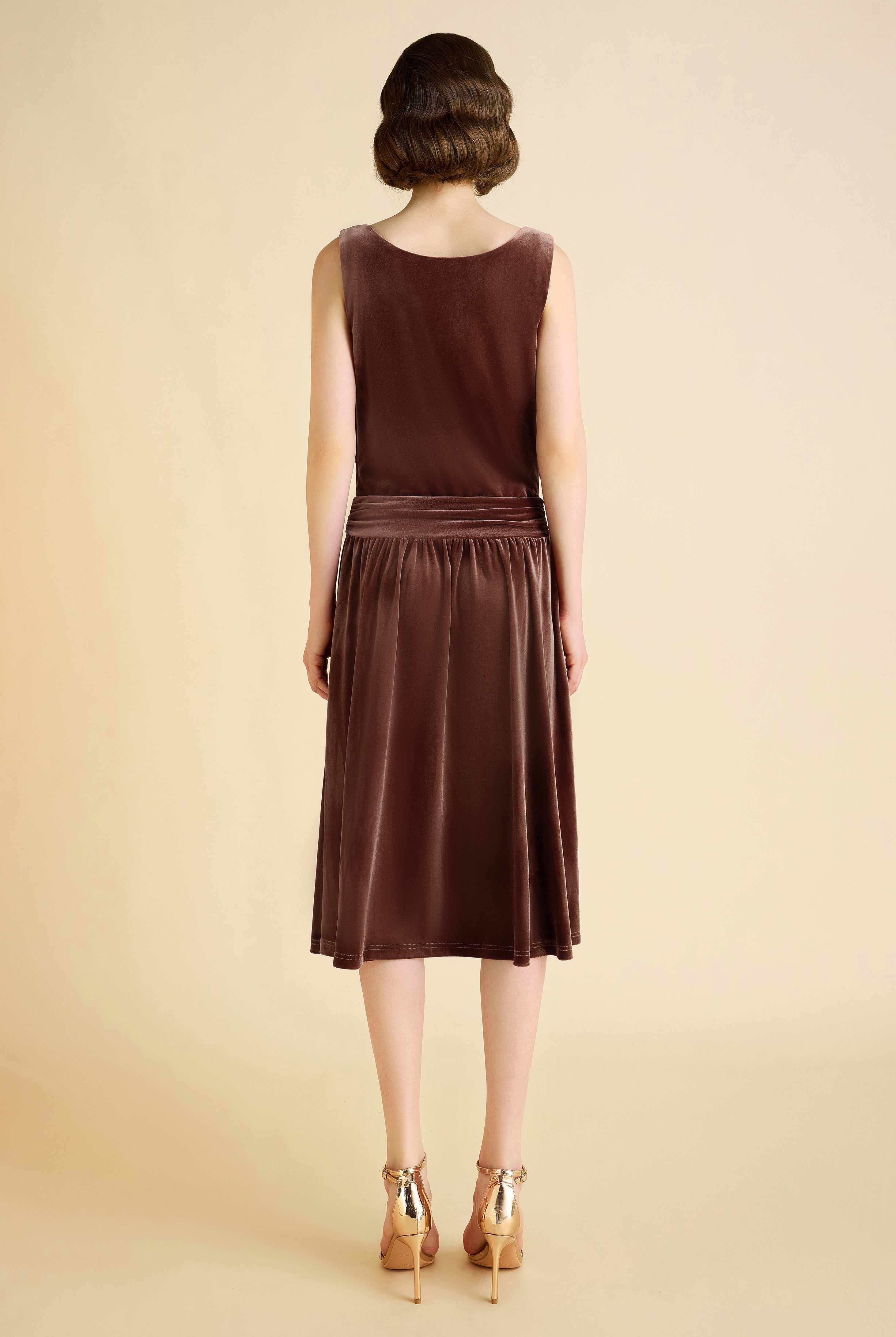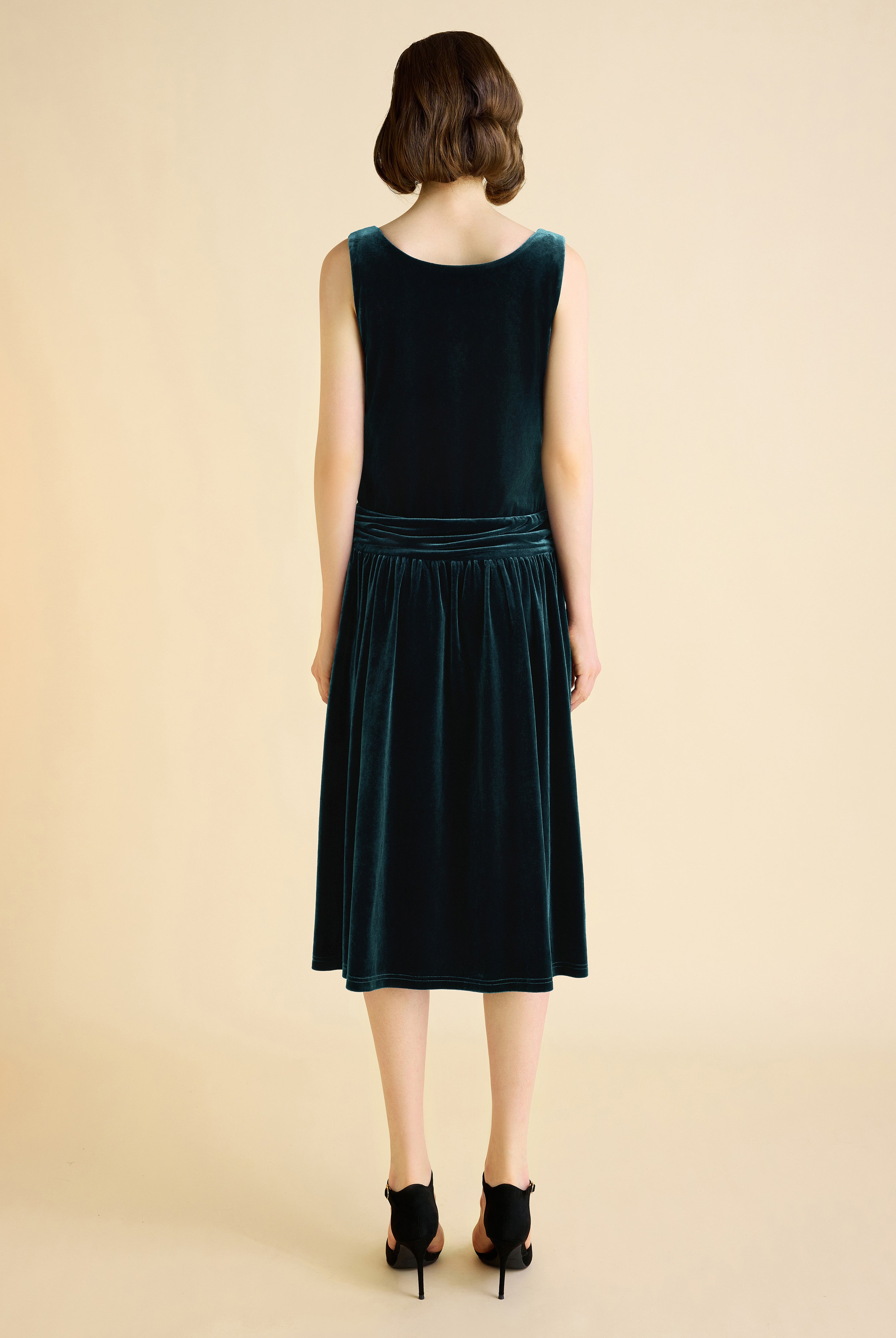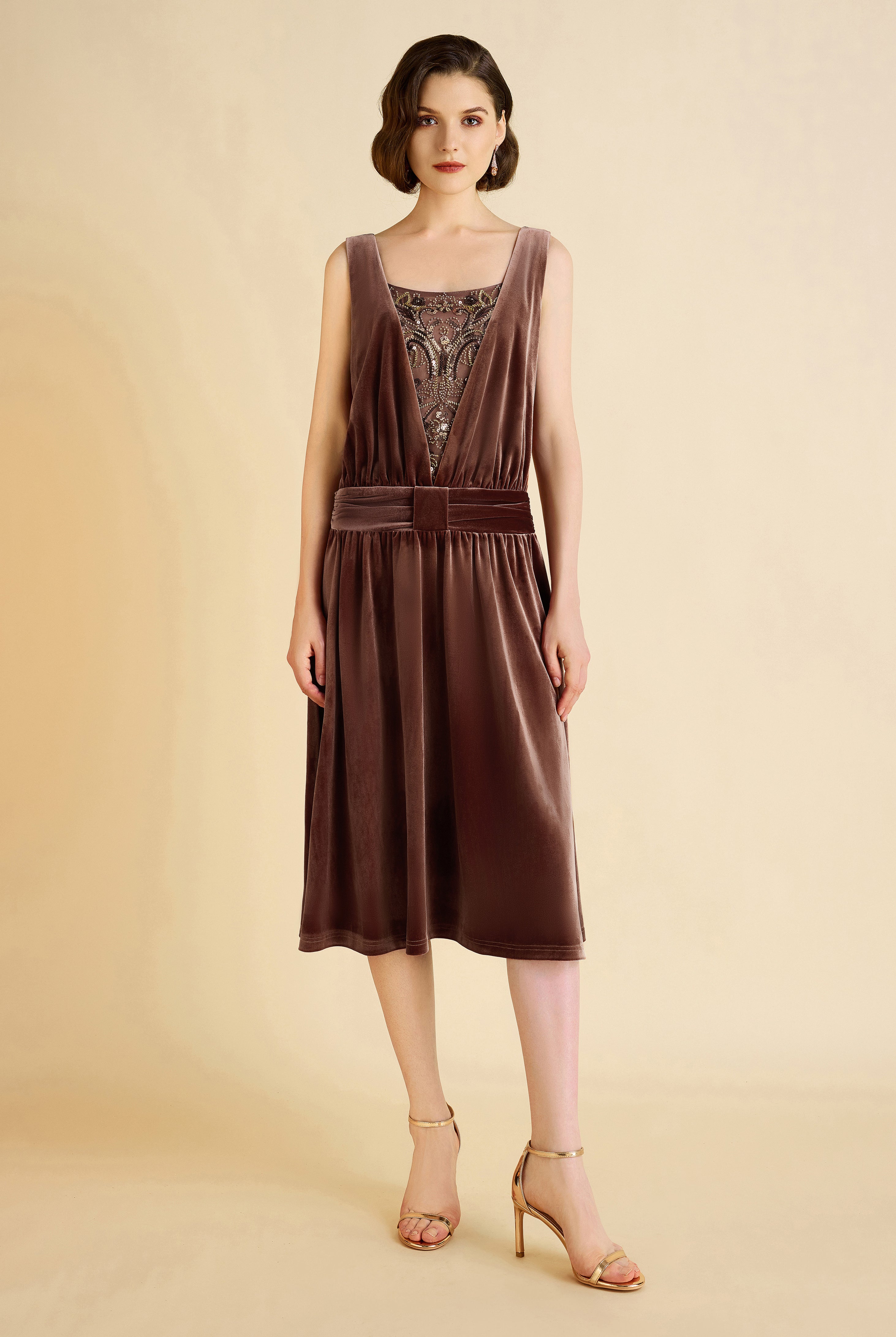 Vintage Velvet Pleated Waist Belt Evening Gown