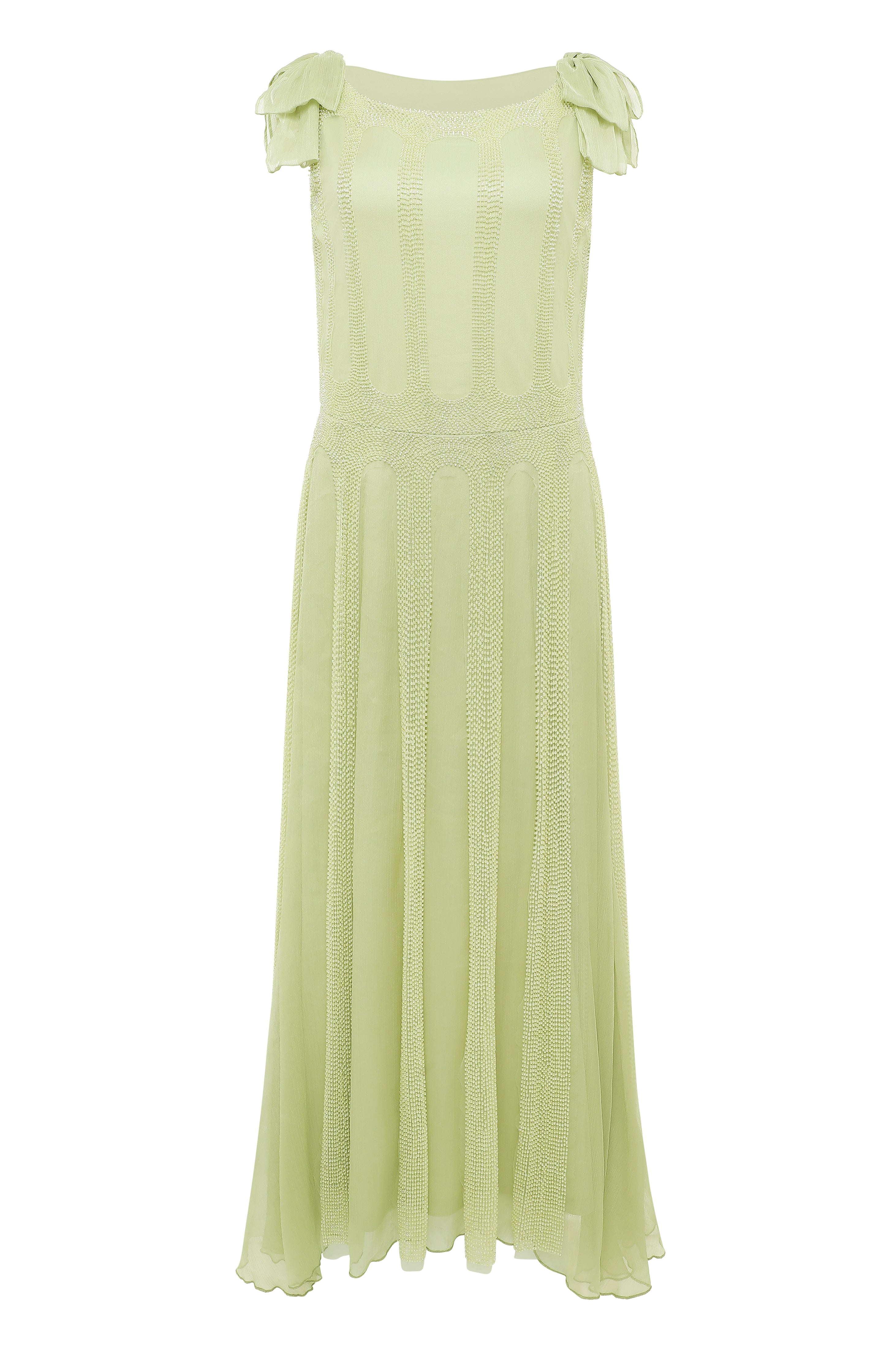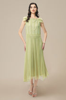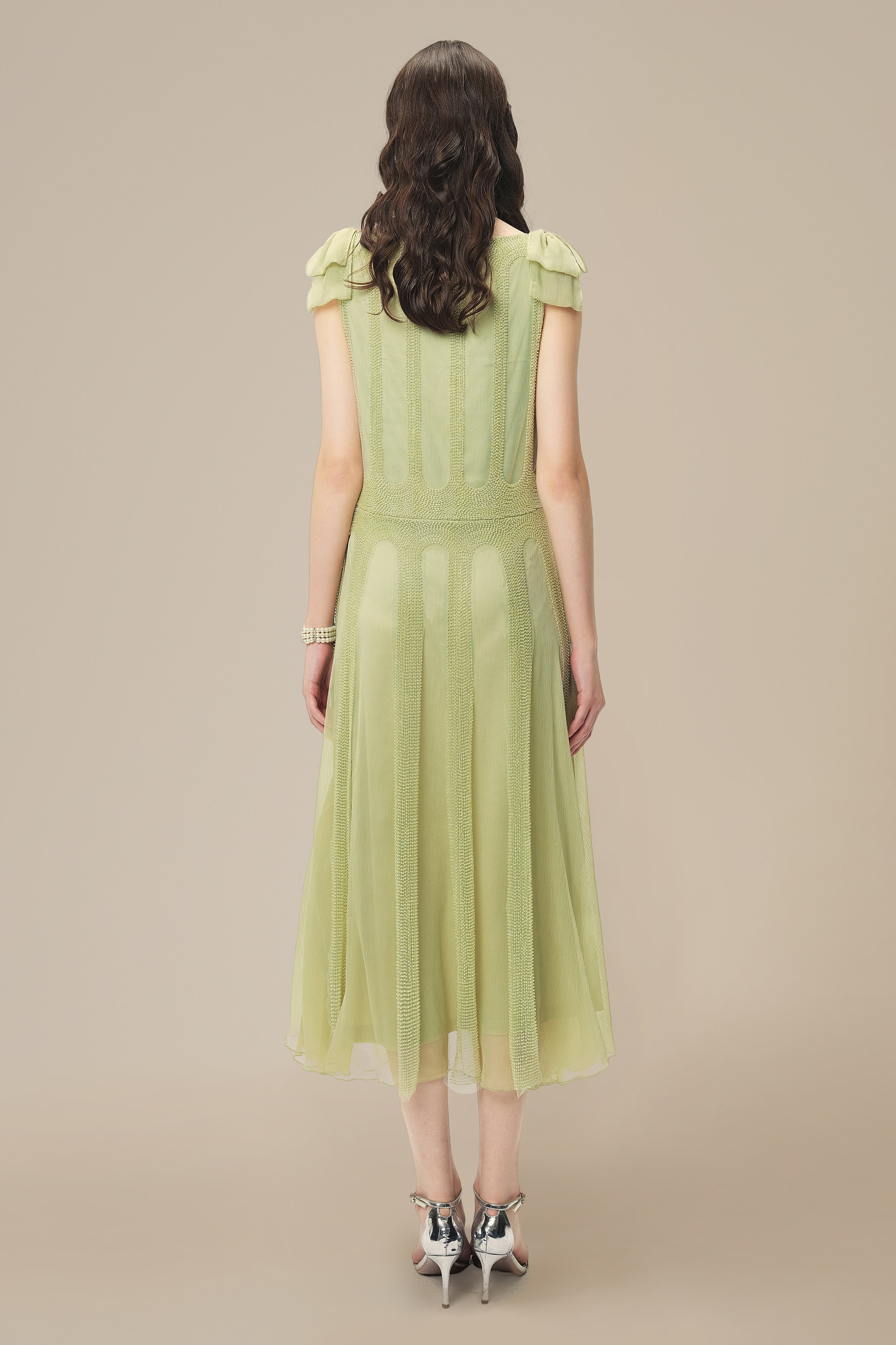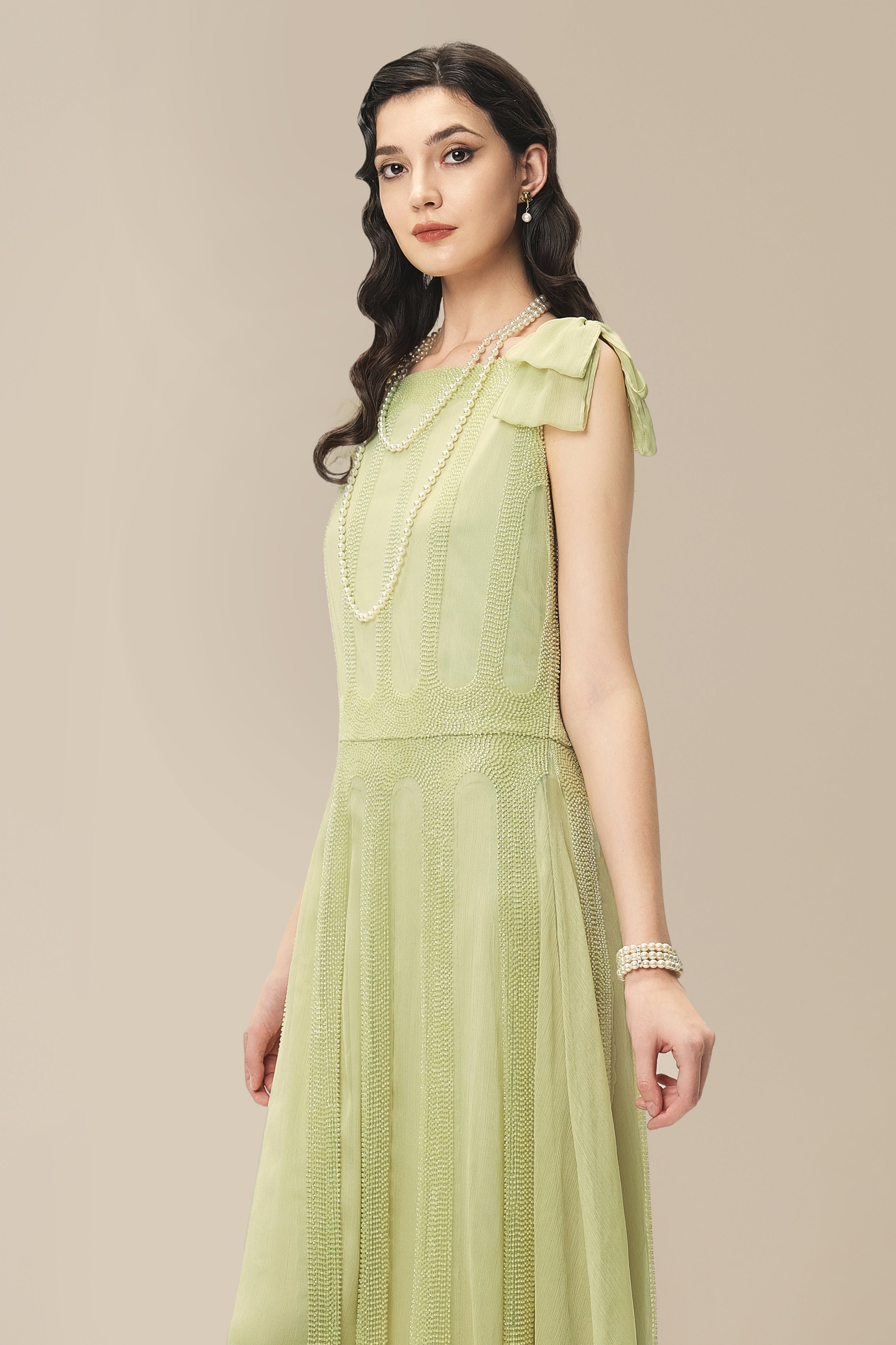 Channel the effortless elegance of the 1920s with this vintage-inspired masterpiece. The loose-fit, low-waist silhouette flatters all body types, while the intricate butterfly bow bead embroidery adds a whimsical yet luxurious charm. The A-line chiffon dress flows gracefully with every step, evoking a sense of romantic nostalgia. Perfect for garden parties, daytime celebrations, or an elegant afternoon stroll, this dress combines retro glamour with modern comfort.