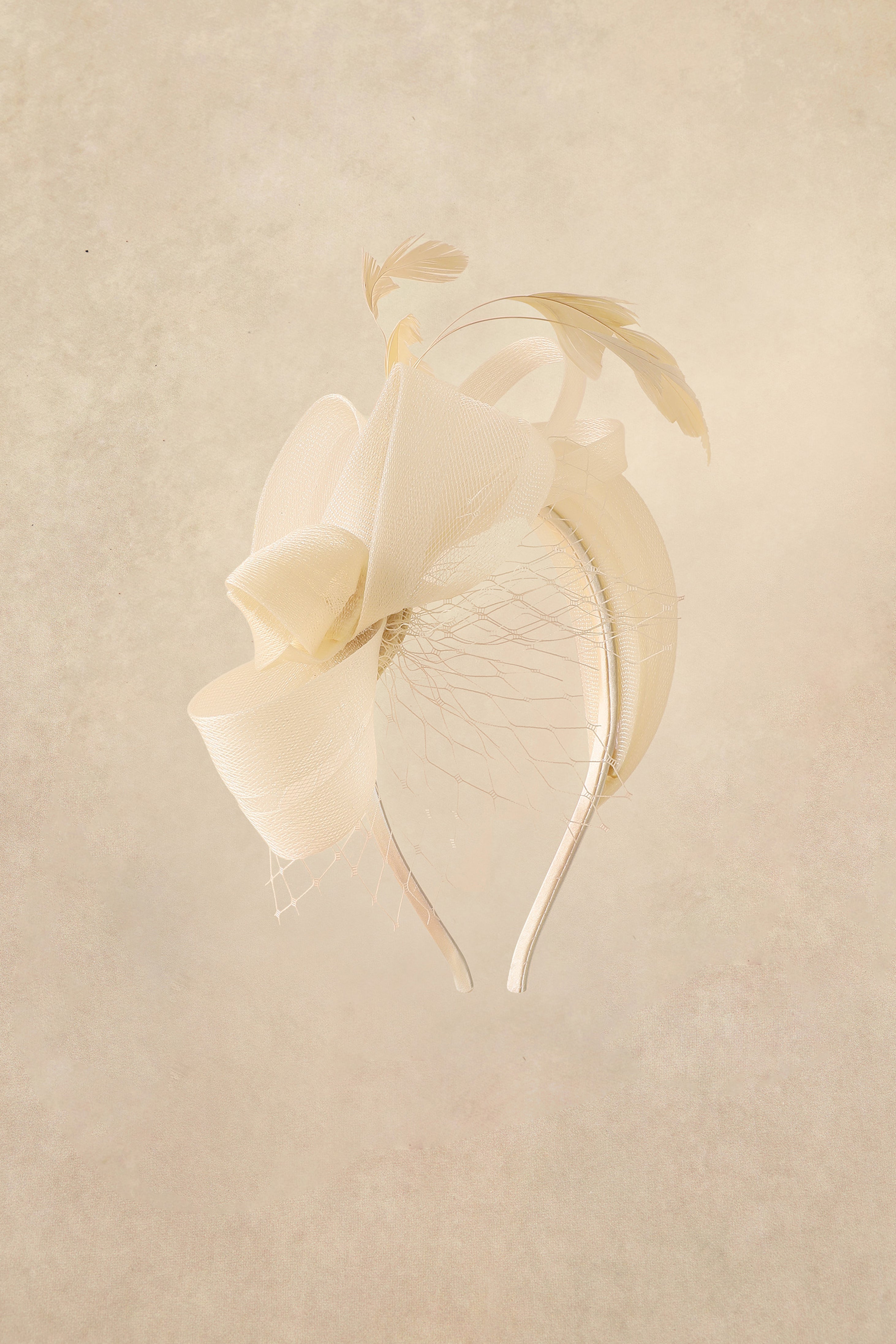 Crafted from tulle, feathers, and veil