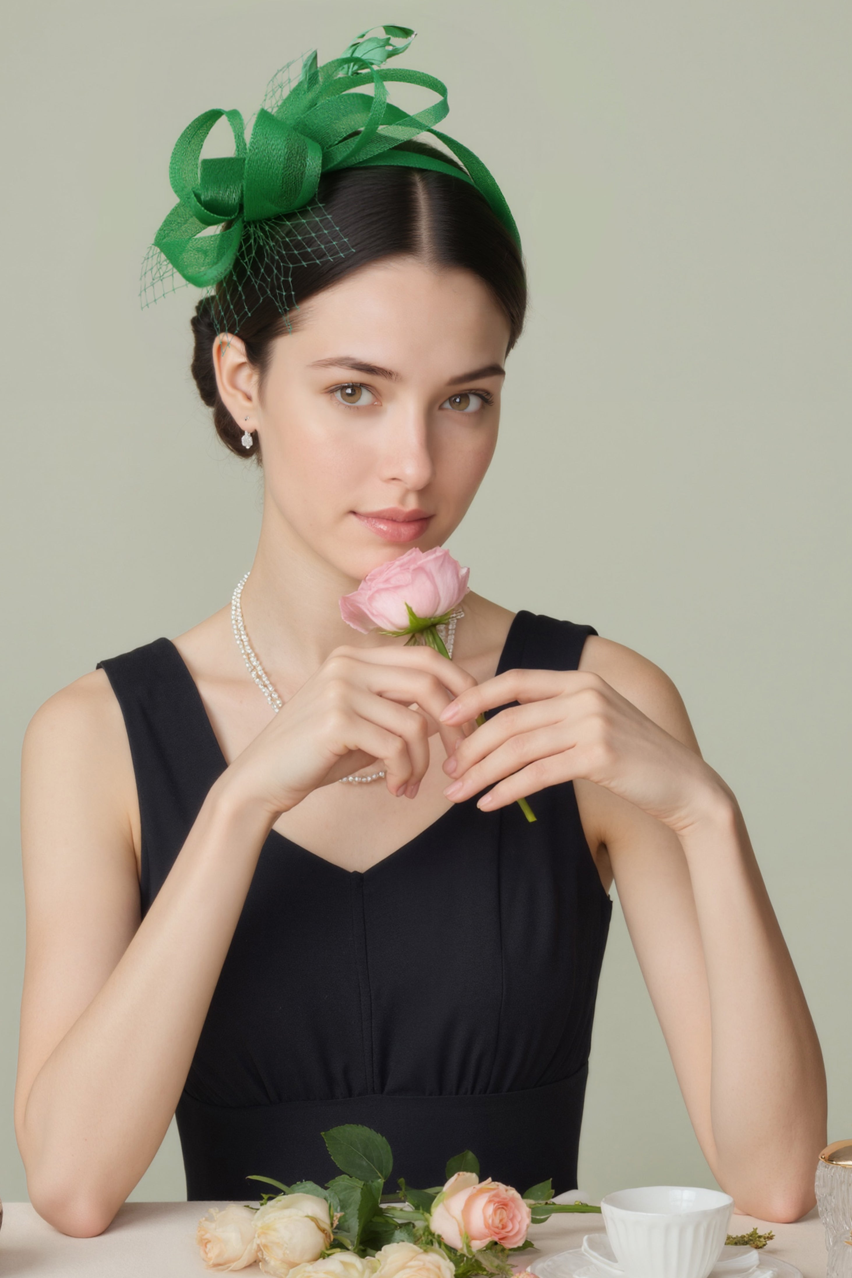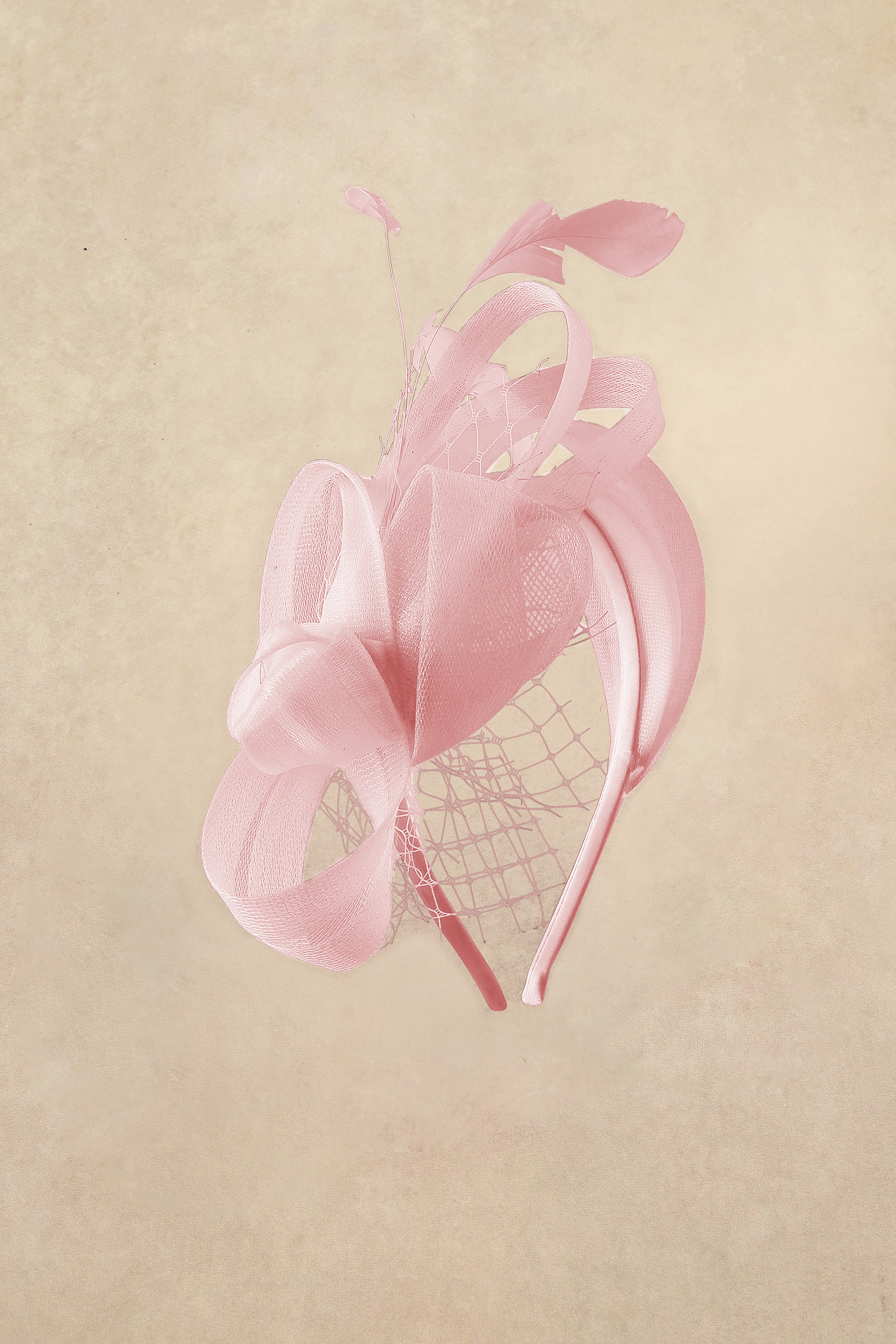 This romantic fascinator features flowing tulle loops, delicate feather accents, and a sheer birdcage veil, set on a comfortable headband for easy wear. It adds soft elegance and vintage charm to formal occasions.