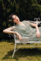 This sumptuous piece of jewelry features a retro-elegant yet slightly modern style that complements the lavish garments, reminiscent of the roaring 1920s.