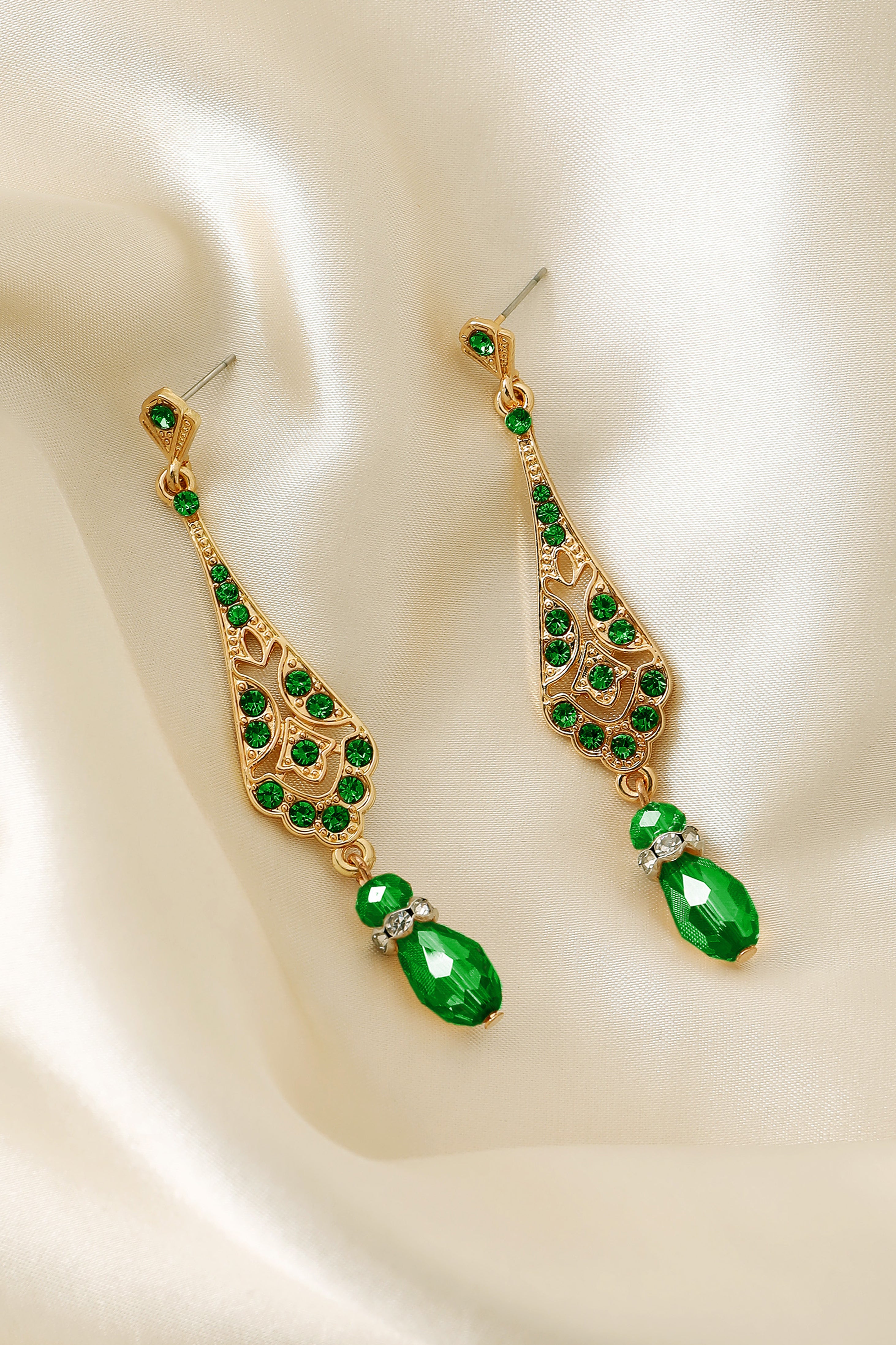 These drop earrings feature sparkling crystal detailing in an elegant Art Deco–inspired silhouette, offering graceful movement and timeless charm.