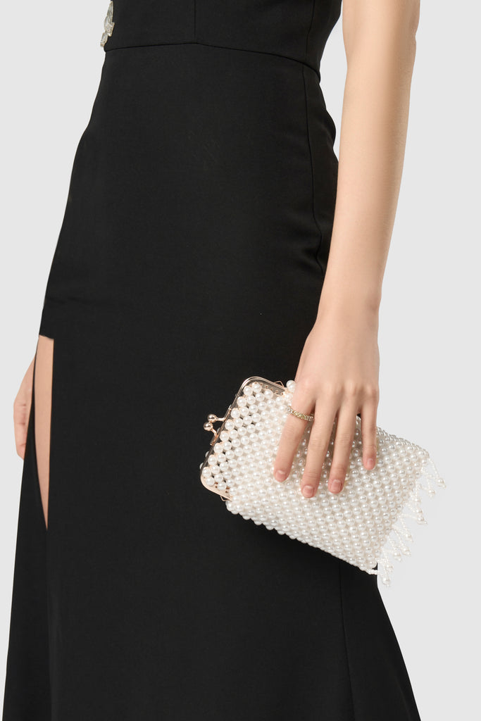 This regal and elegant clutch is completely wrapped in party-ready embellished rhinestones detailing, which sets the stage for a Roaring 20s party.
