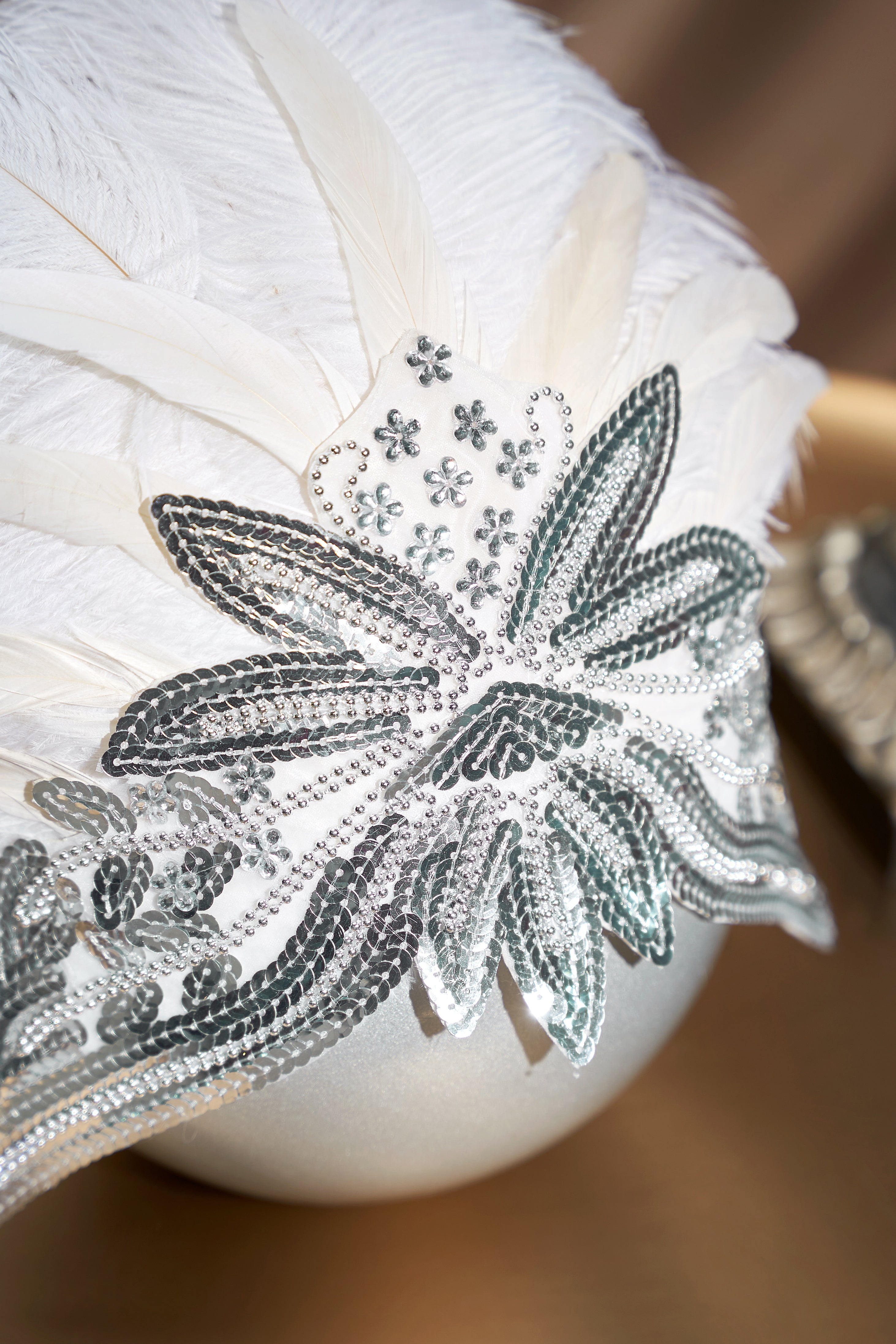 • Sparkling sequins and fluffy feathers