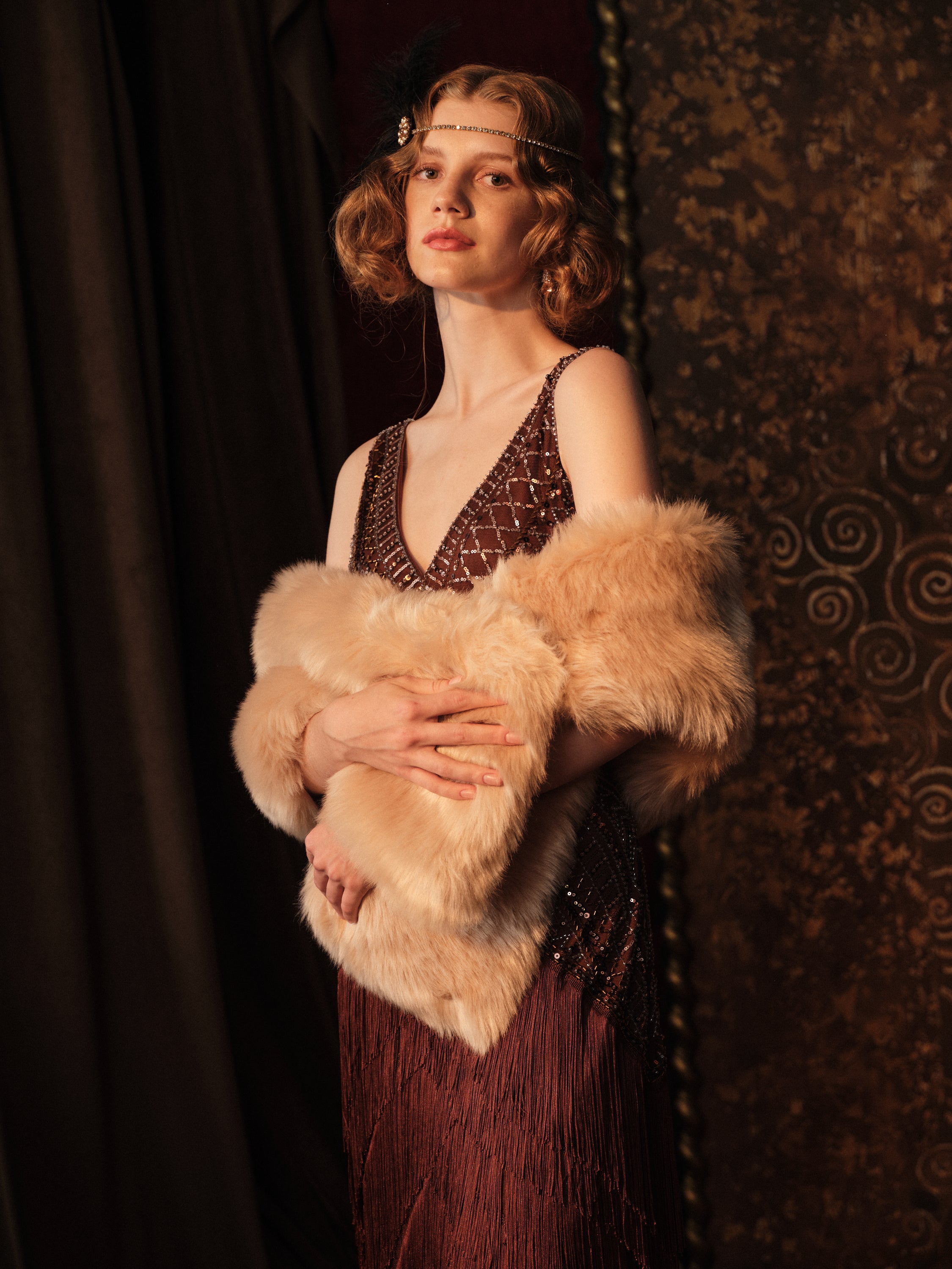 This Thanksgiving, surprise your loved ones with gifts that bring the elegance and warmth of the 1920s to the holiday season. For a touch of vintage luxury, consider a soft faux fur shawl—perfect for cozying up during the cooler months while adding a dash of glamour to any outfit. Timeless accessories, like pearl necklaces or art deco-inspired jewelry, make beautiful additions to anyone's wardrobe, capturing the charm of the Jazz Age. For something truly special, you might choose delicate silk gloves or a beautiful headpiece that evokes the iconic style of flapper fashion. Whether your loved ones are fans of classic style or simply appreciate thoughtful, unique gifts, these pieces offer a perfect blend of sophistication and warmth, making Thanksgiving a memorable and fashionable affair.