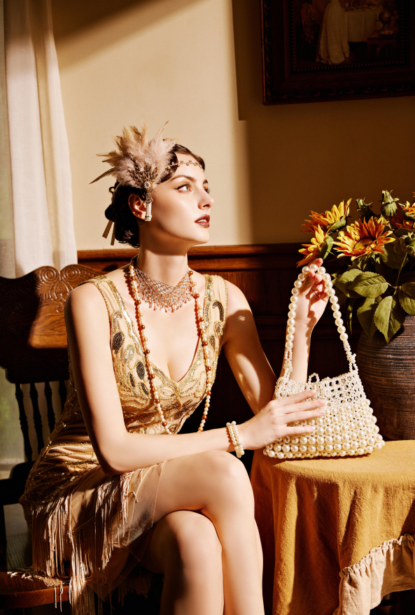 Clothing: If you want to fully embrace the 1920s-inspired look, you can incorporate vintage-inspired clothing pieces into your spring wardrobe. For example, a drop-waist dress with beaded details can add a touch of vintage charm to your outfit.