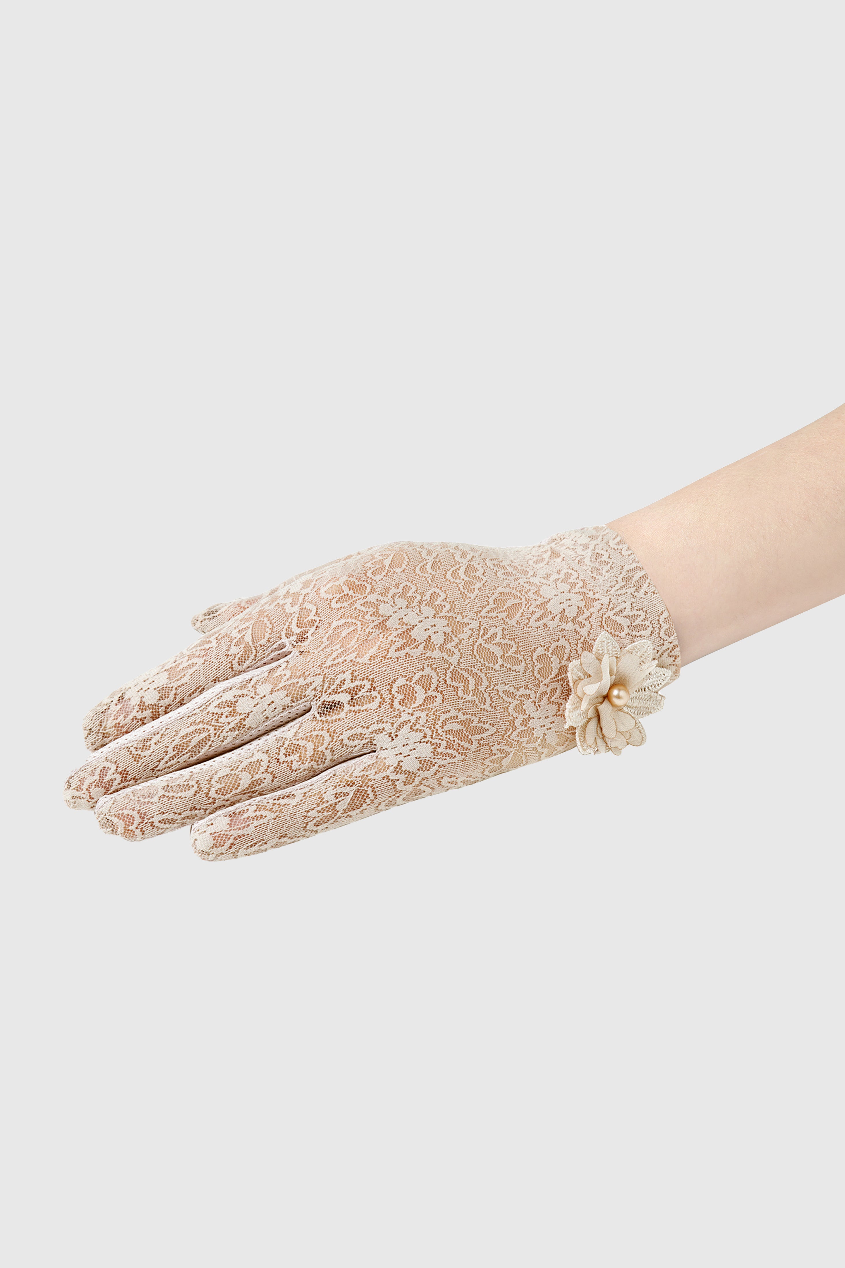 Short Floral Lace-Embellished Gloves